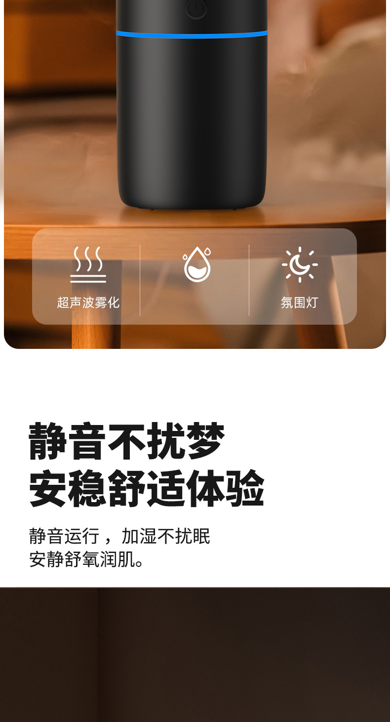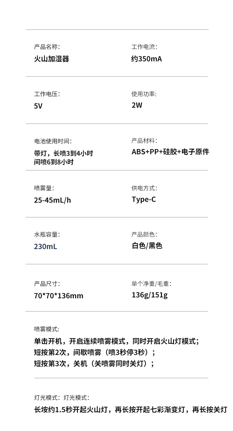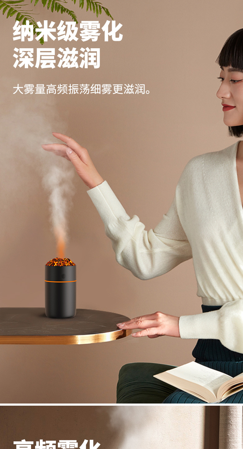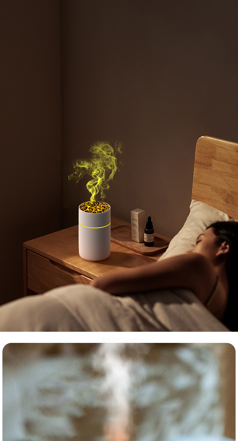 新款HS01火山加湿器家用卧室静音空气加湿器氛围灯火焰车载加湿器