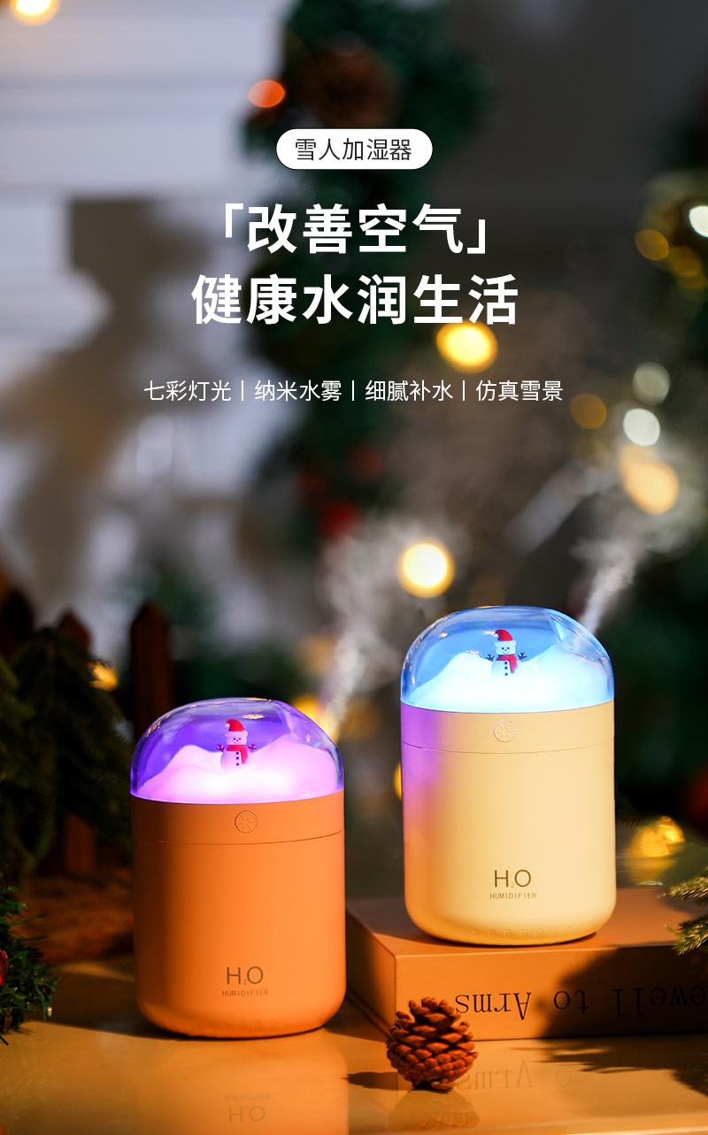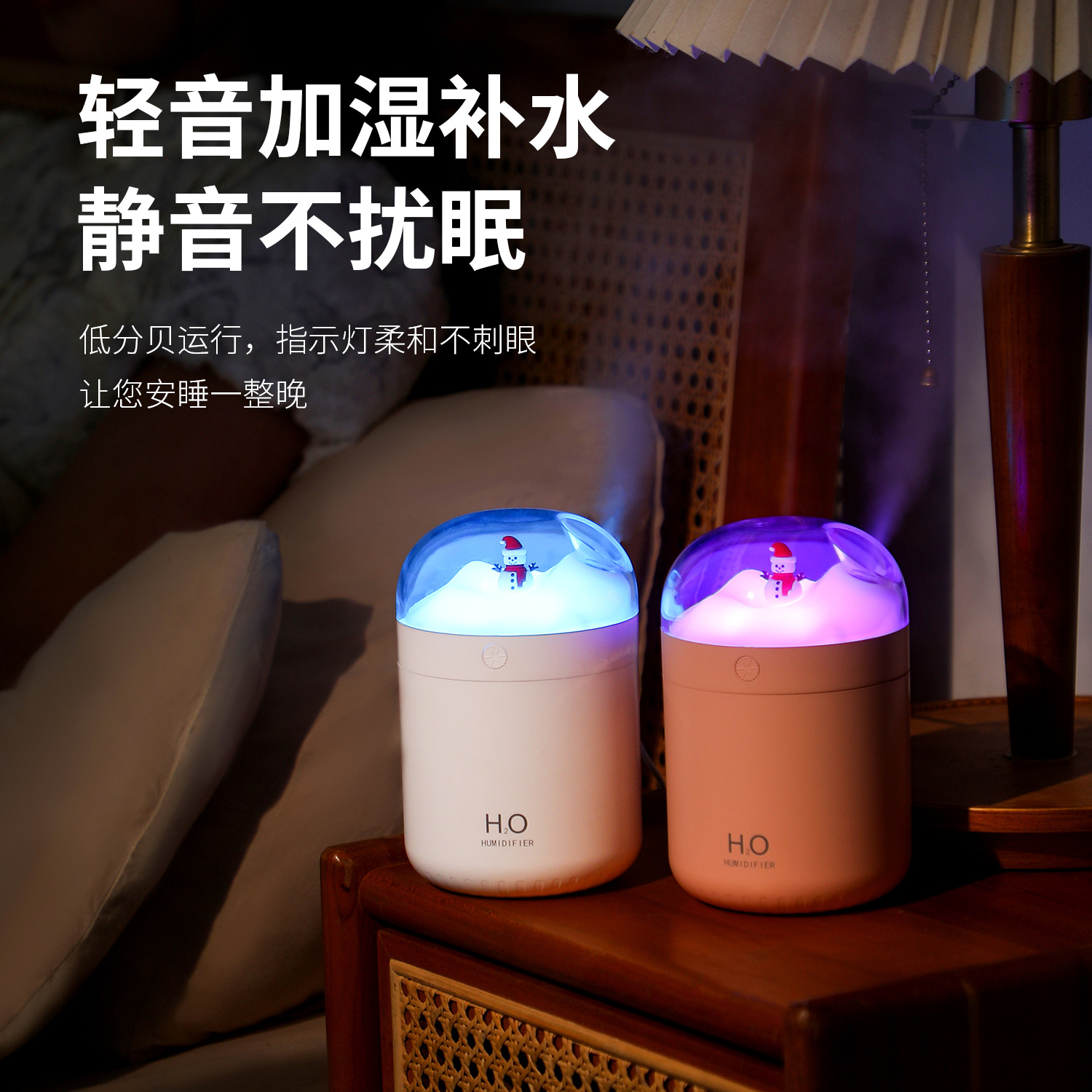 2024新款雪人加湿器迷你补水七彩氛围灯家用桌面夜灯补水仪批发
