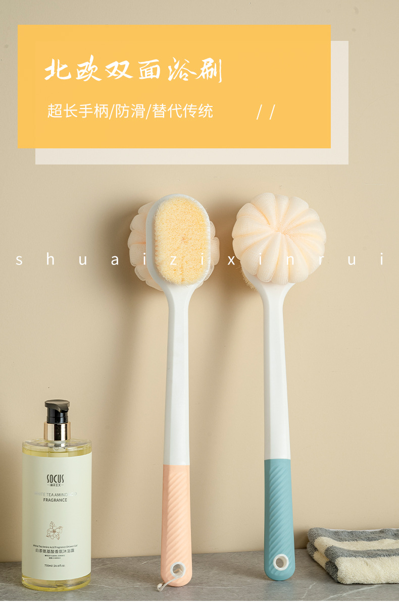长柄搓澡巾软毛沐浴刷搓背搓澡神器多功能搓泥搓澡巾洗澡刷二合一