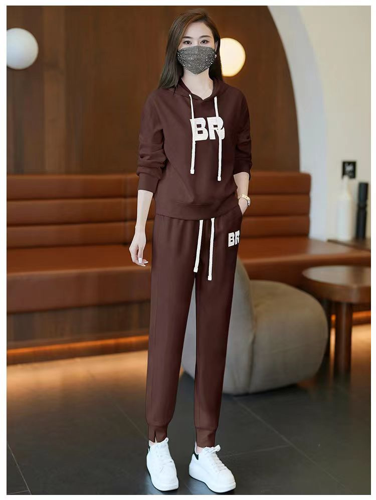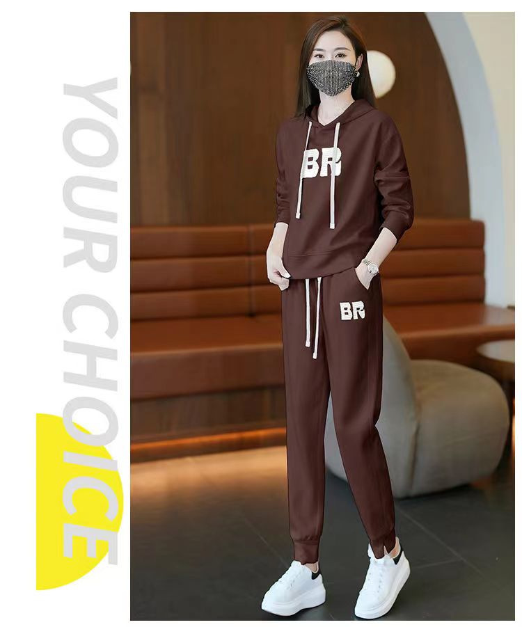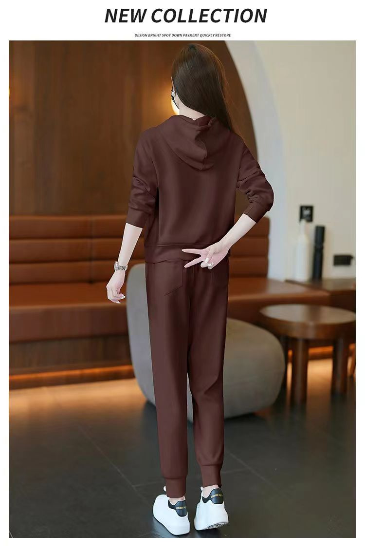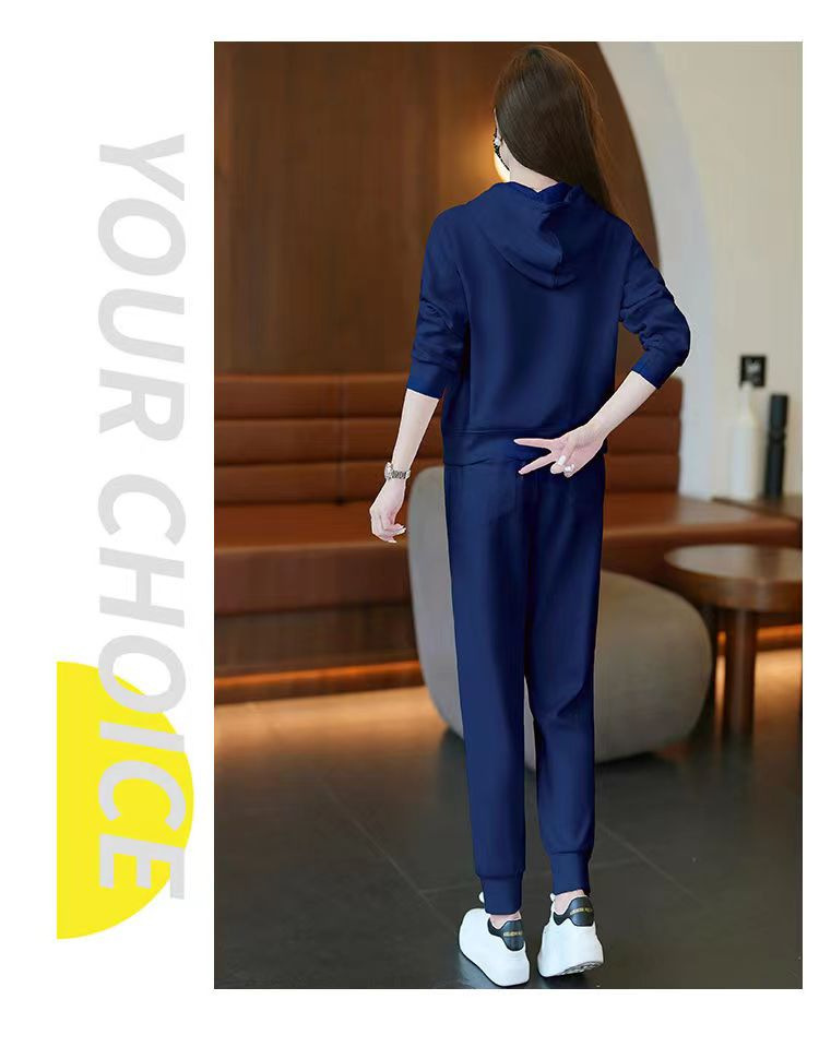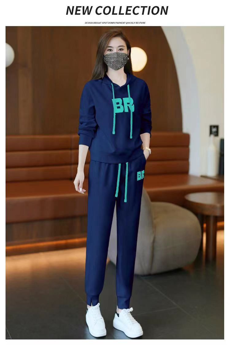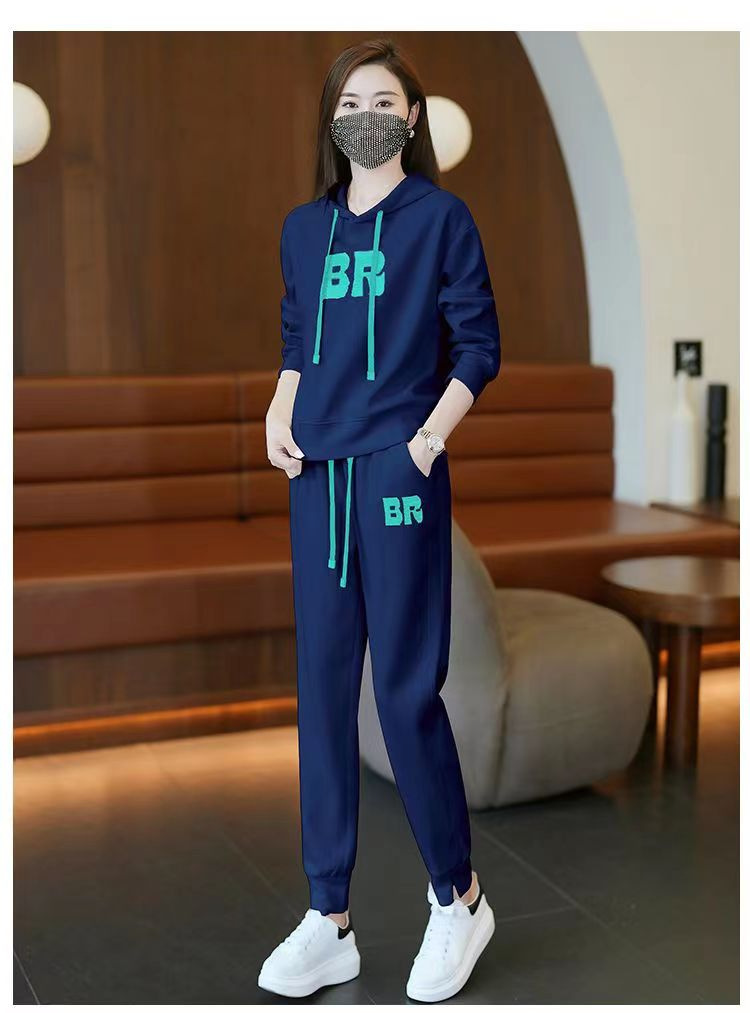 时尚加绒加厚大码运动套装女秋冬季新款显瘦休闲胖mm连帽两件套女