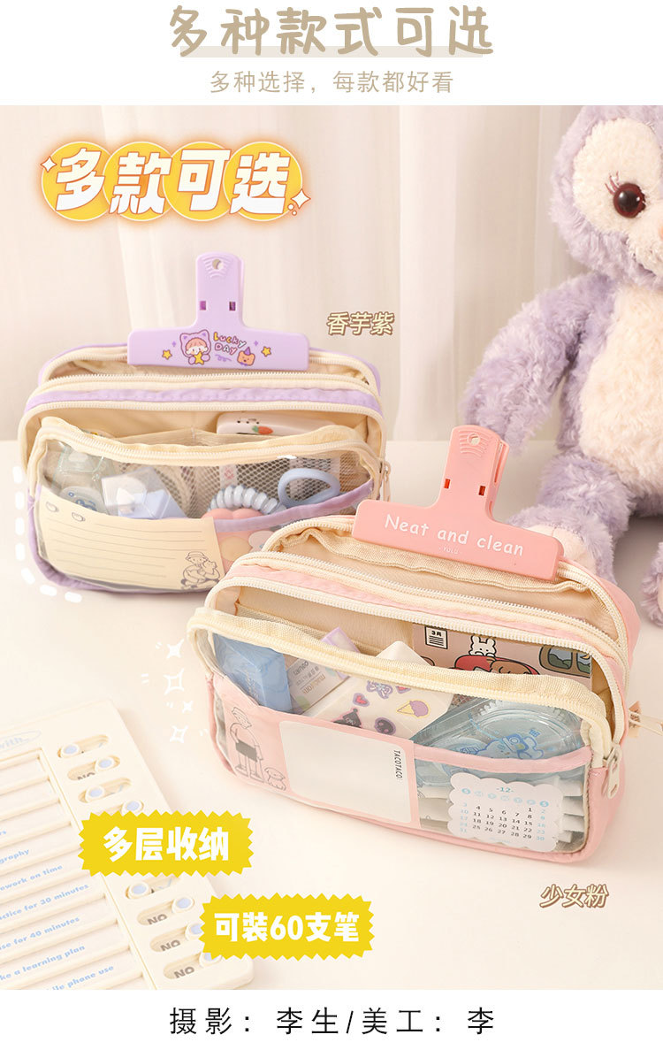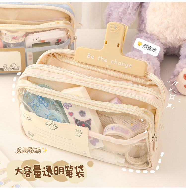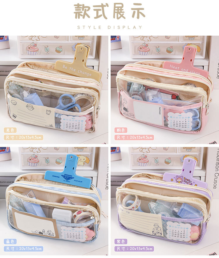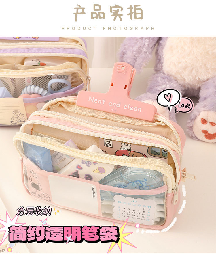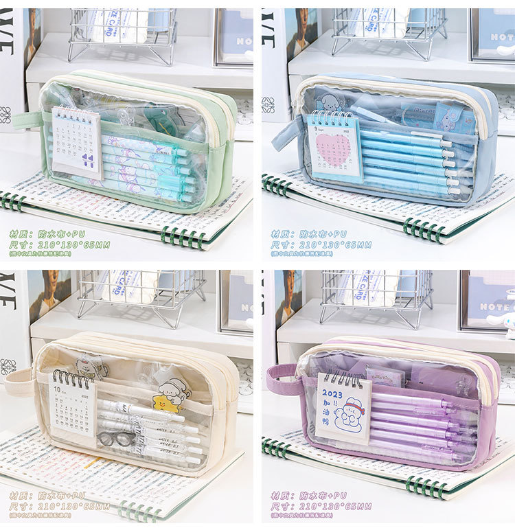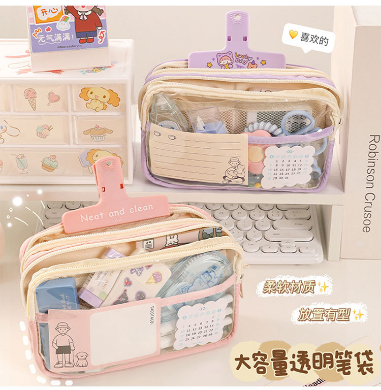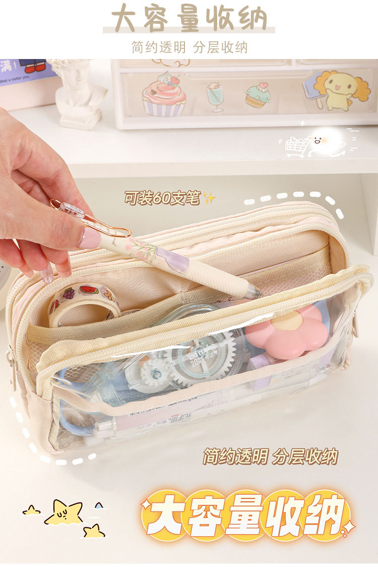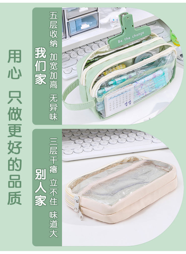 三层大容量透明笔袋批发女孩初中小学生铅笔盒简约文具盒收纳袋子