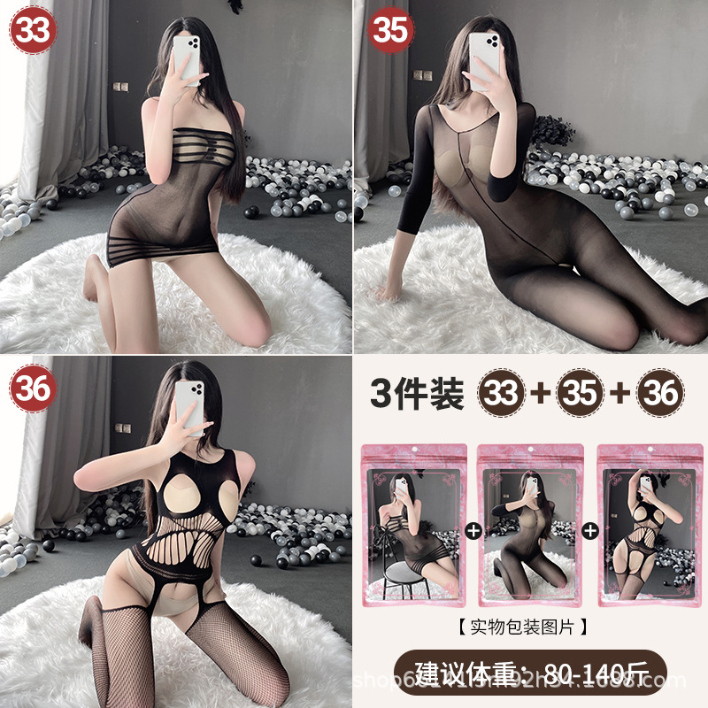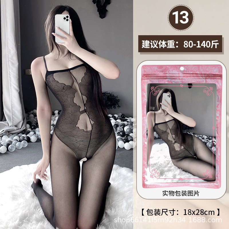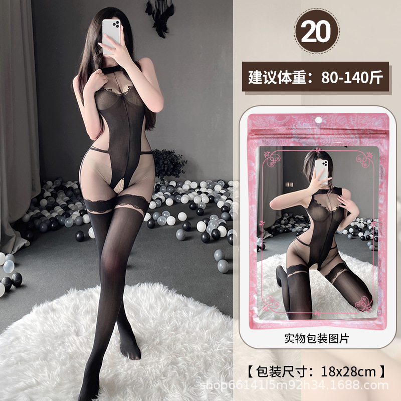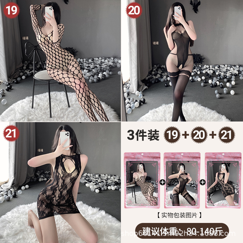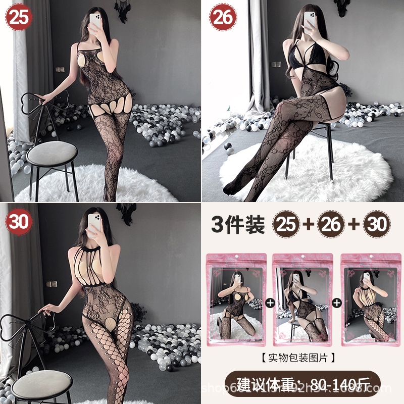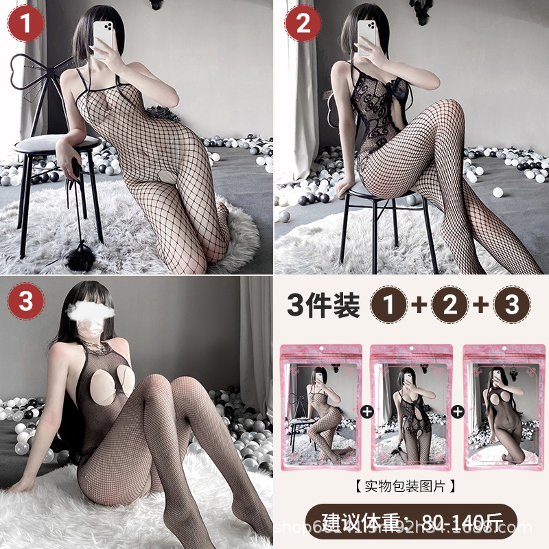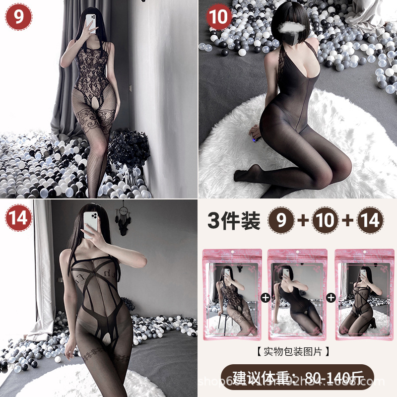 三生吟情趣内衣跨境大码性感透视镂空连体诱惑套装开档丝袜组合图