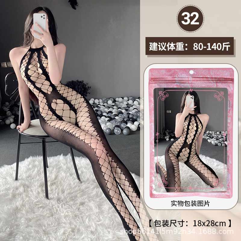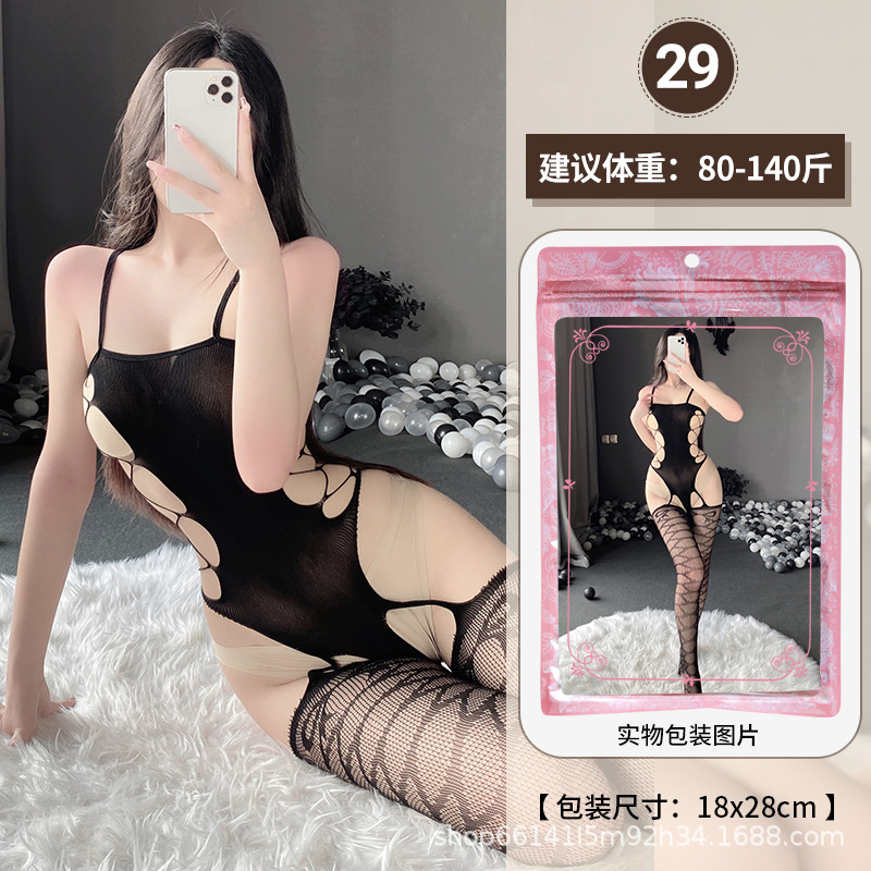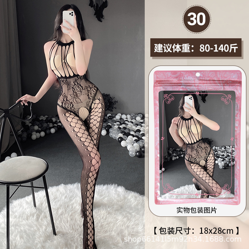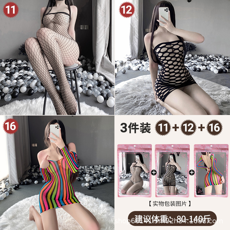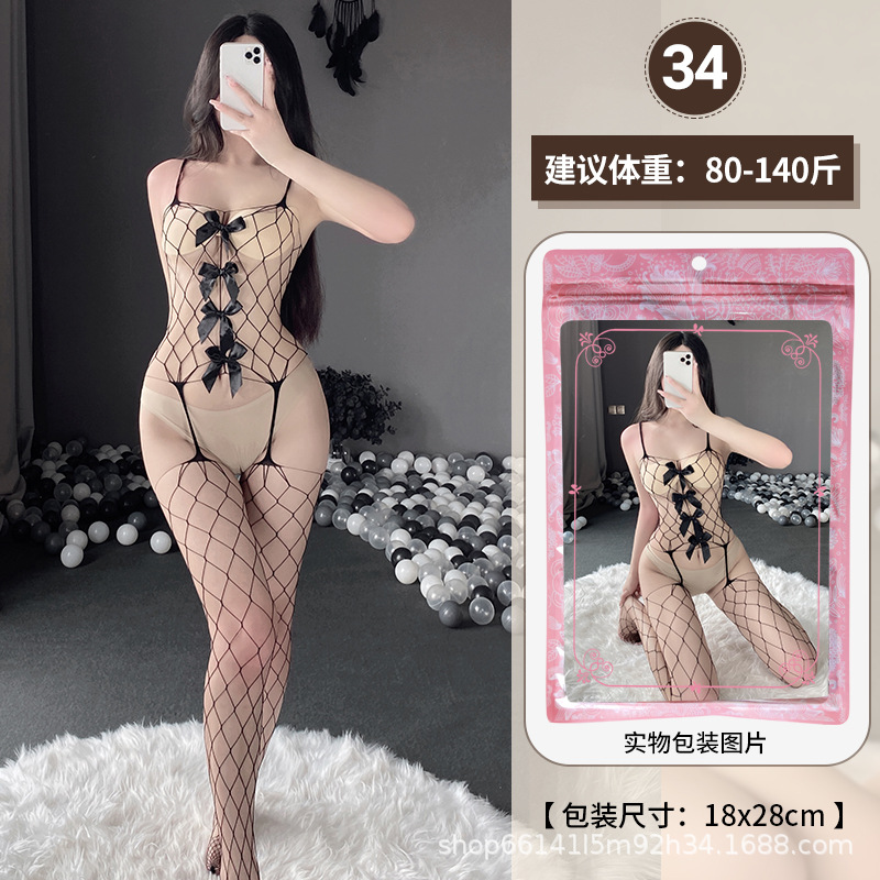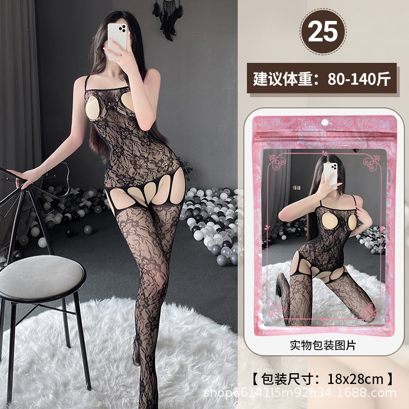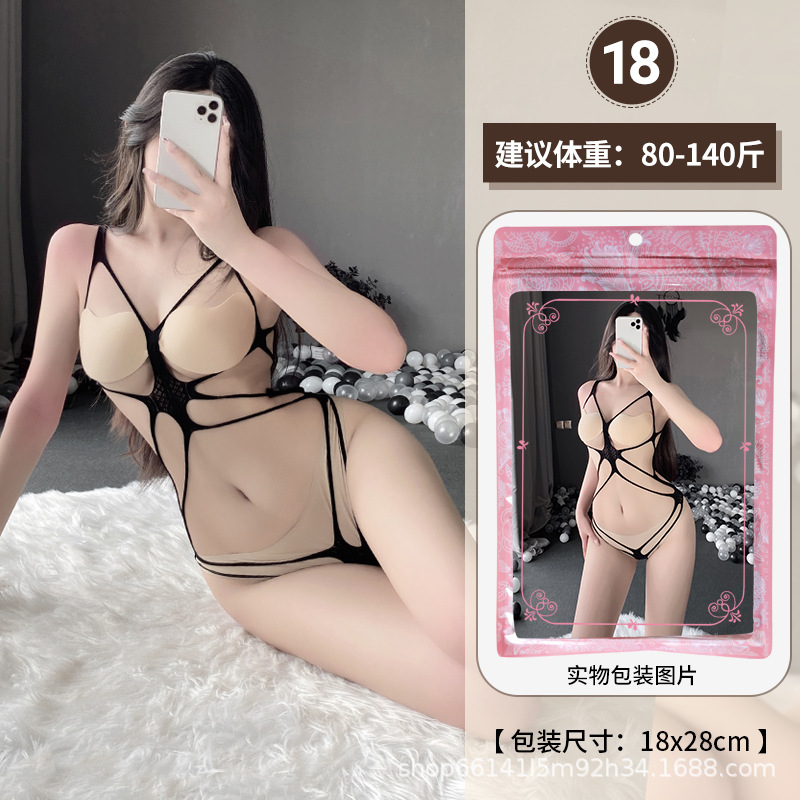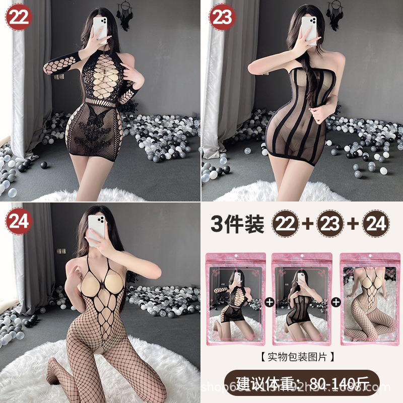 三生吟情趣内衣跨境大码性感透视镂空连体诱惑套装开档丝袜组合图