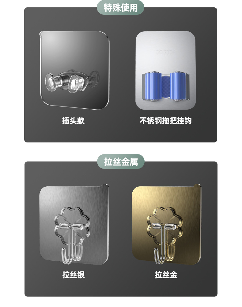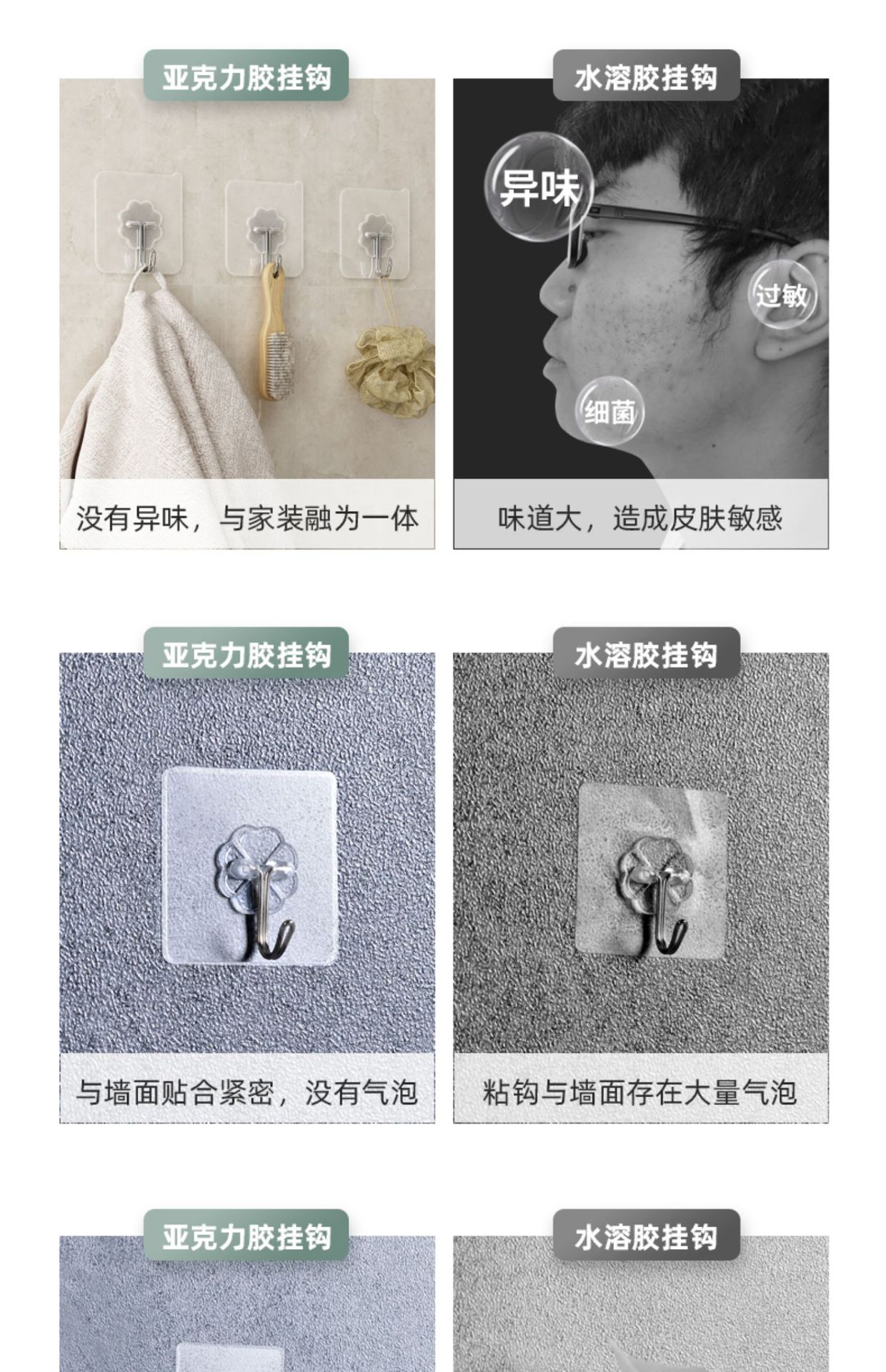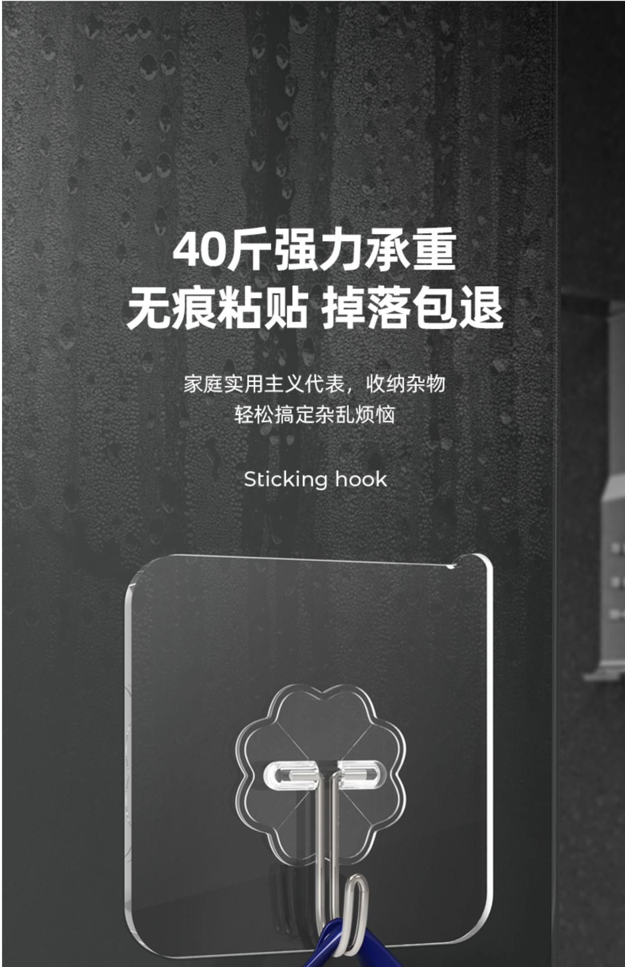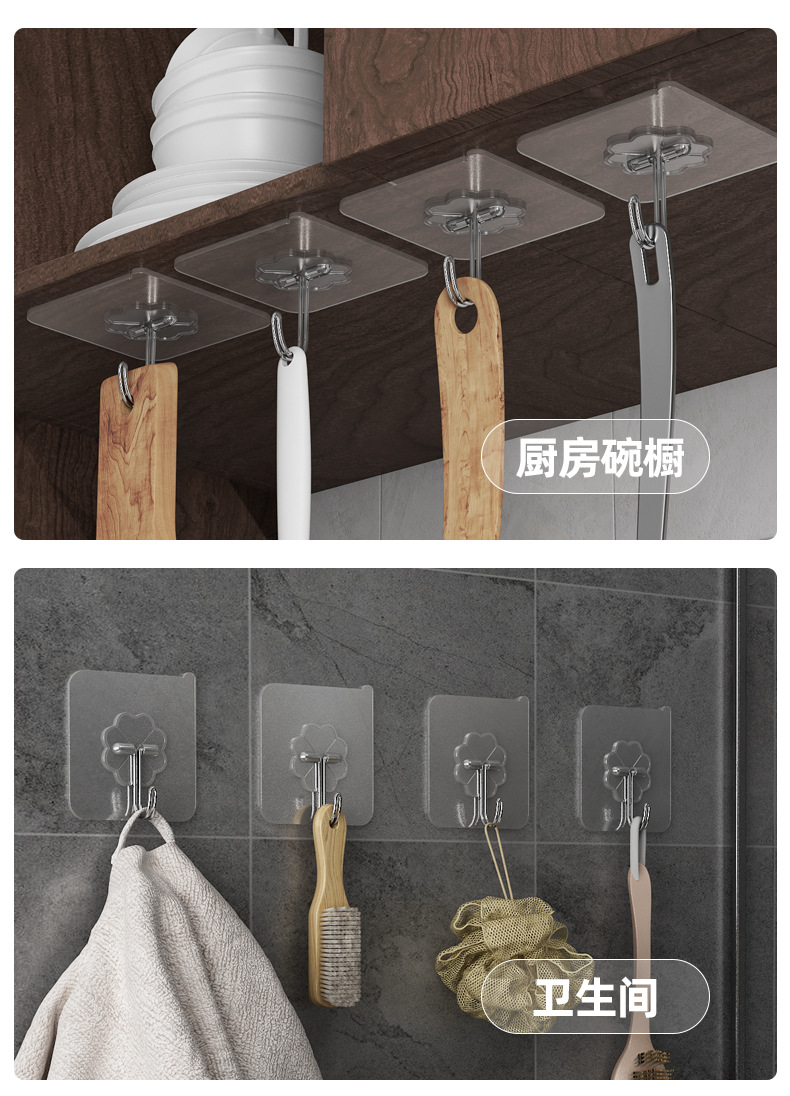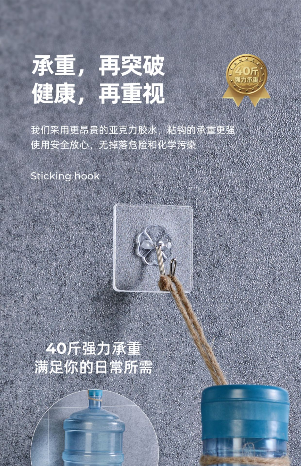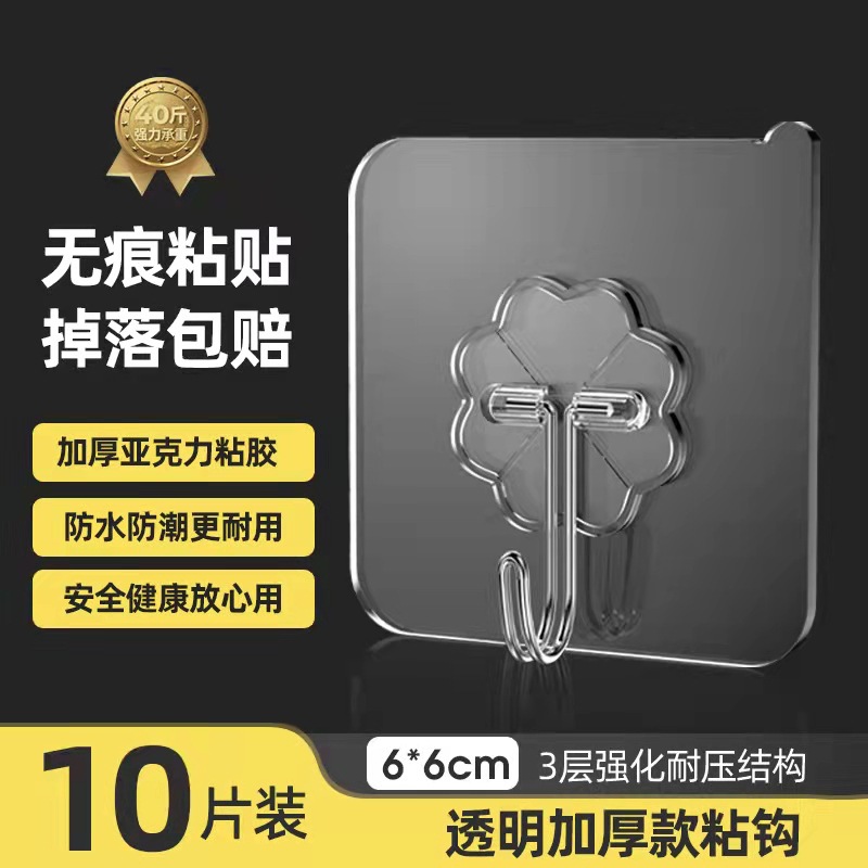【10个挂钩】强力粘胶墙壁贴墙上承重透明无痕挂勾贴钩免打孔钩子