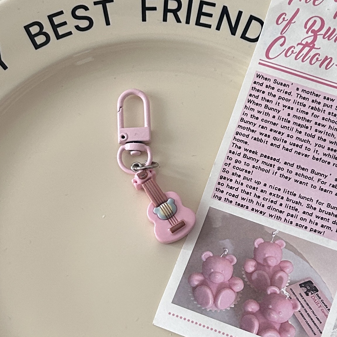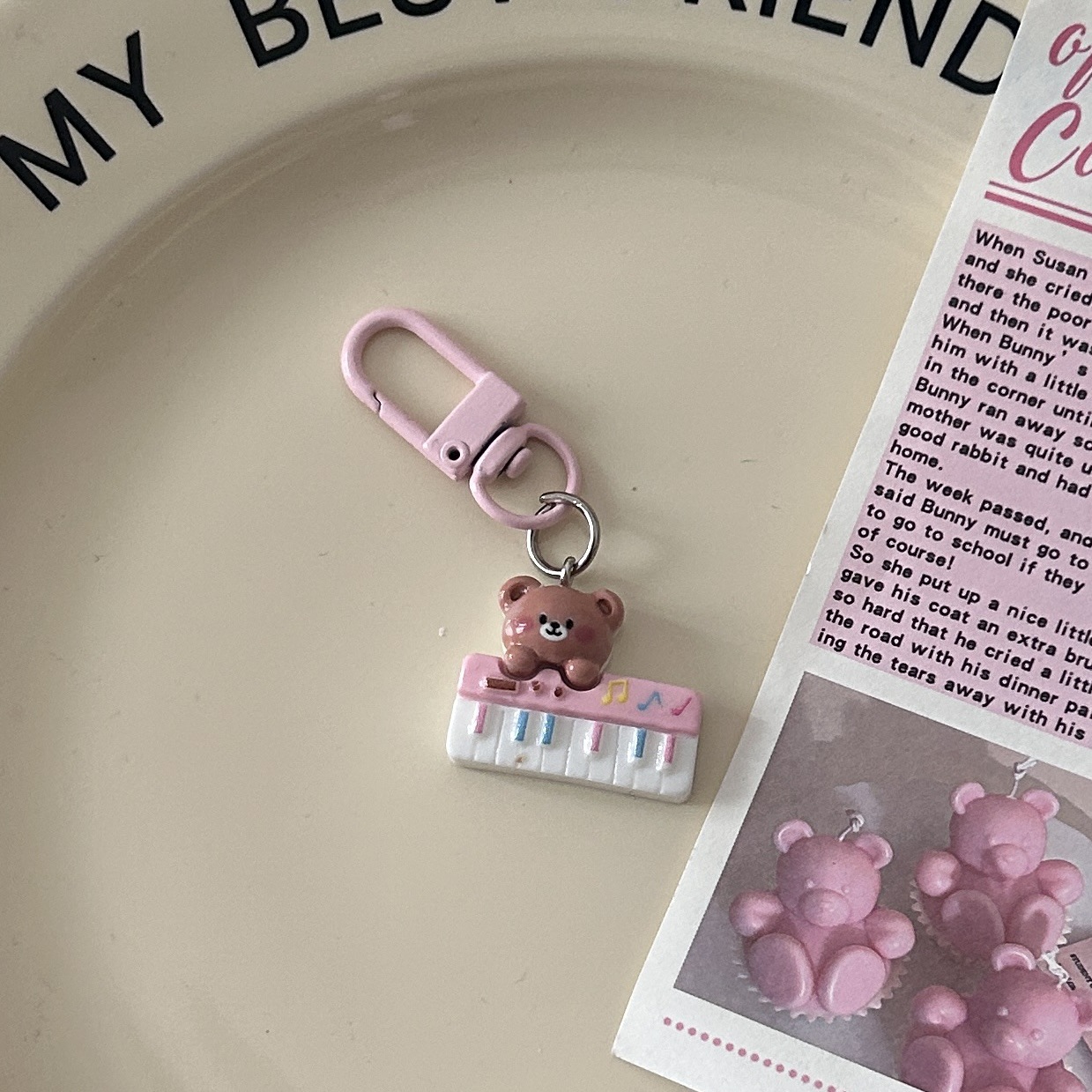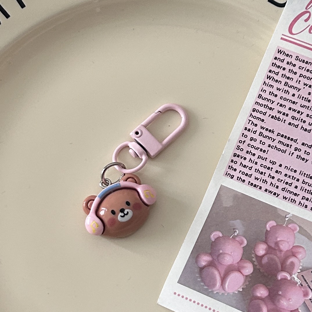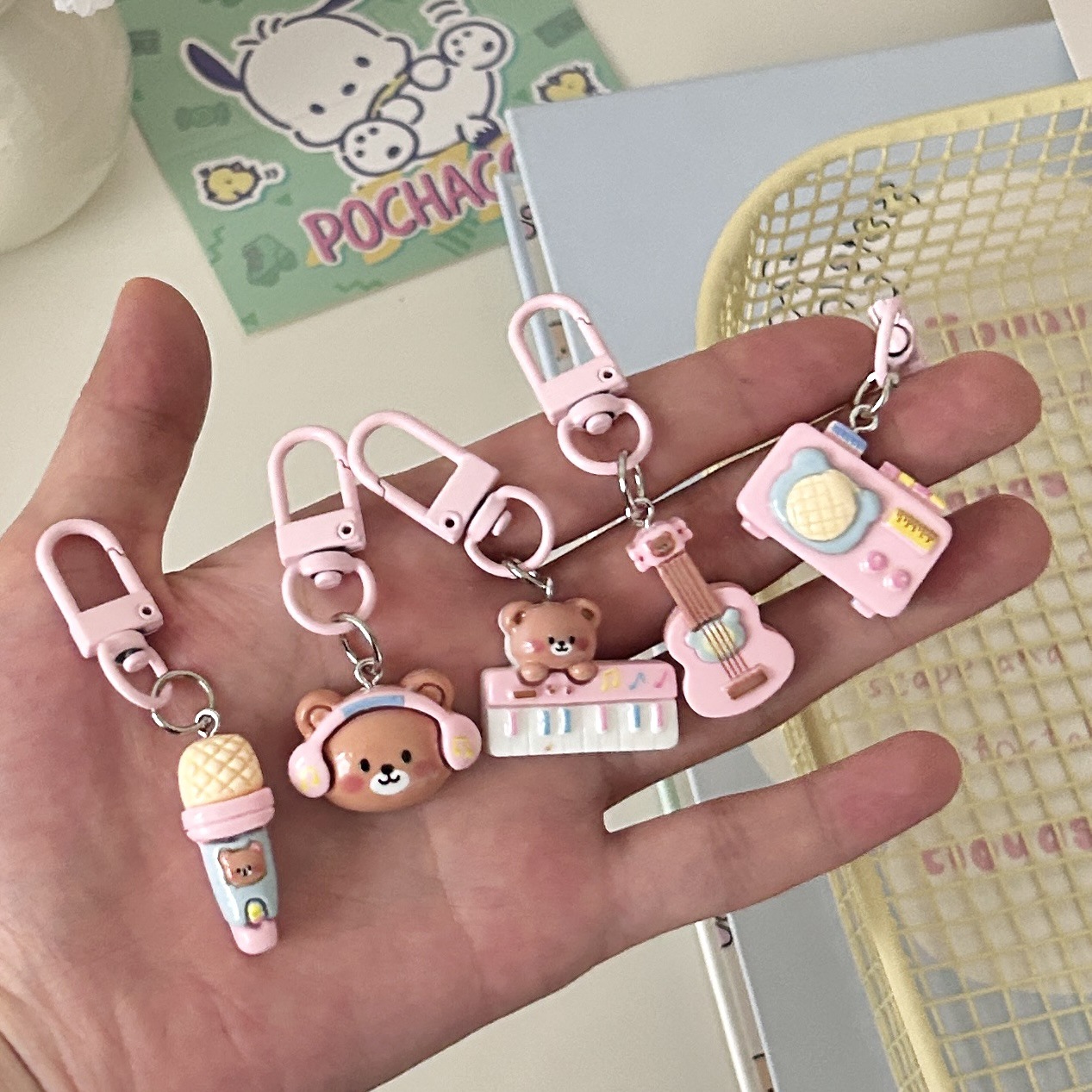 可爱粉色音乐小熊钥匙扣卡通学生趣味包包挂件情侣闺蜜礼物配饰品