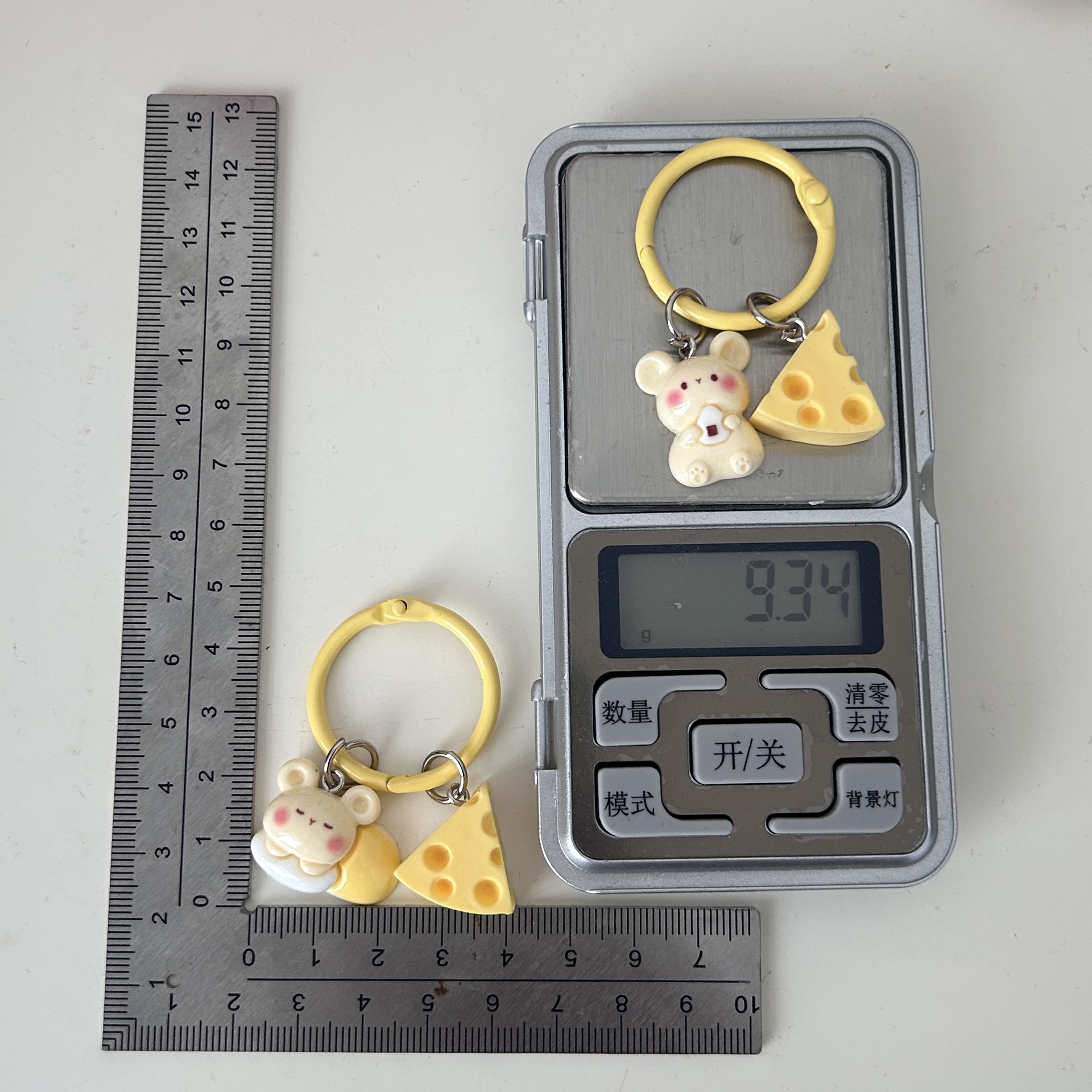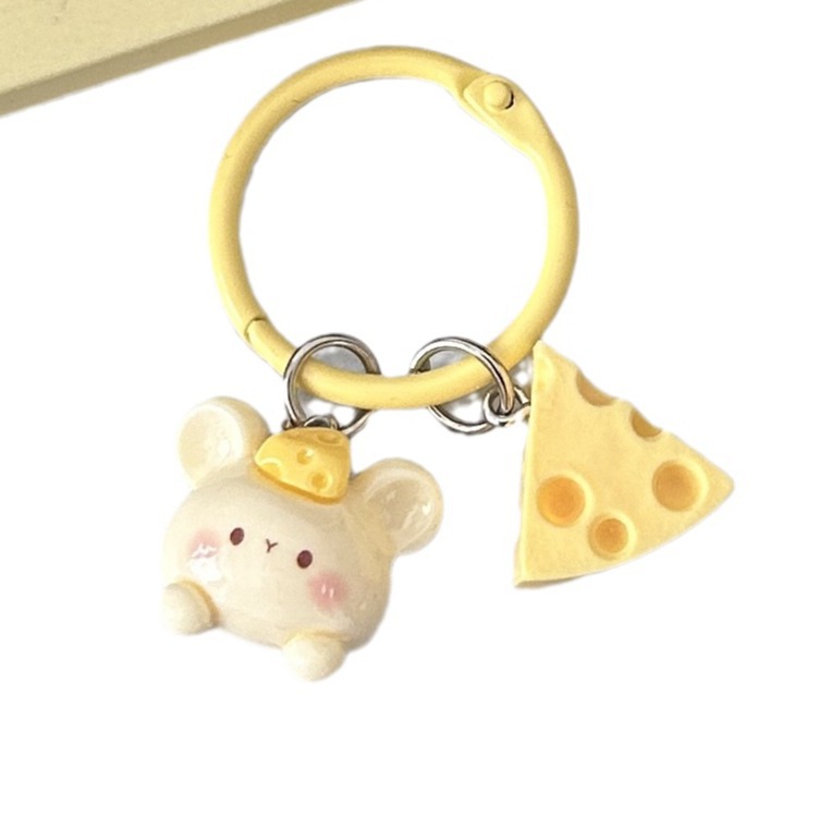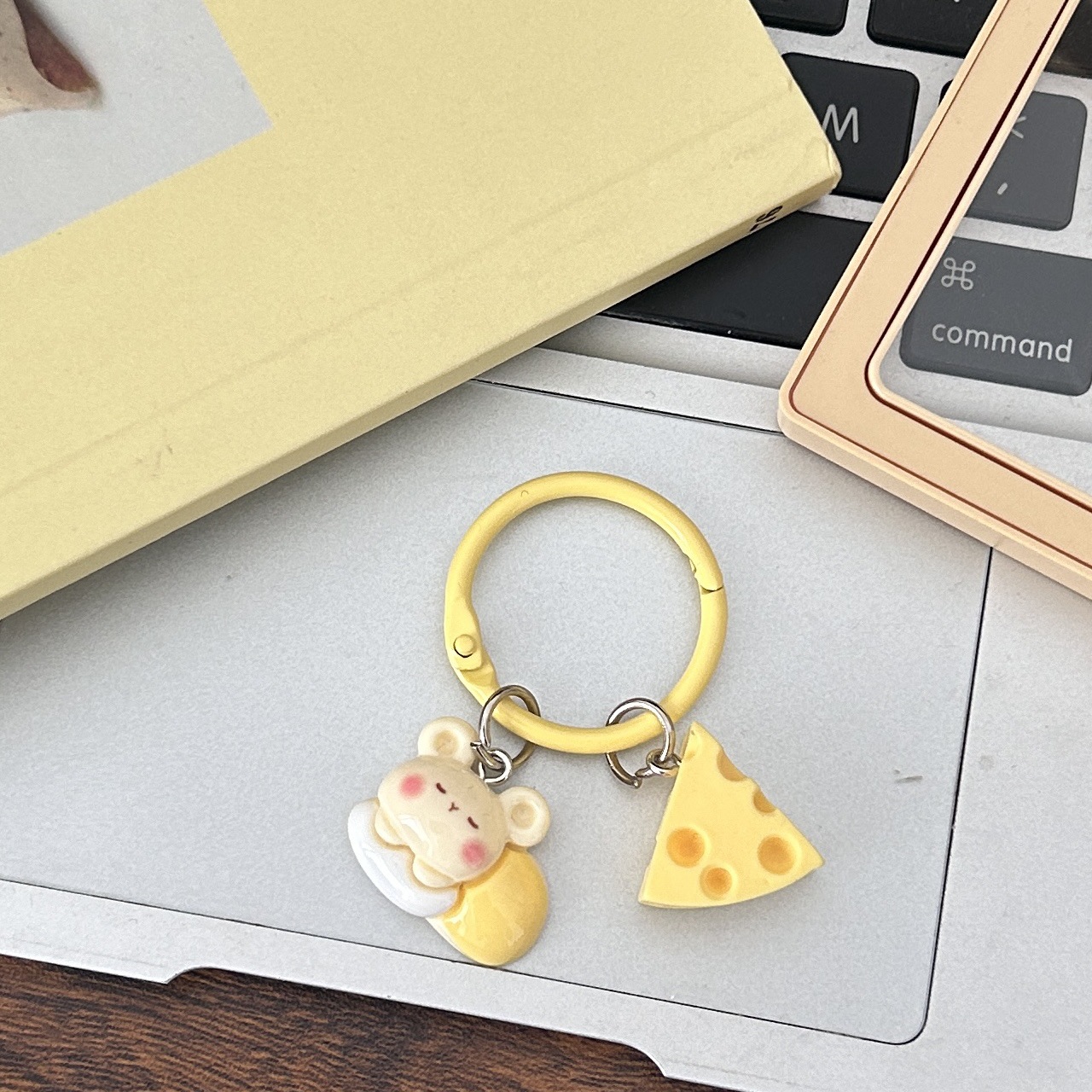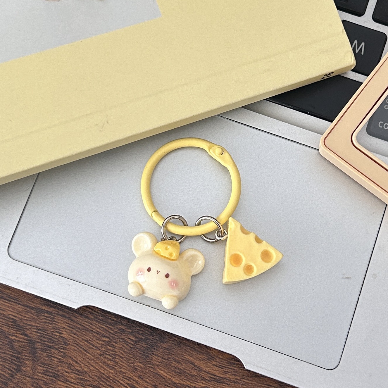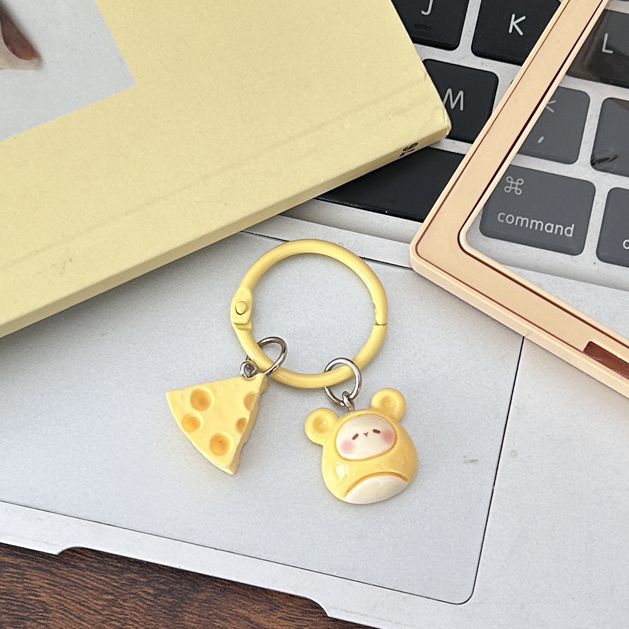 可爱卡通奶酪老鼠圆环钥匙扣趣味芝士挂件奶乎乎软萌书包配饰批发
