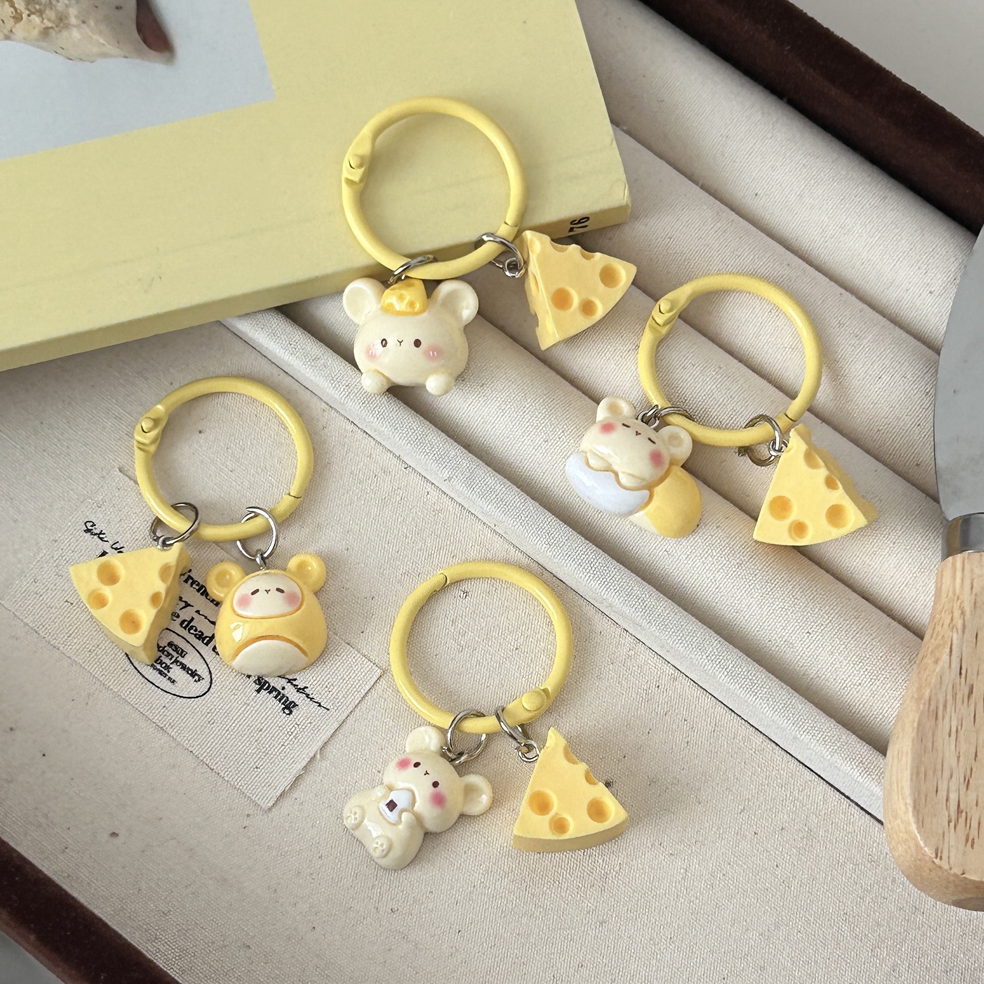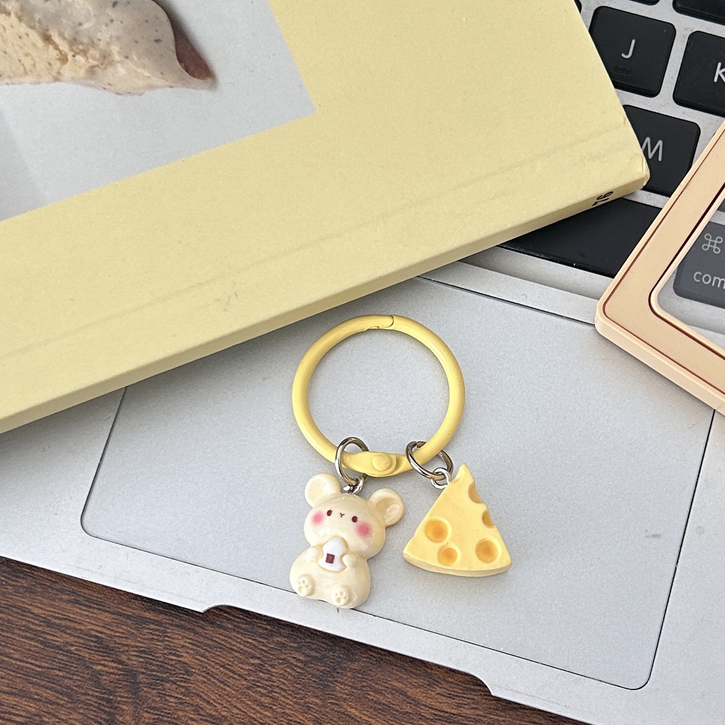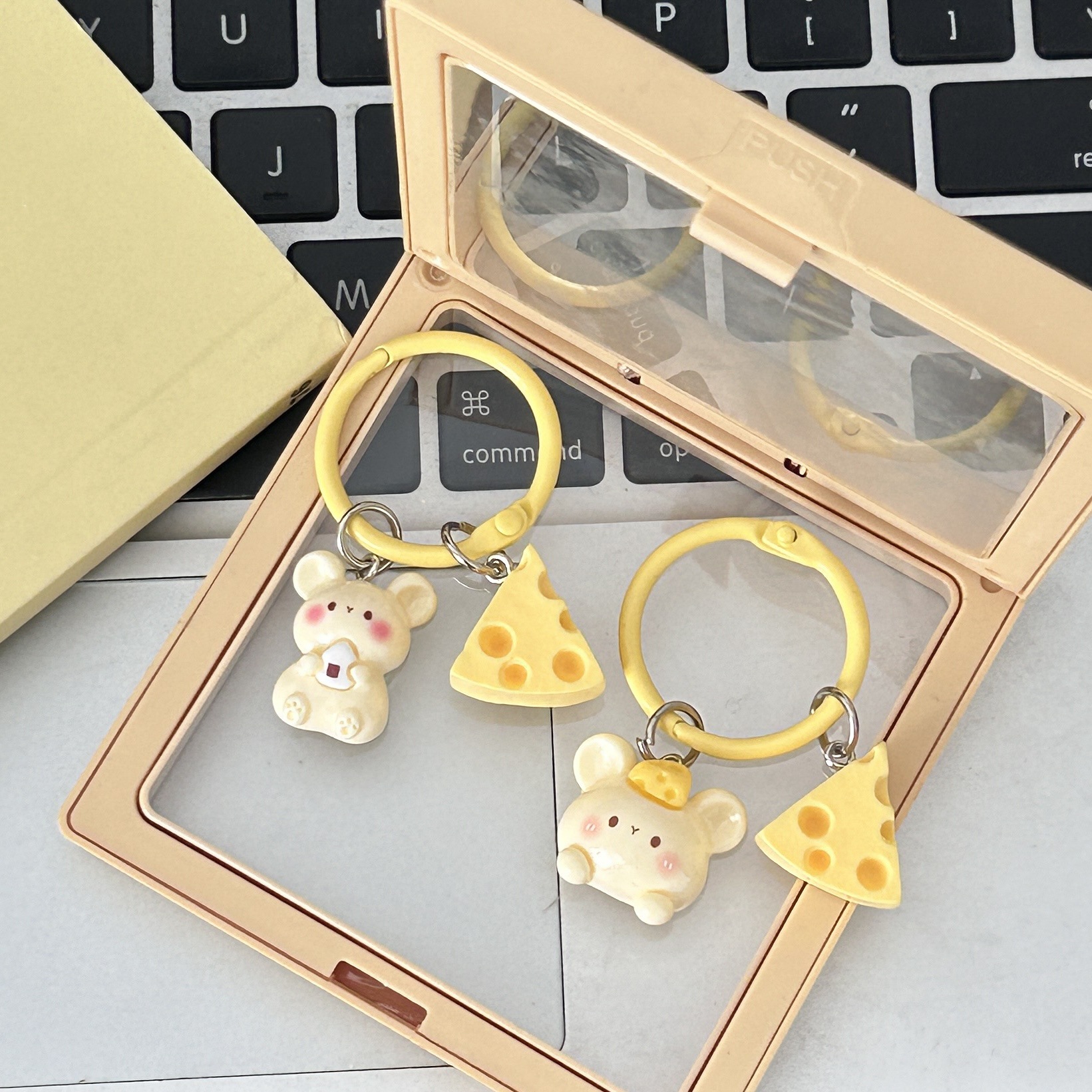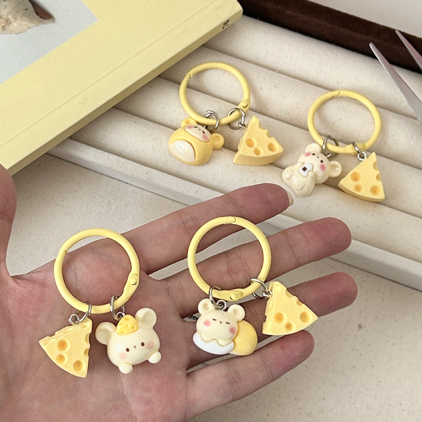 可爱卡通奶酪老鼠圆环钥匙扣趣味芝士挂件奶乎乎软萌书包配饰批发