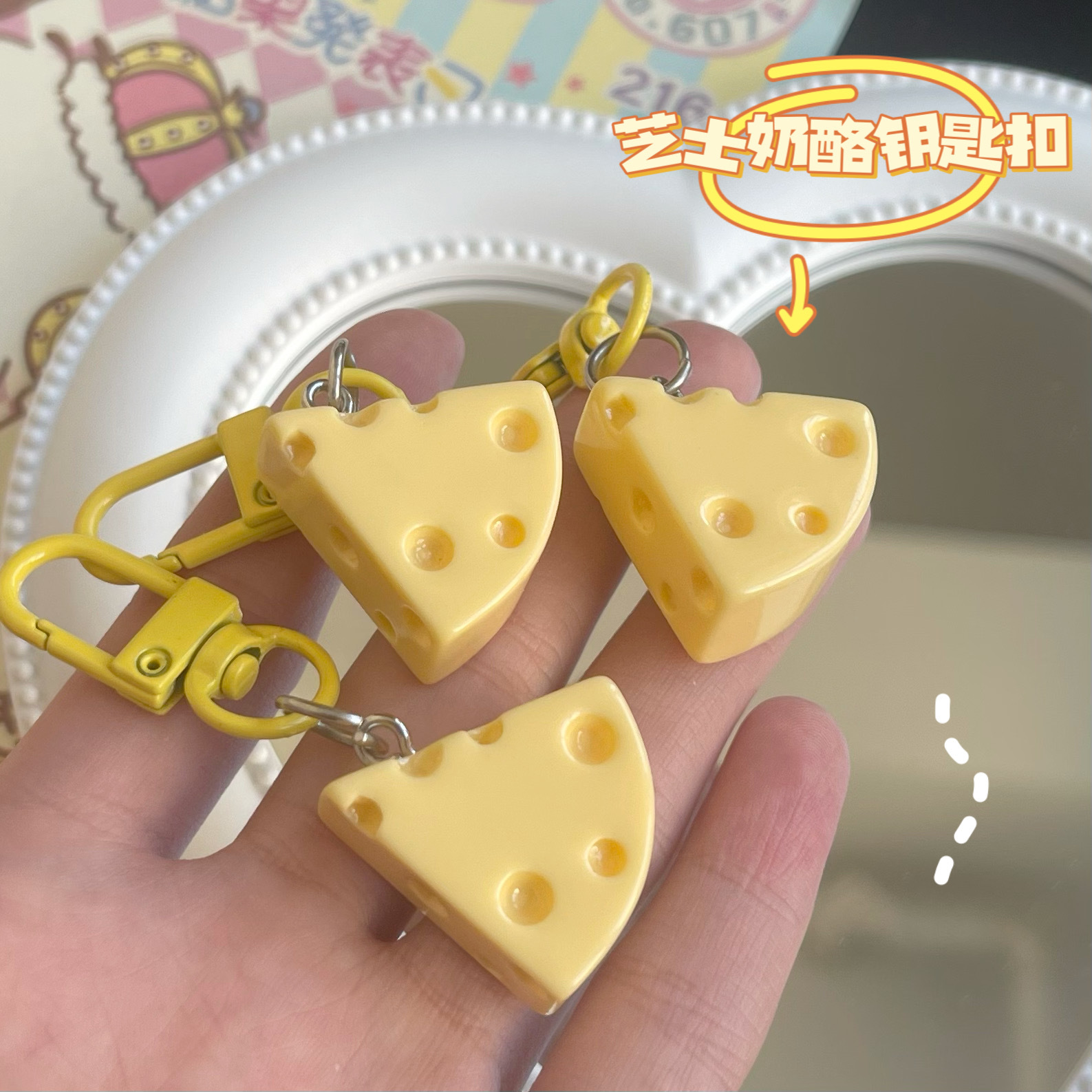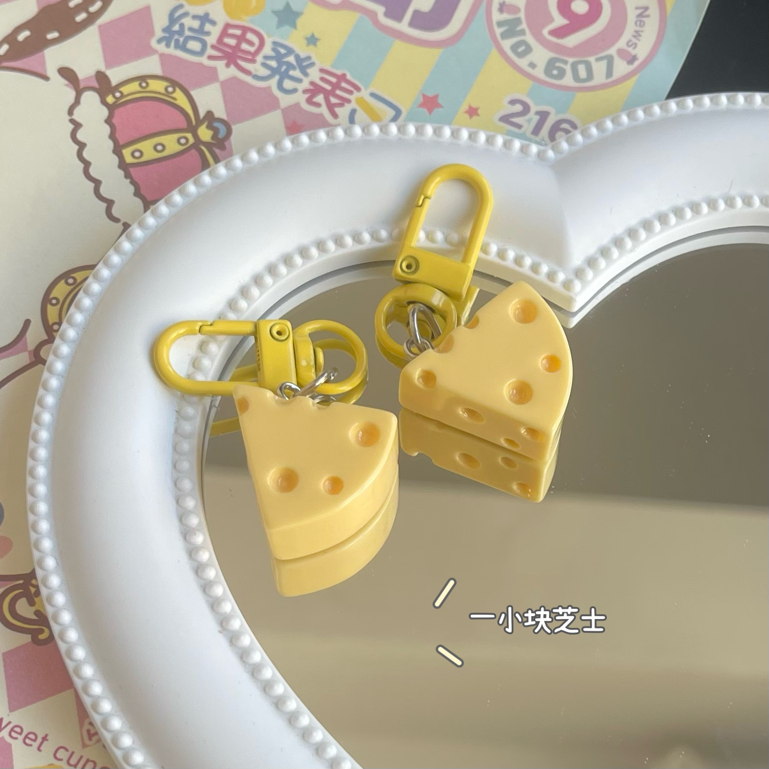 可爱奶酪钥匙扣奶黄芝士块饰品挂件学生少女心甜美仿真食玩挂件