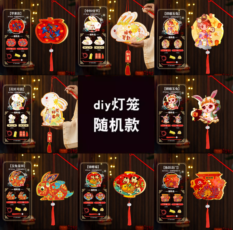 中秋节灯笼兔子卡通发光花灯儿童手提发光古风宫灯手工diy材料包