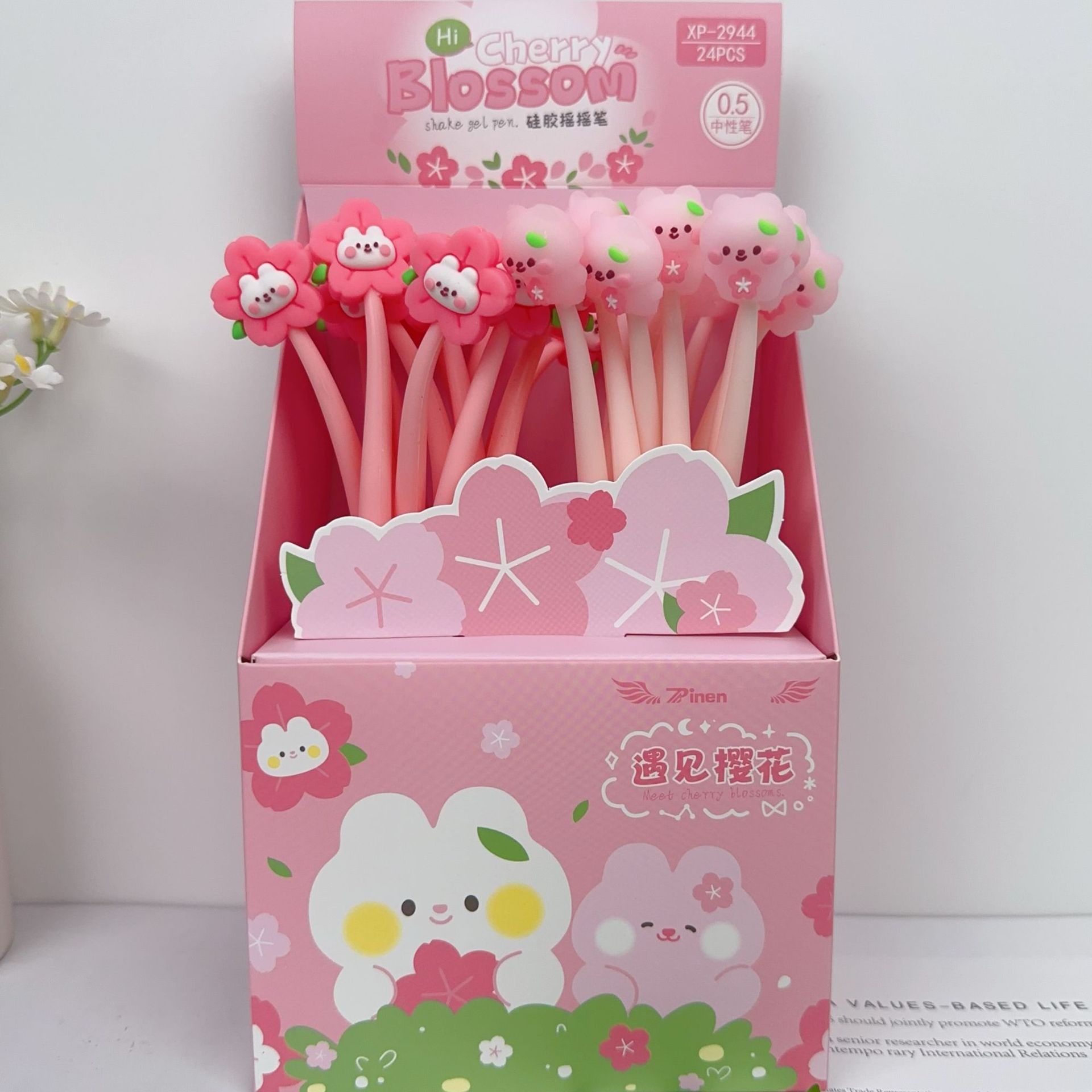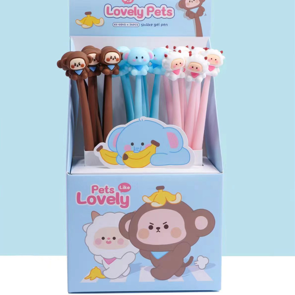 新款韩版创意水果花朵造型中性笔可爱熊猫向日葵牛油果硅胶签字笔