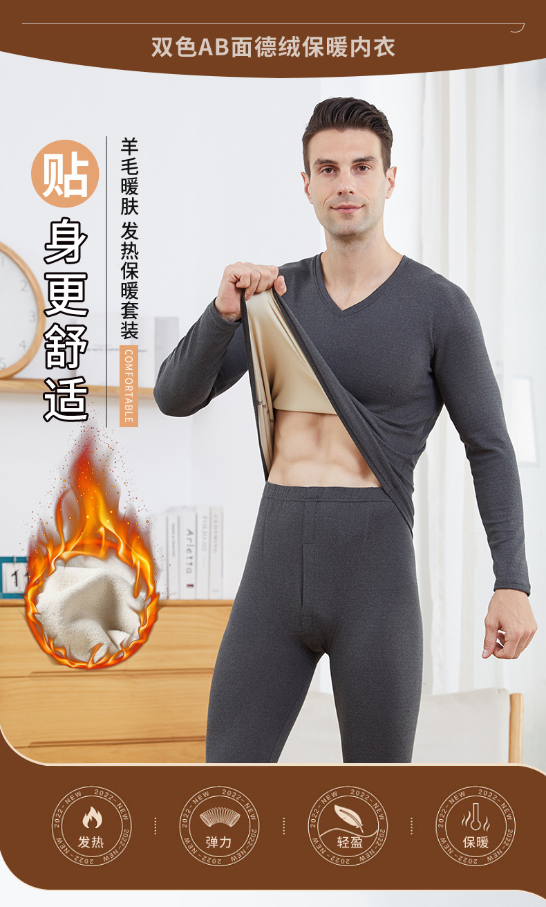 秋冬季双色AB面男士德绒保暖内衣中厚款秋衣秋裤内衣套装批发