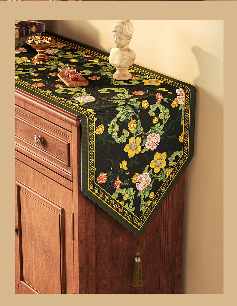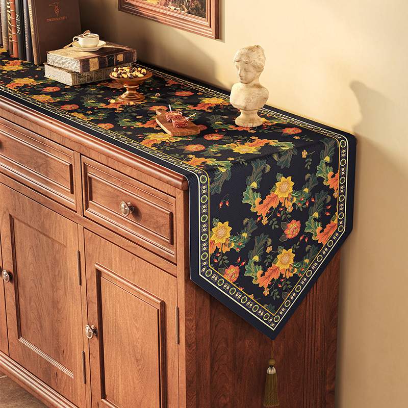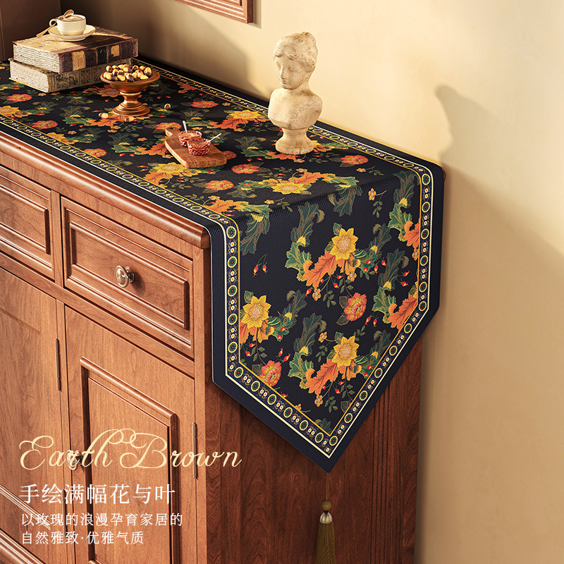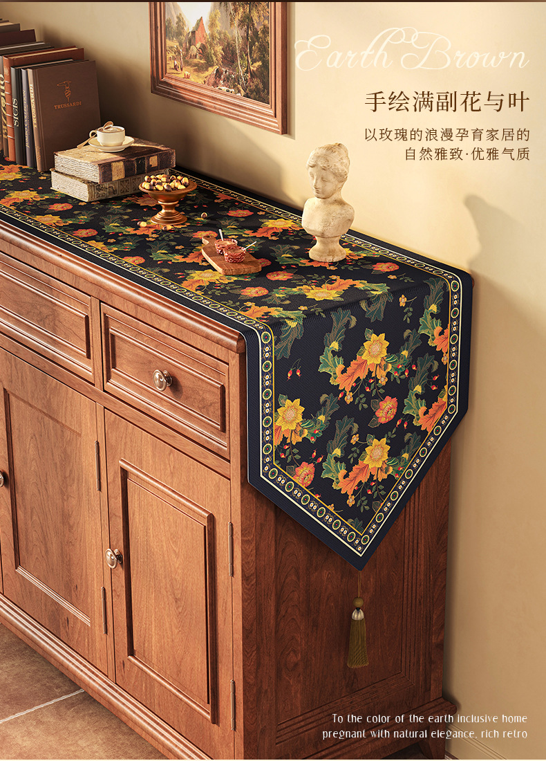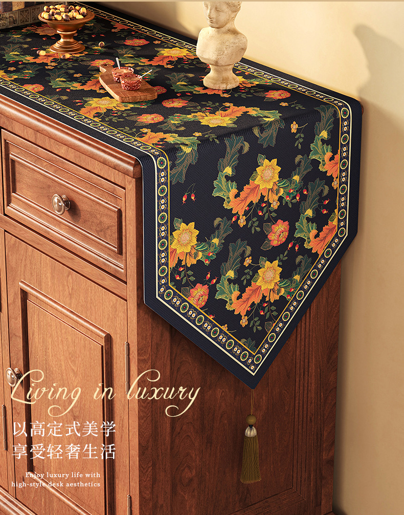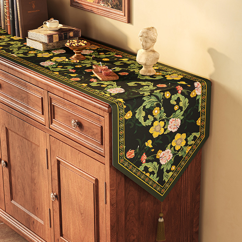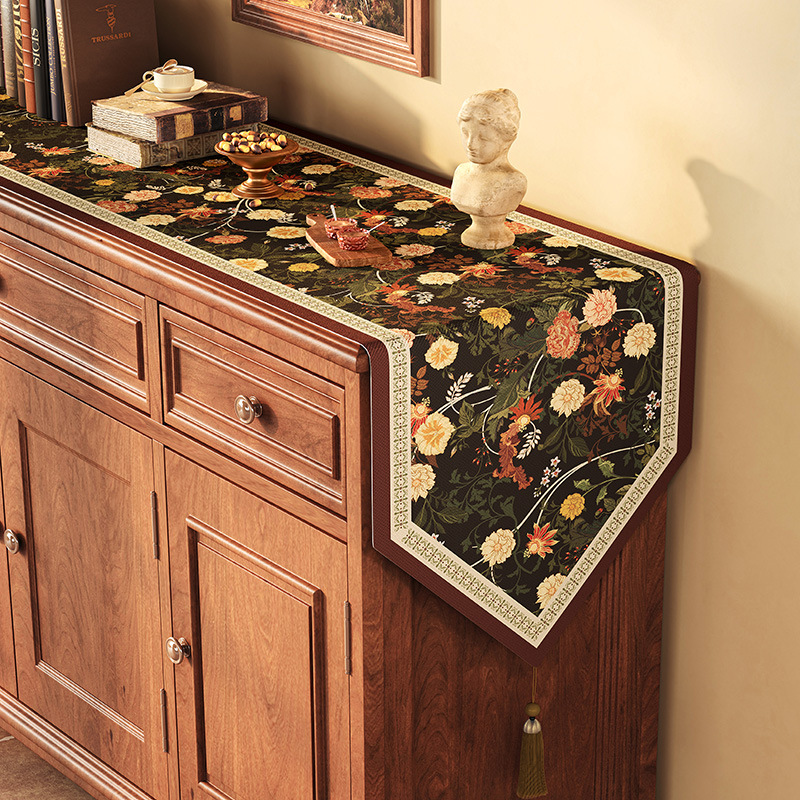 桌旗美式餐边柜轻奢高端餐桌长条茶几装饰电视柜鞋柜棉麻盖布