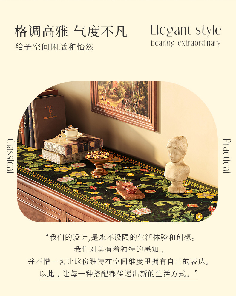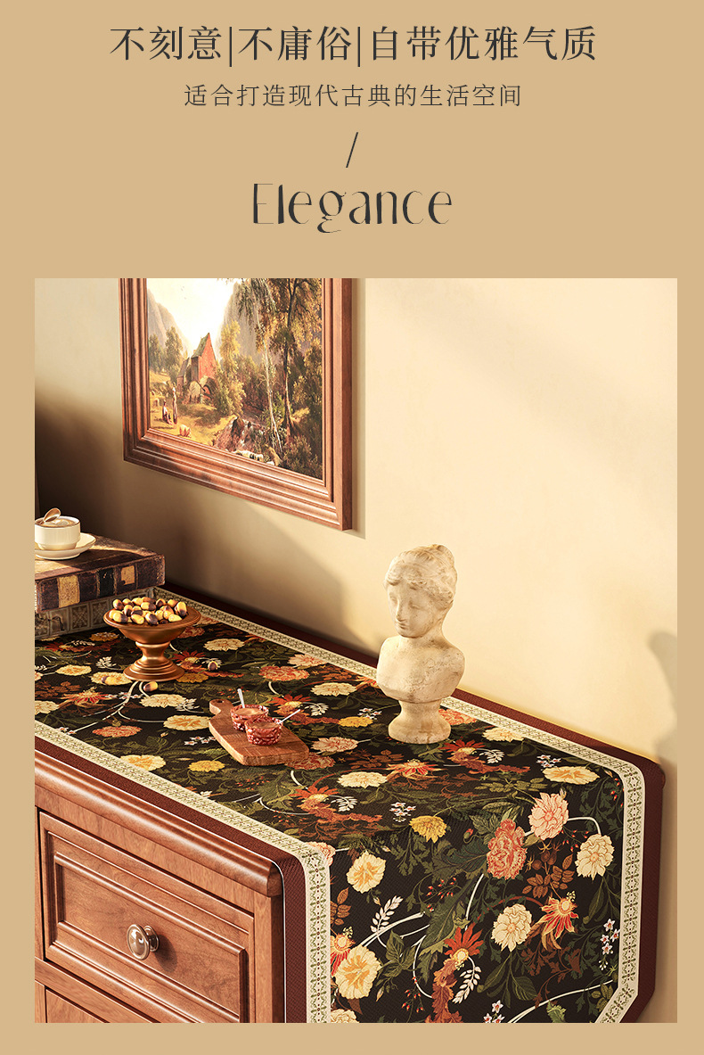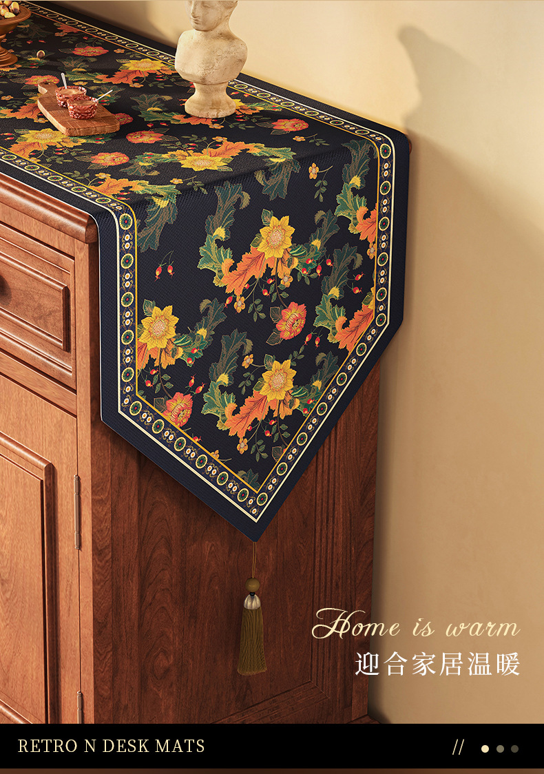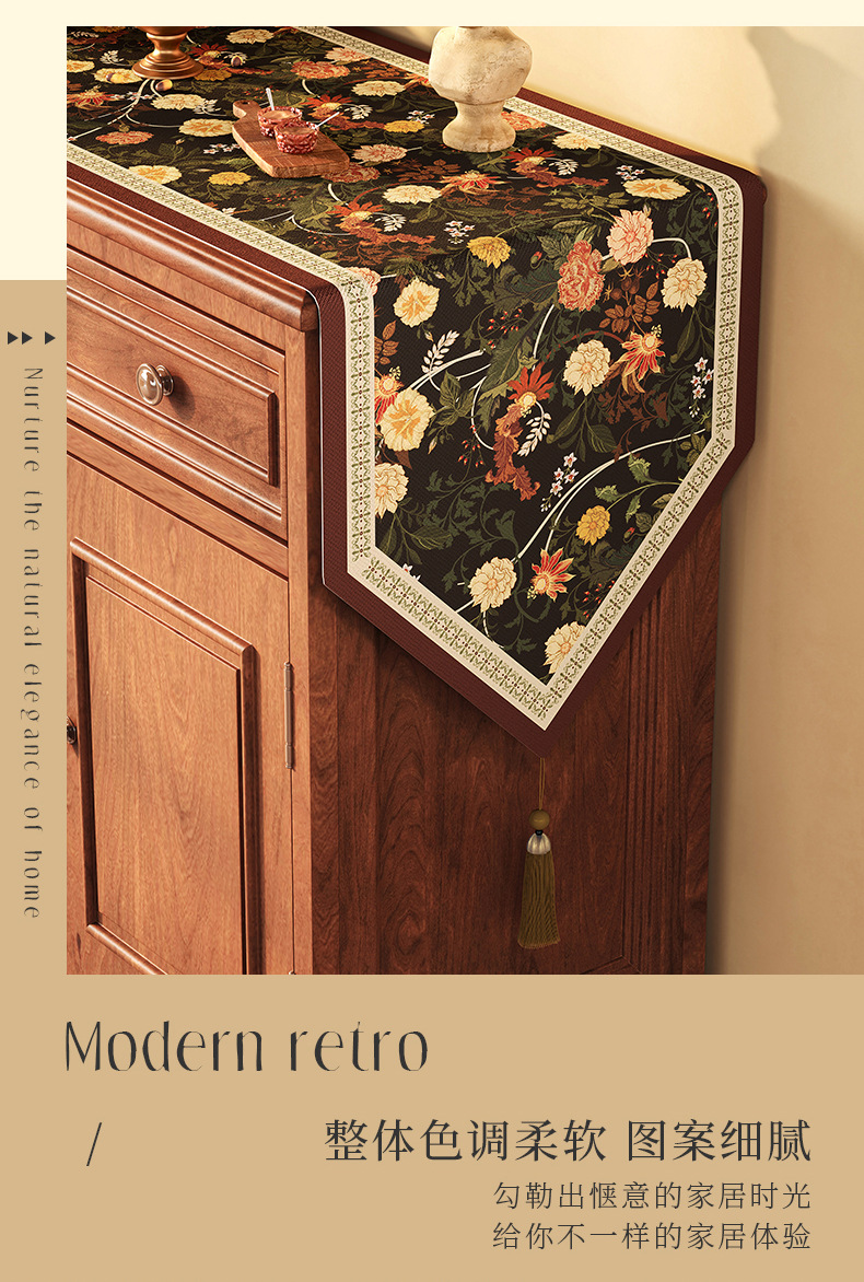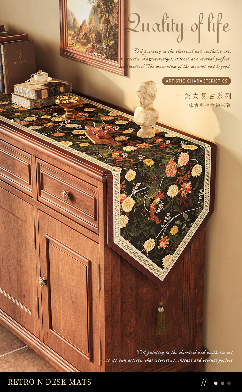 桌旗美式餐边柜轻奢高端餐桌长条茶几装饰电视柜鞋柜棉麻盖布