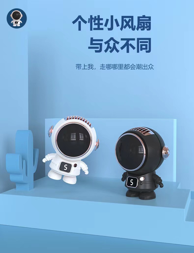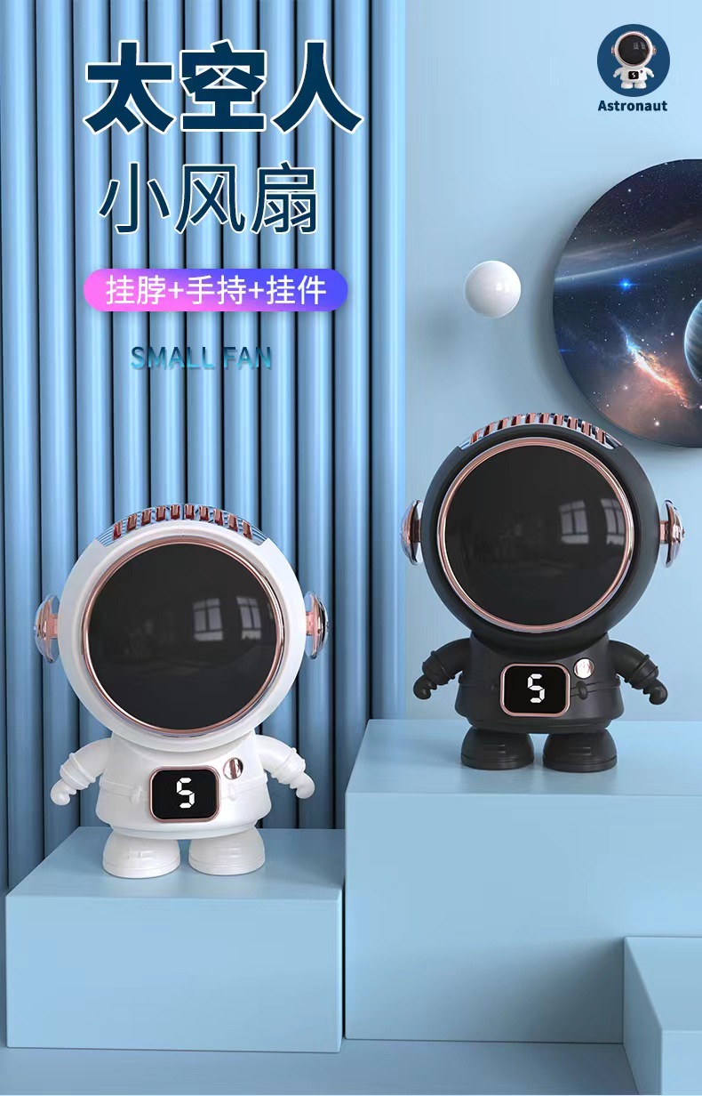 太空人挂脖风扇卡通静音迷你手持小风扇usb充电便携式学生电风扇