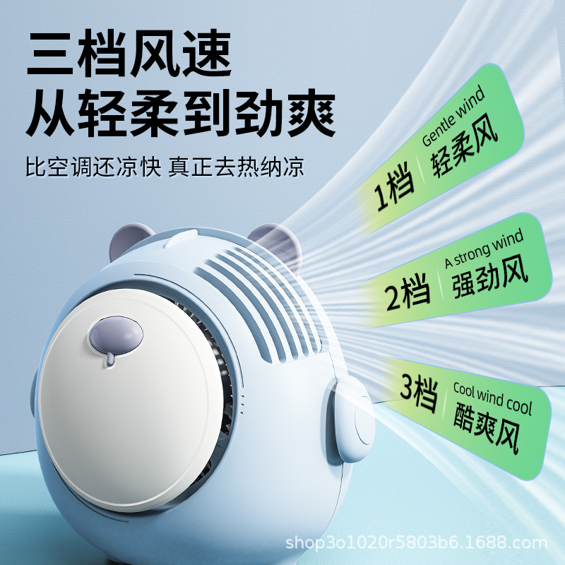 usb充电无叶胖胖熊挂脖小风扇 挂绳小风扇迷你便携式静音礼品跨境