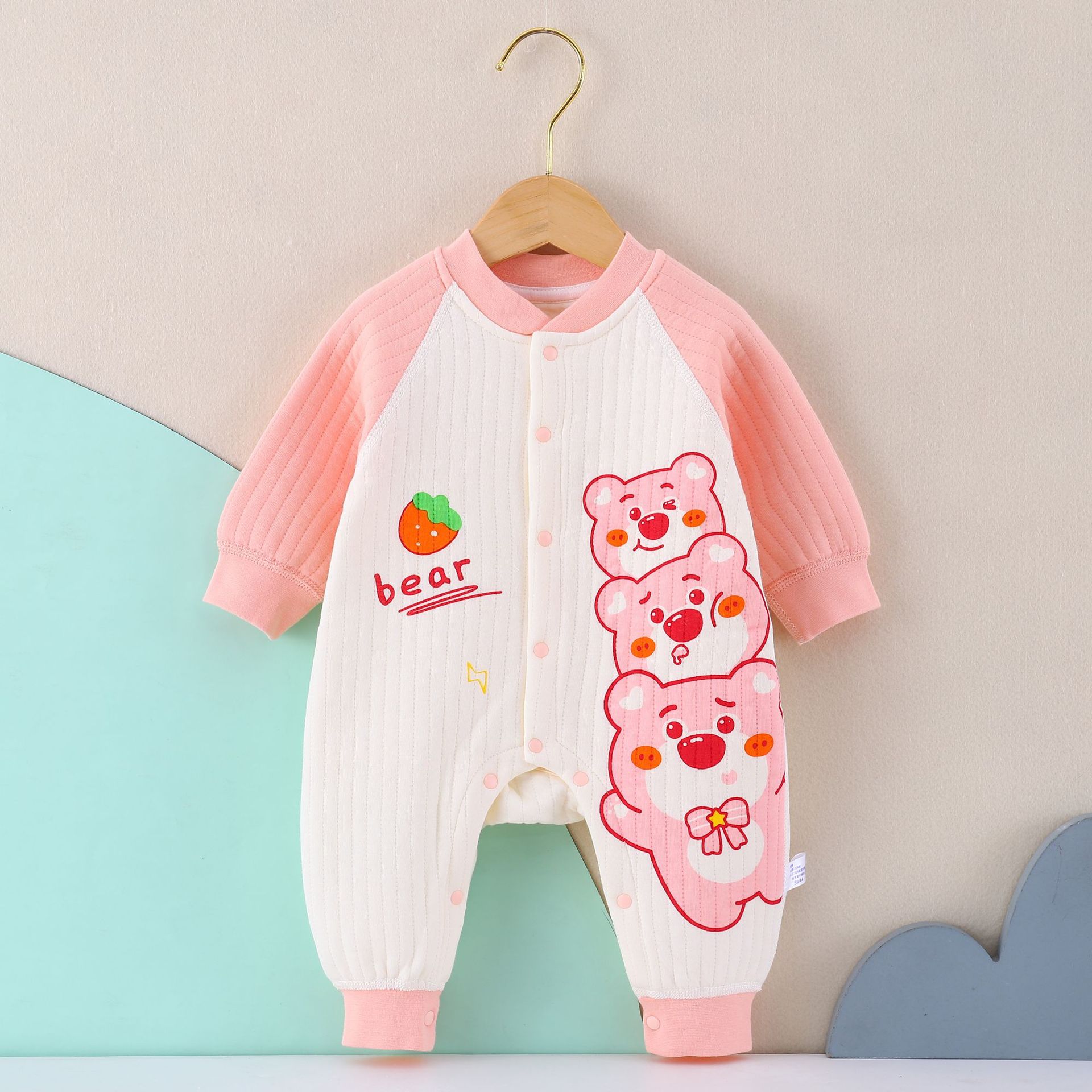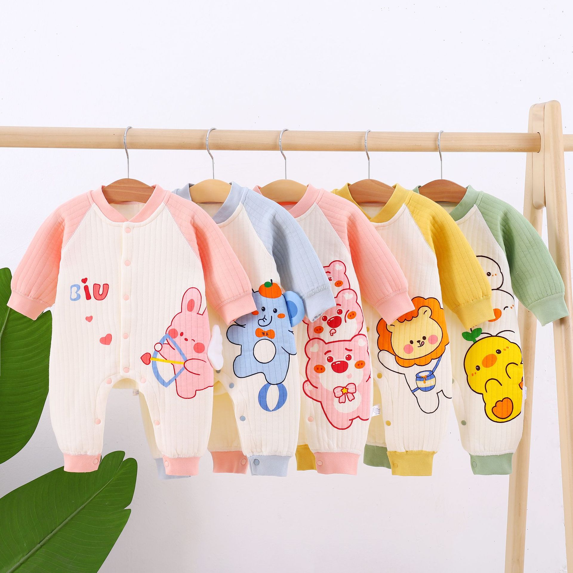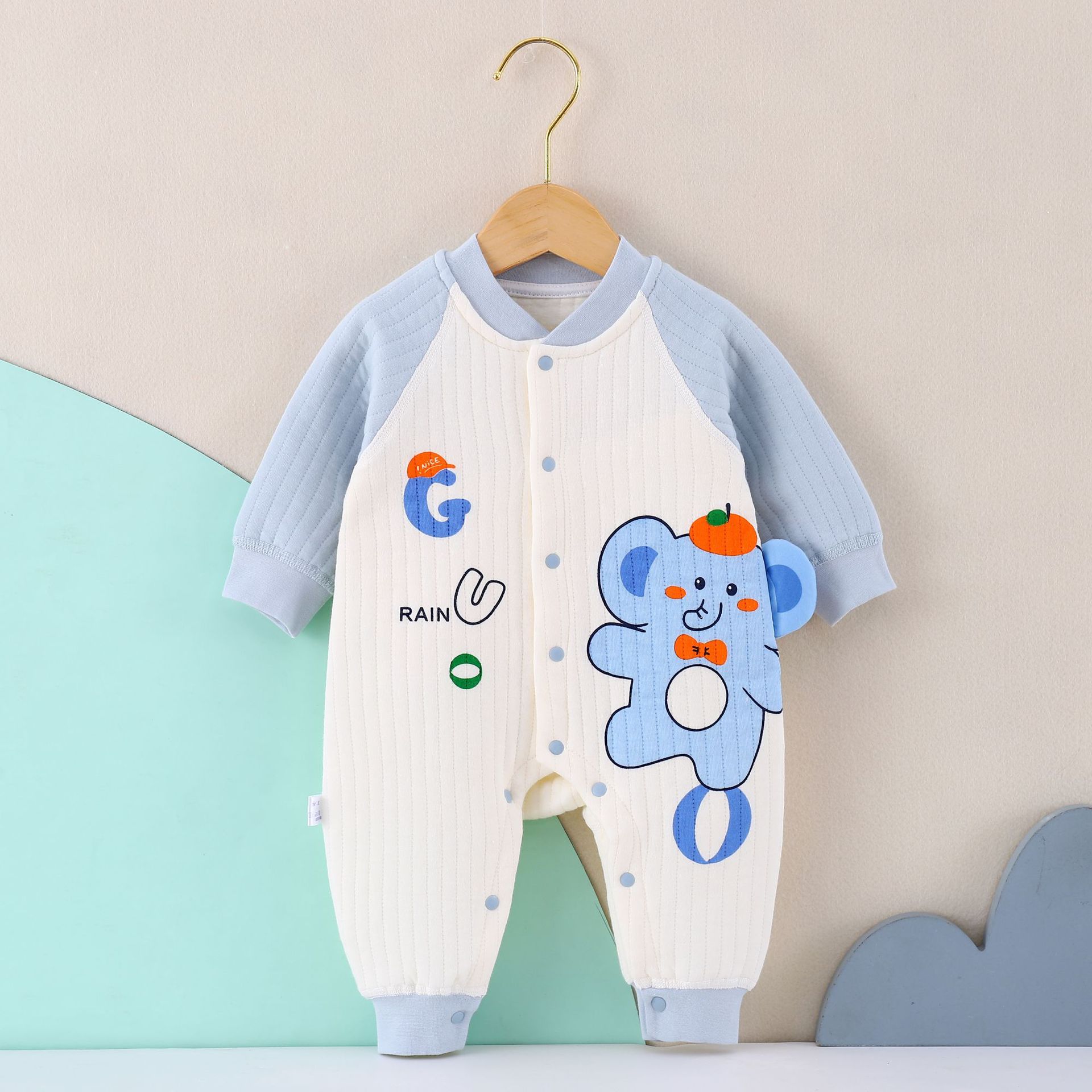 新款婴幼儿可爱三层保暖连体衣秋冬舒适男女宝宝一件代发爬爬衣