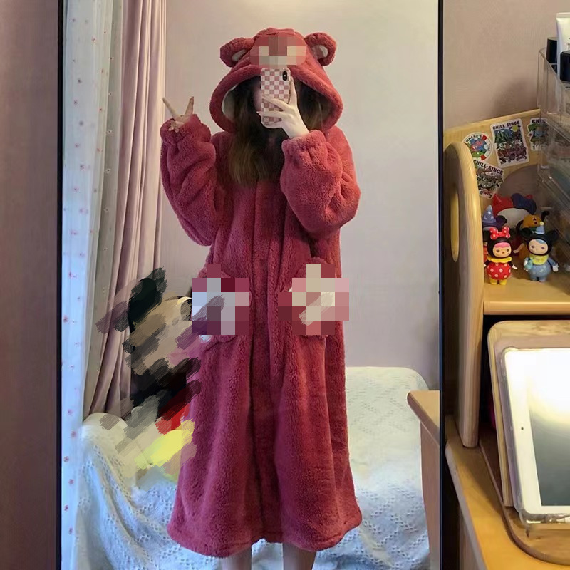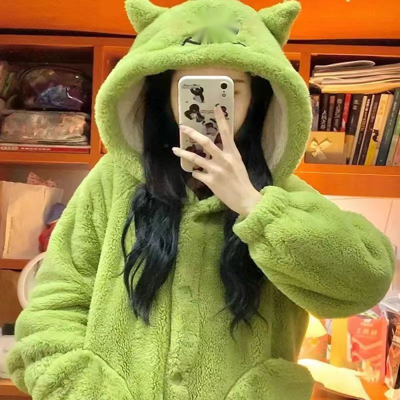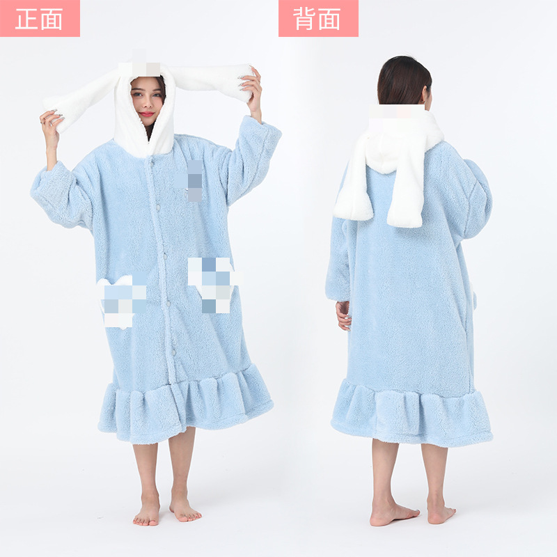 绿色帕恰狗秋冬季珊瑚绒加厚保暖连帽卡通连体睡衣情侣家居服