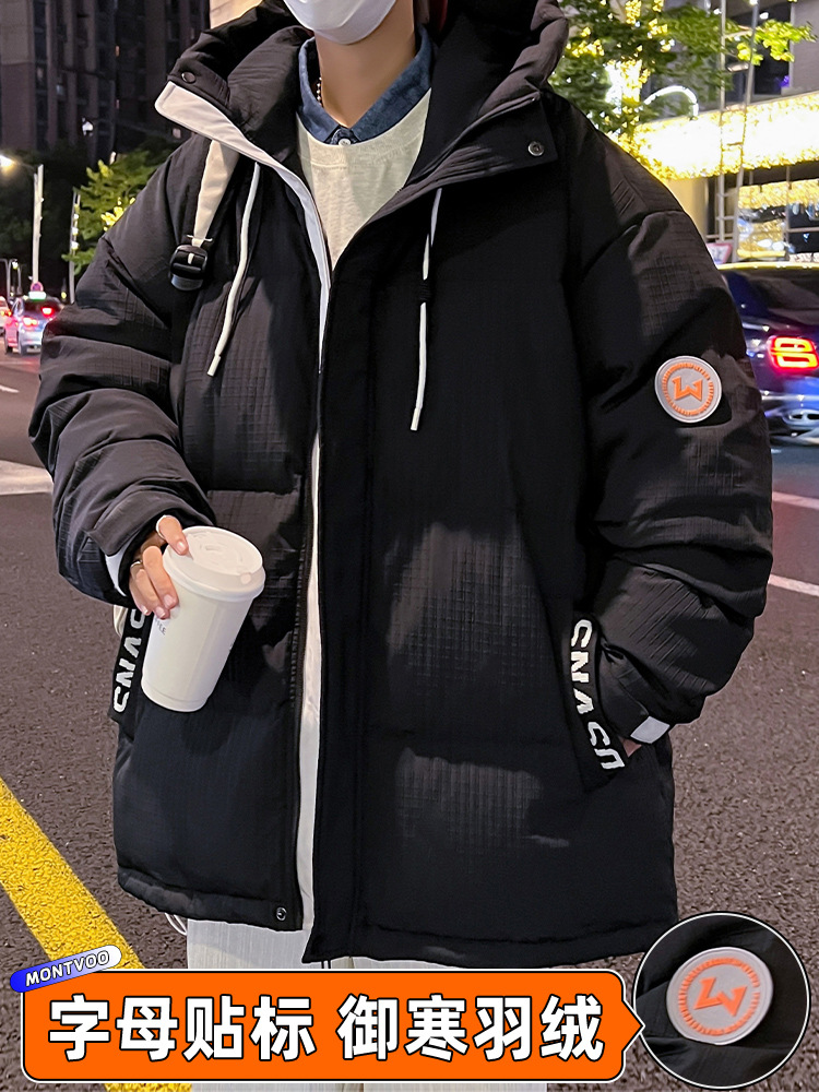 NASA加厚大鹅羽绒服男冬季新款加绒短款冬装轻薄冲锋衣跨境外套潮