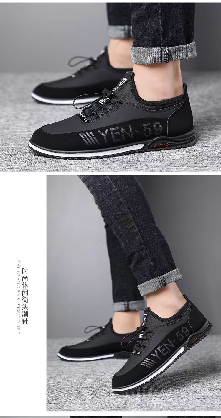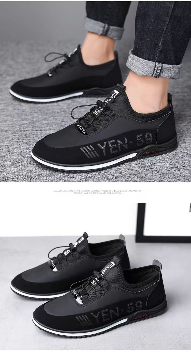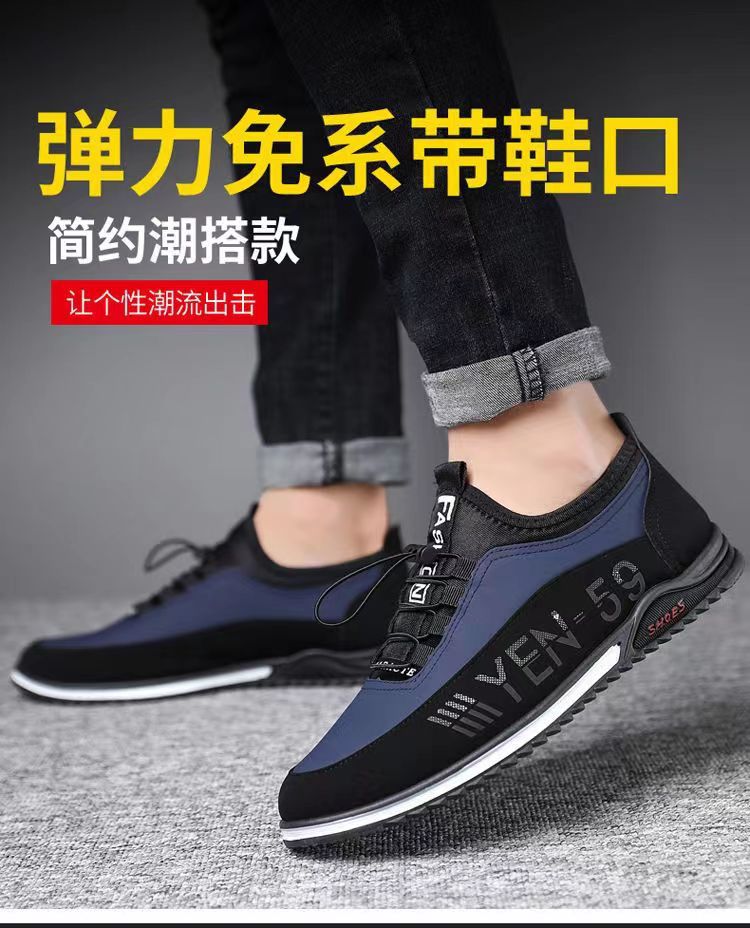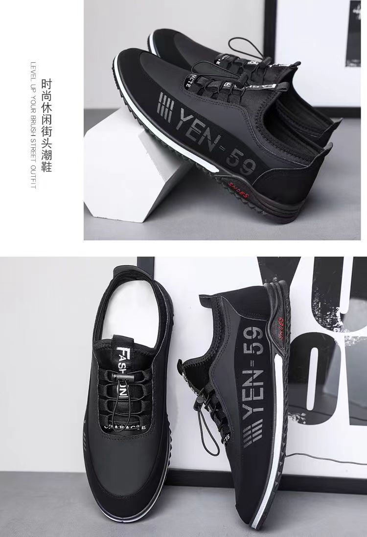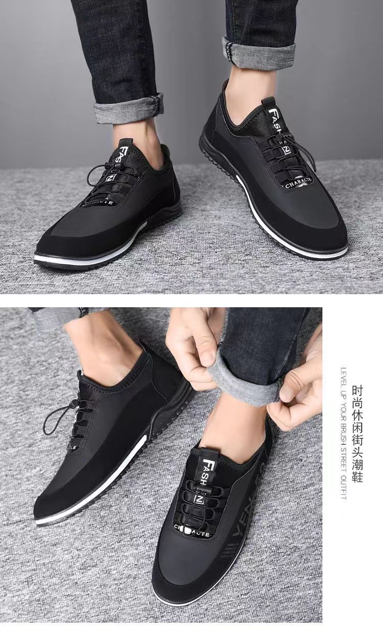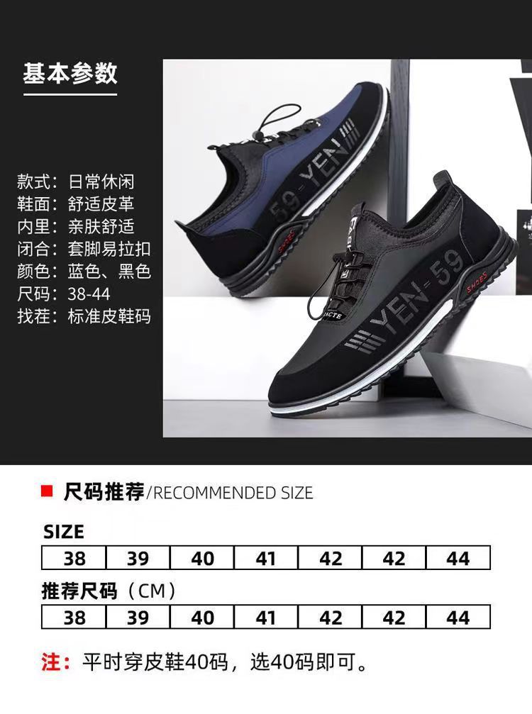 男鞋春季新款韩版透气休闲鞋男士皮面男鞋潮流休闲皮鞋一脚蹬单鞋