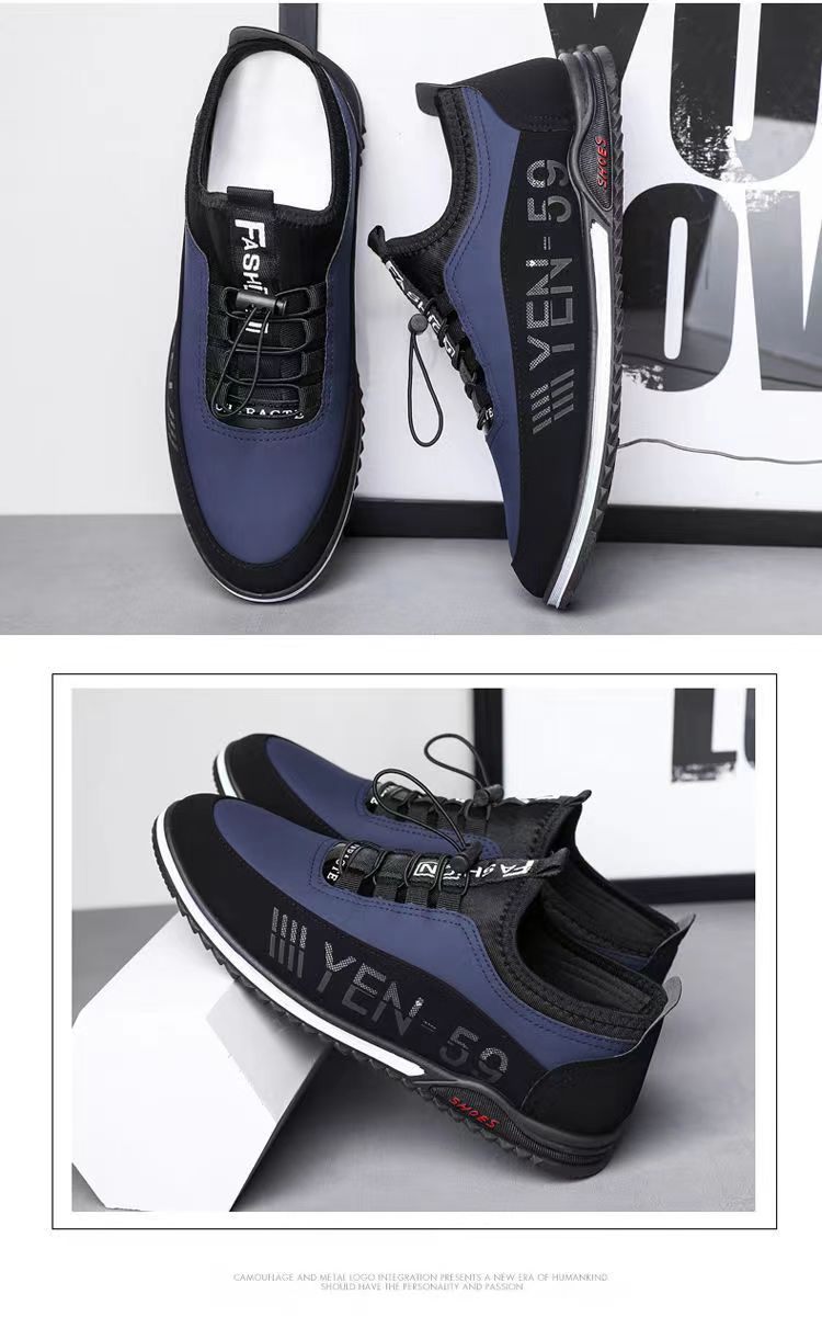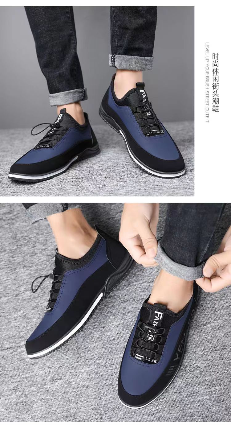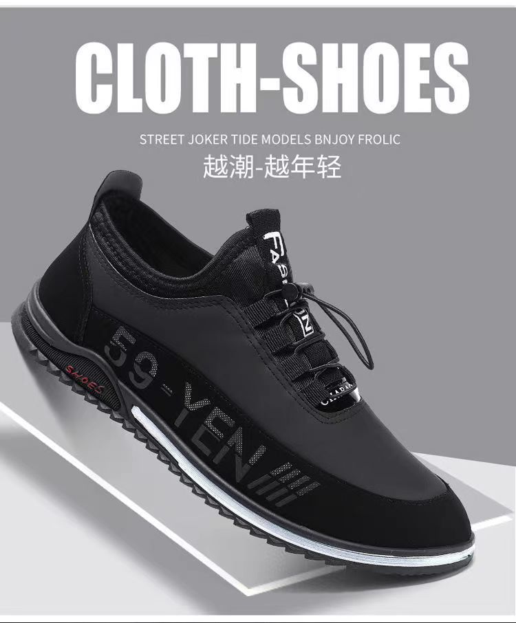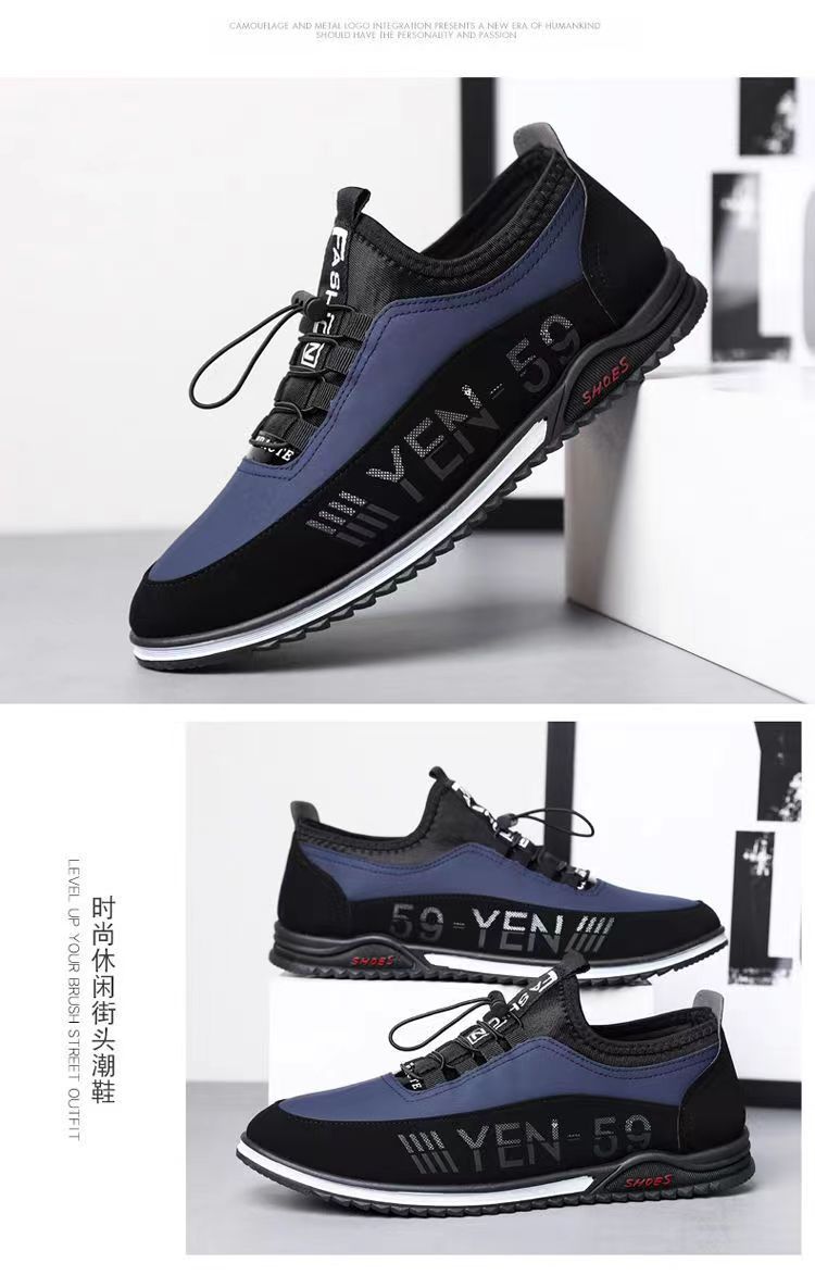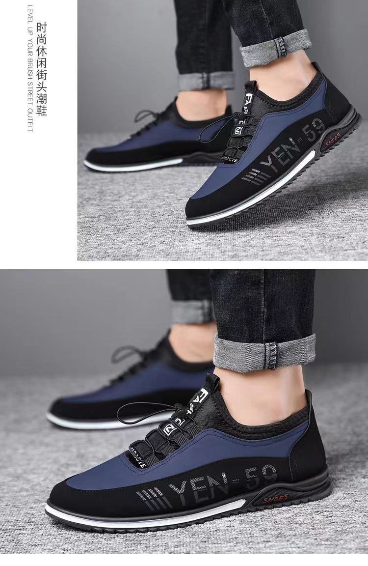 男鞋春季新款韩版透气休闲鞋男士皮面男鞋潮流休闲皮鞋一脚蹬单鞋