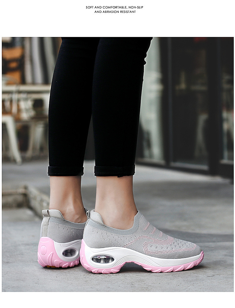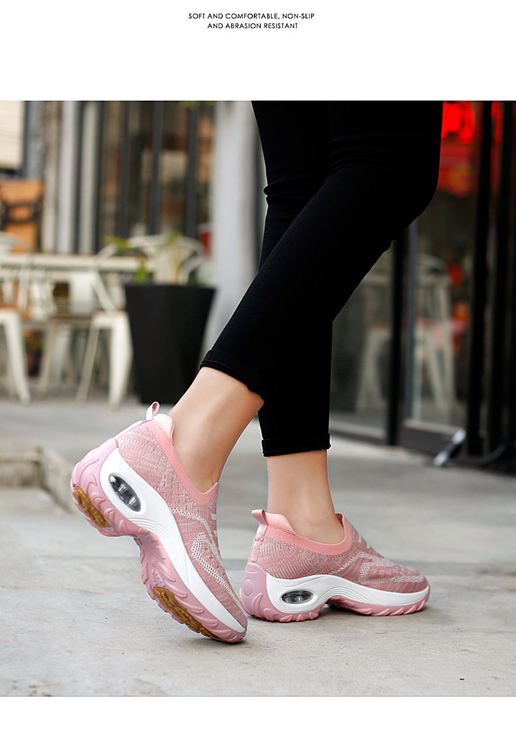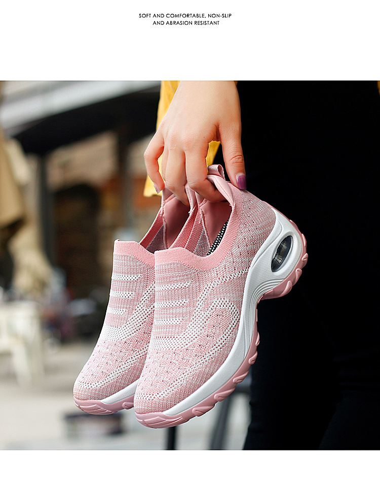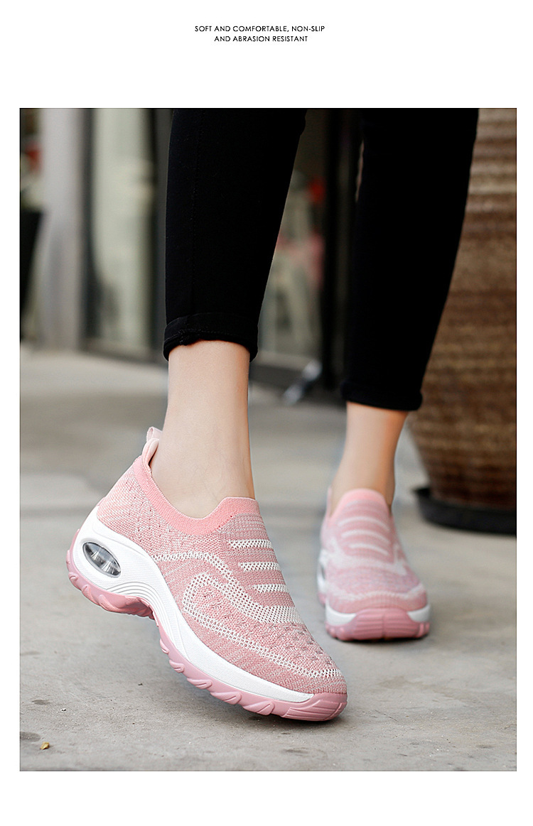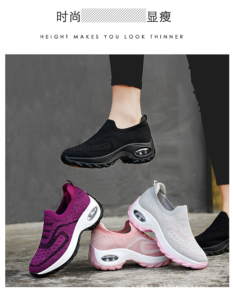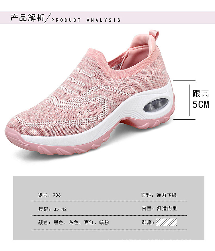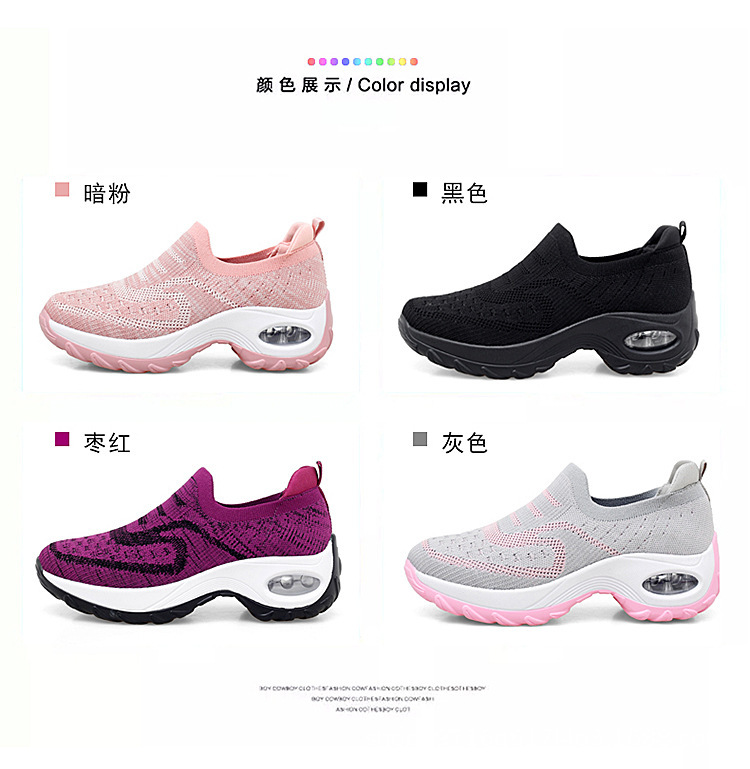 新款飞织气垫鞋子2024夏季女式休闲鞋外贸大码时尚潮流透气女鞋