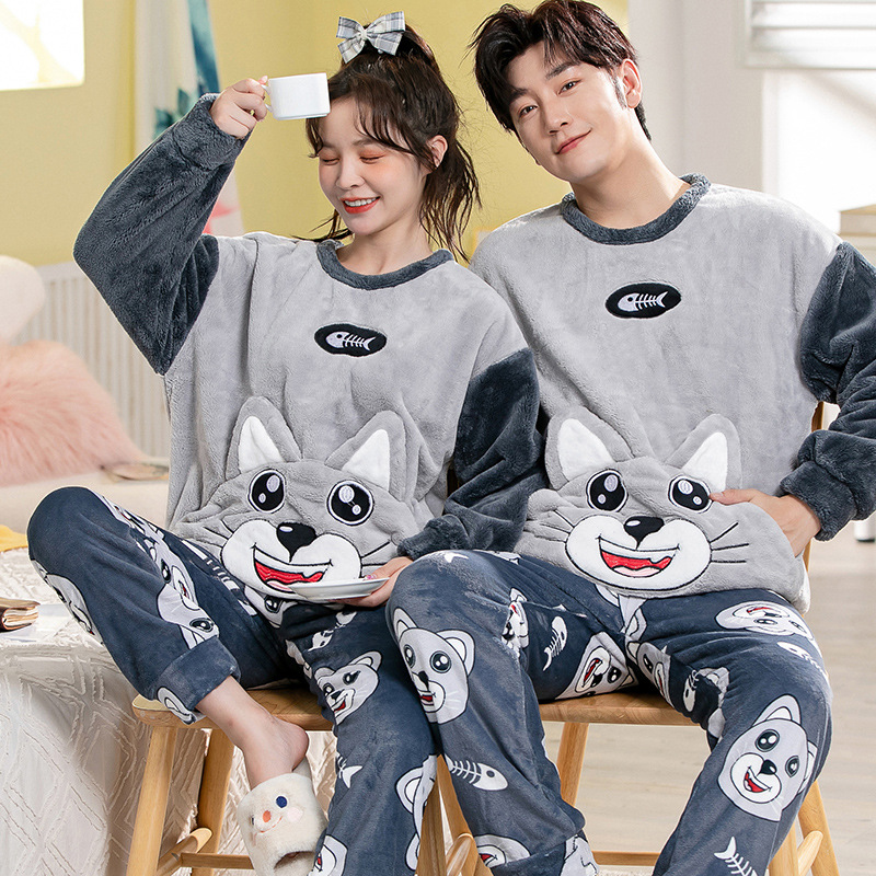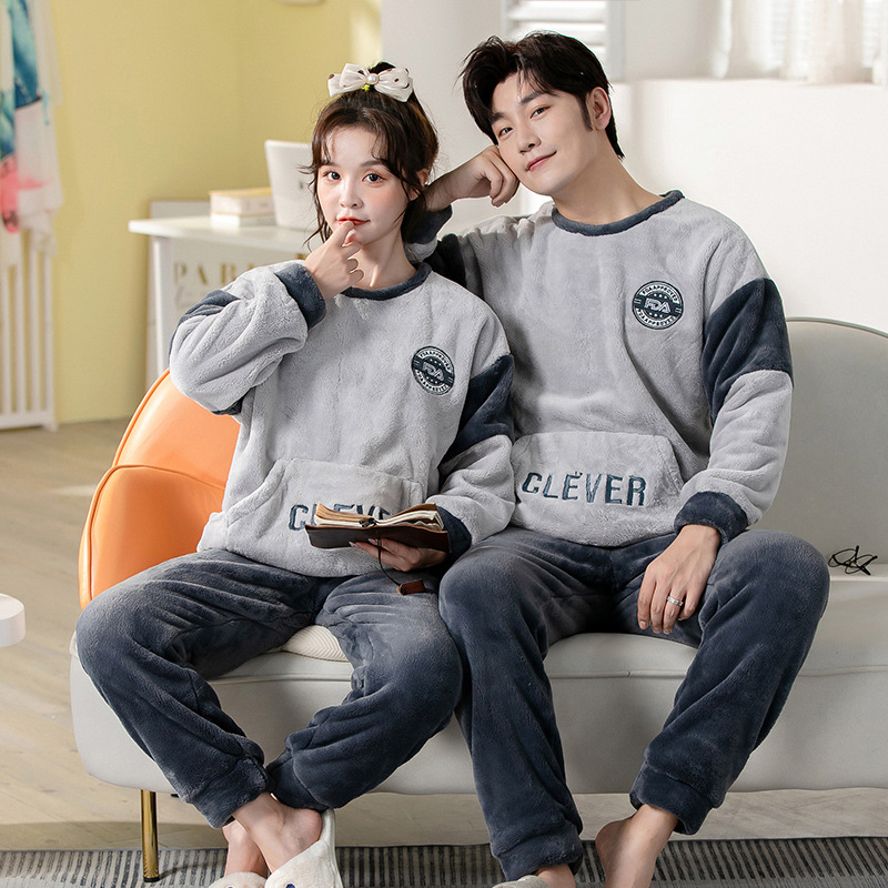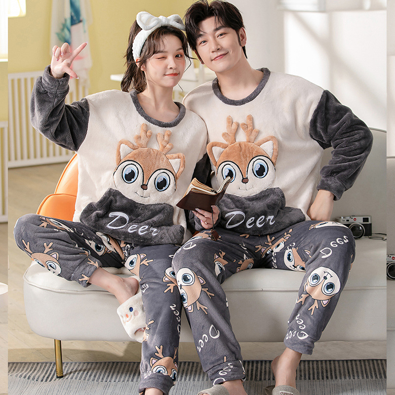 2023秋冬季新品情侣睡衣珊瑚绒男200克加绒加厚法兰绒保暖家居服