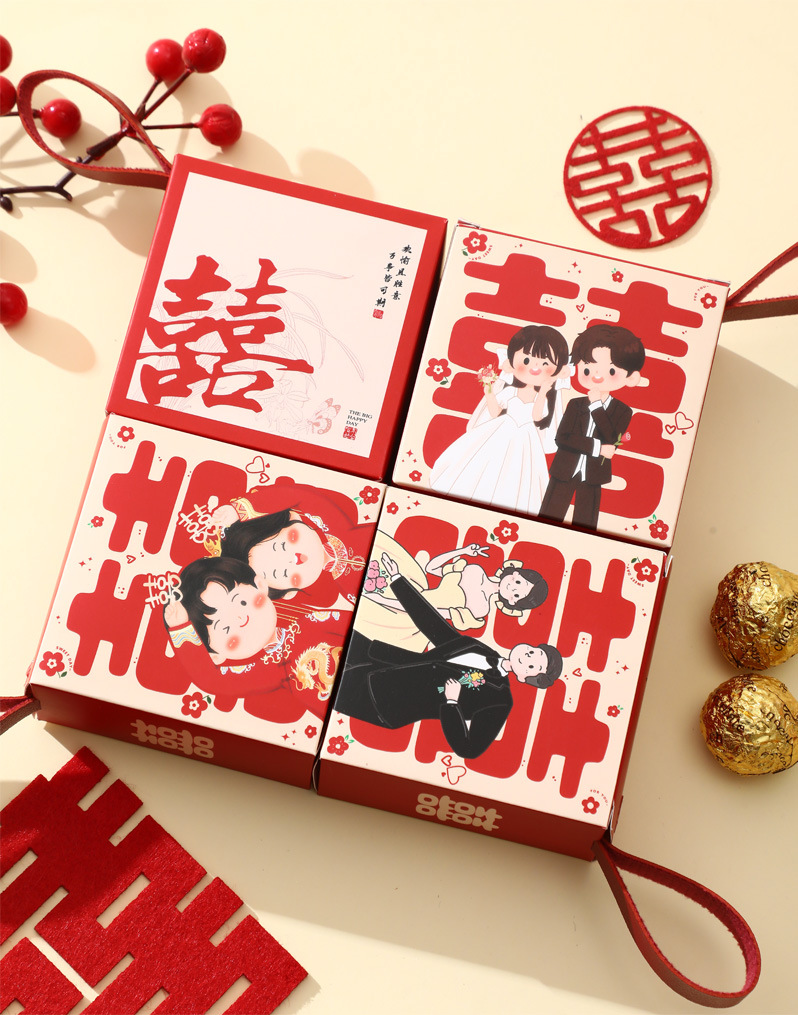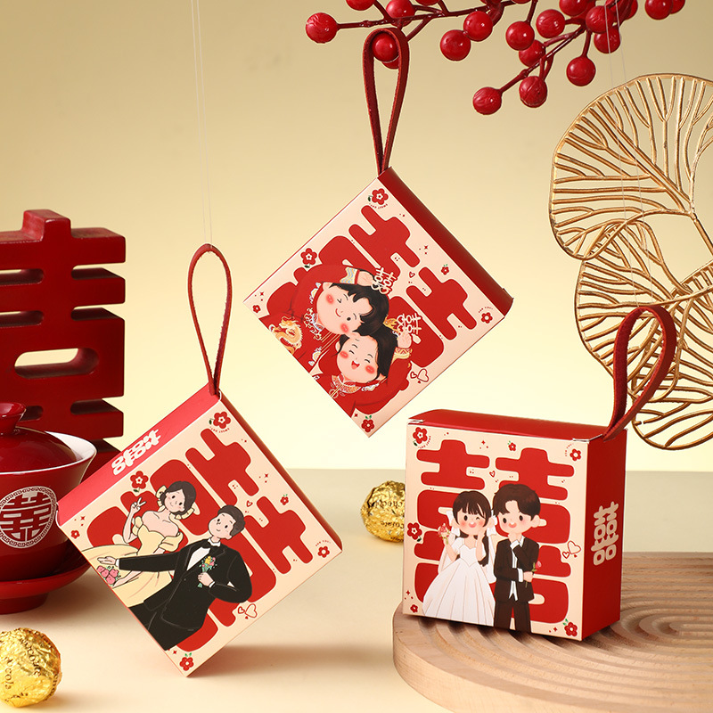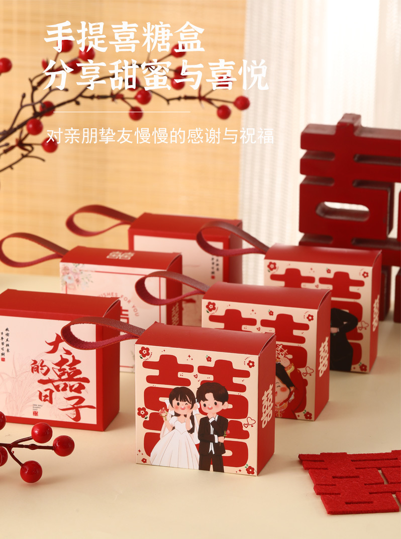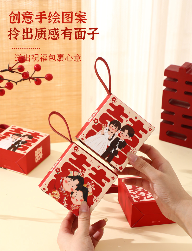 2024新款喜糖盒子结婚用高级感卡通糖盒喜糖袋订婚伴手礼包装空盒