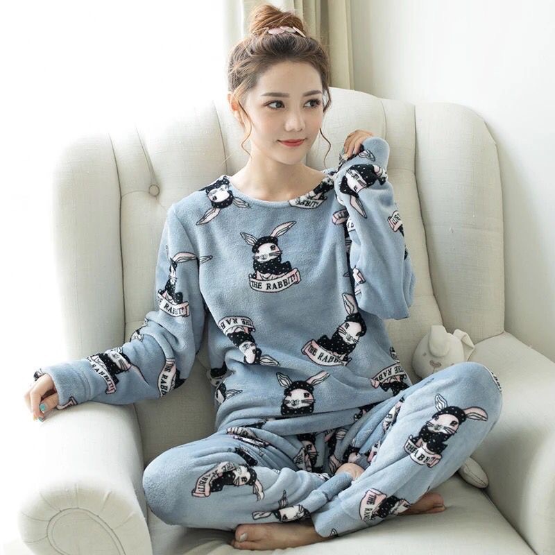 睡衣女冬季法兰绒韩版长袖加厚加绒珊瑚绒可爱秋冬季家居服套装女