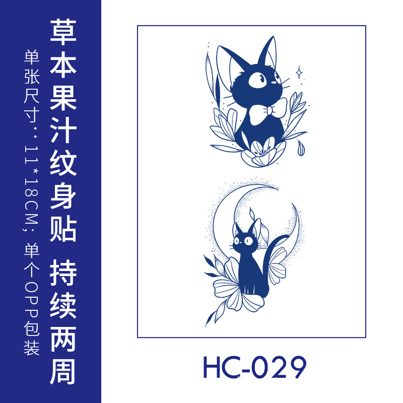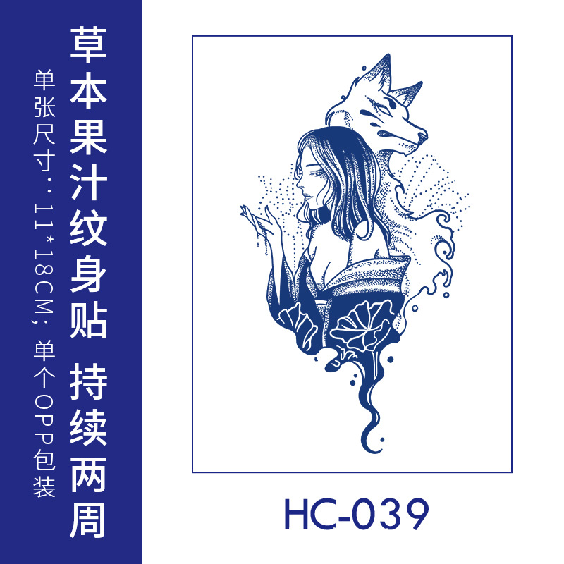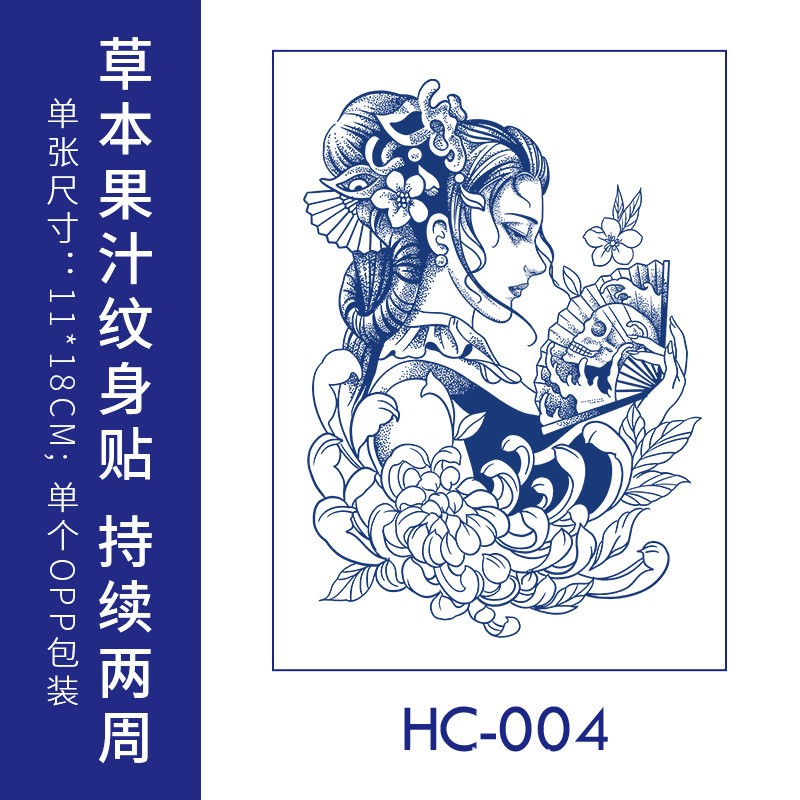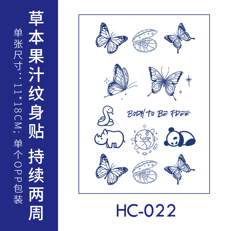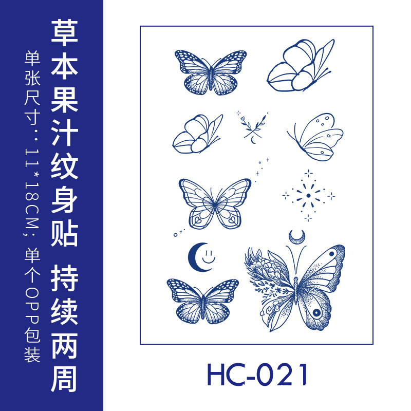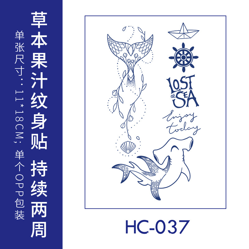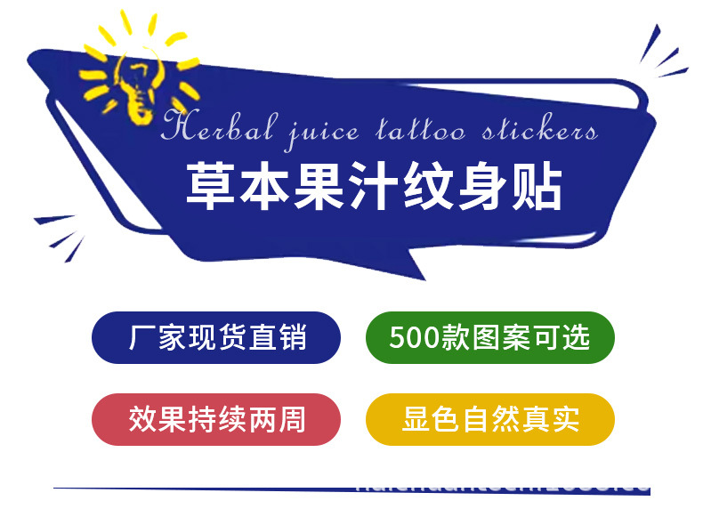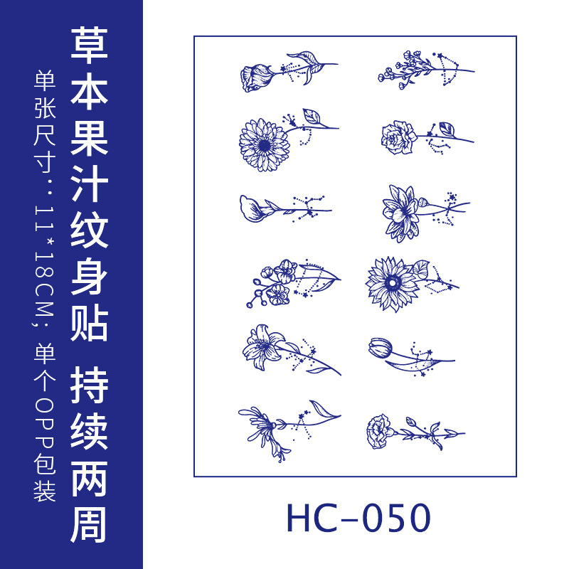 跨境草本纹身贴果汁半永久高级感花臂草木防水男贴纸ins风女饰品