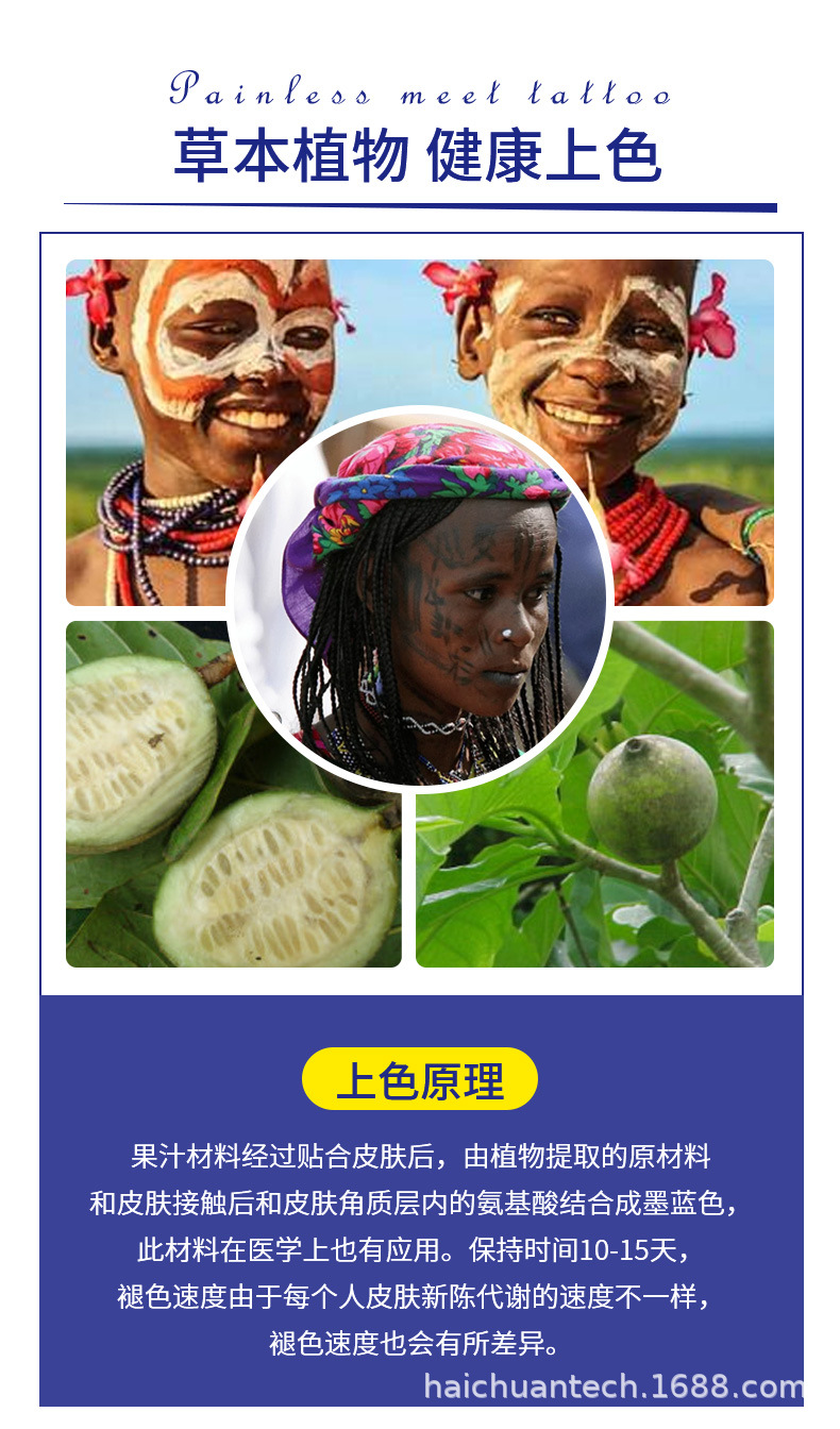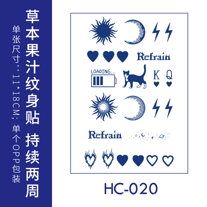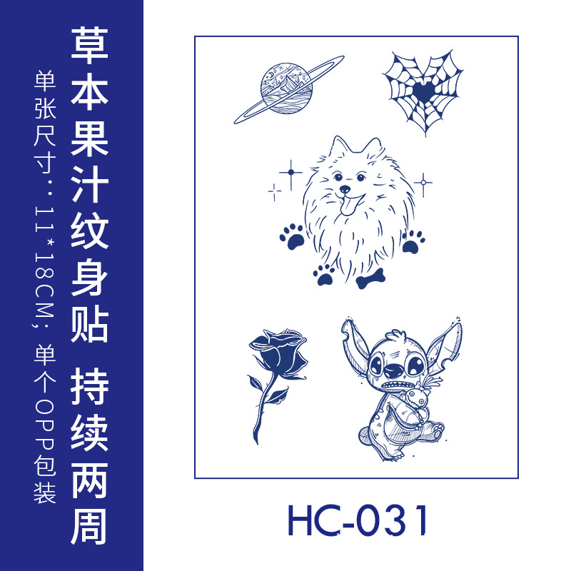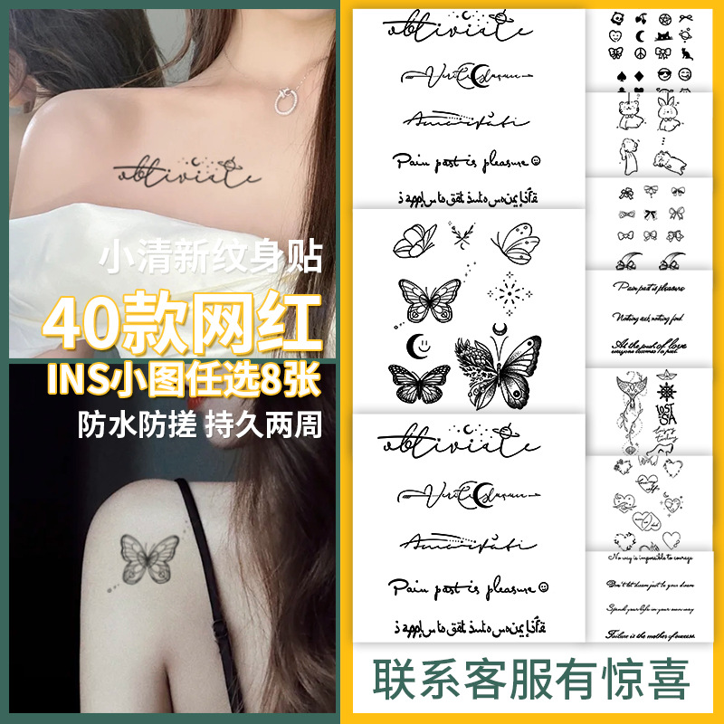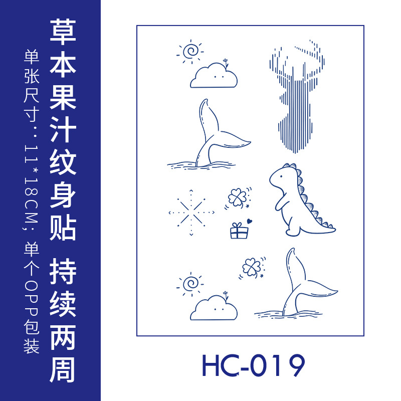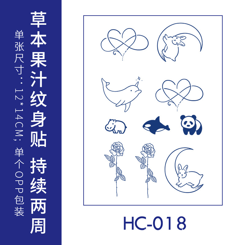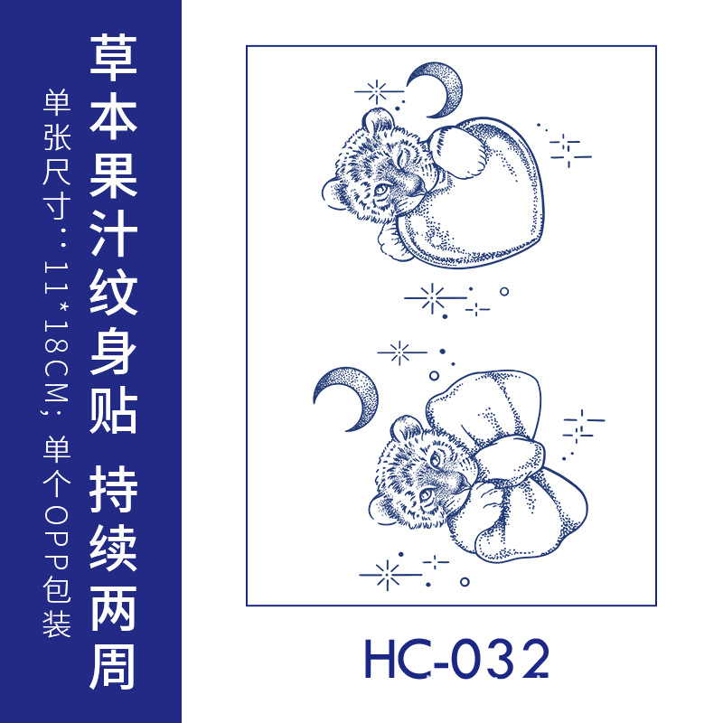 跨境草本纹身贴果汁半永久高级感花臂草木防水男贴纸ins风女饰品
