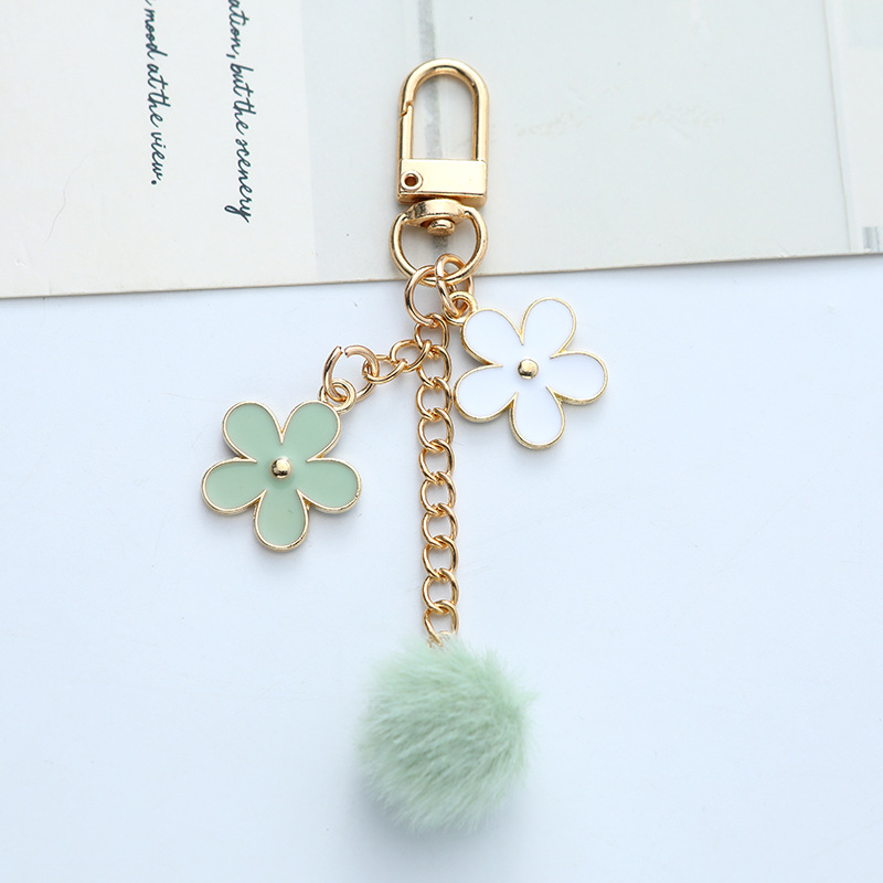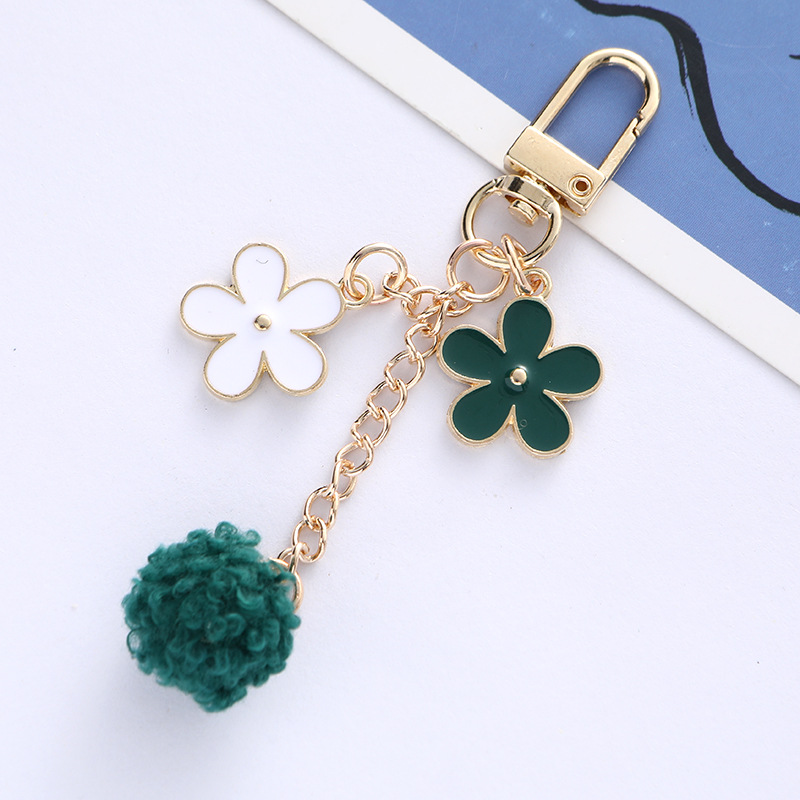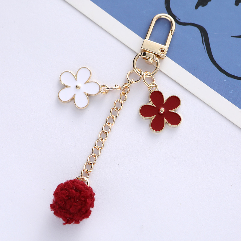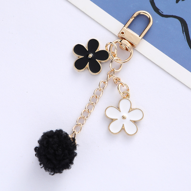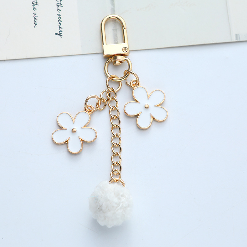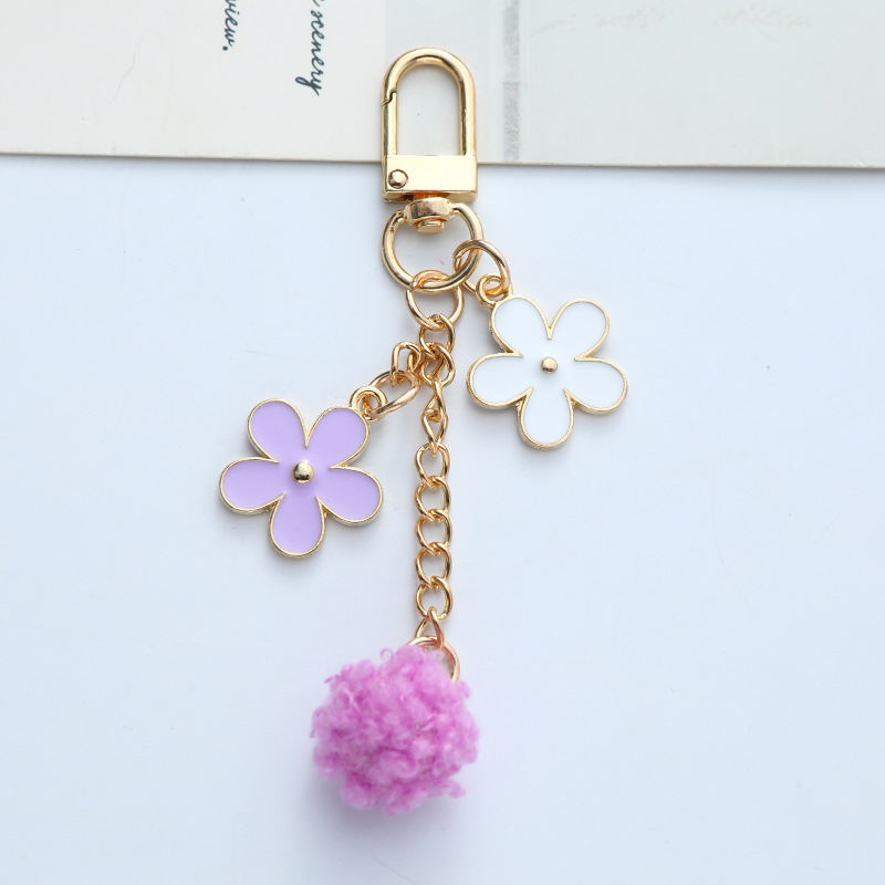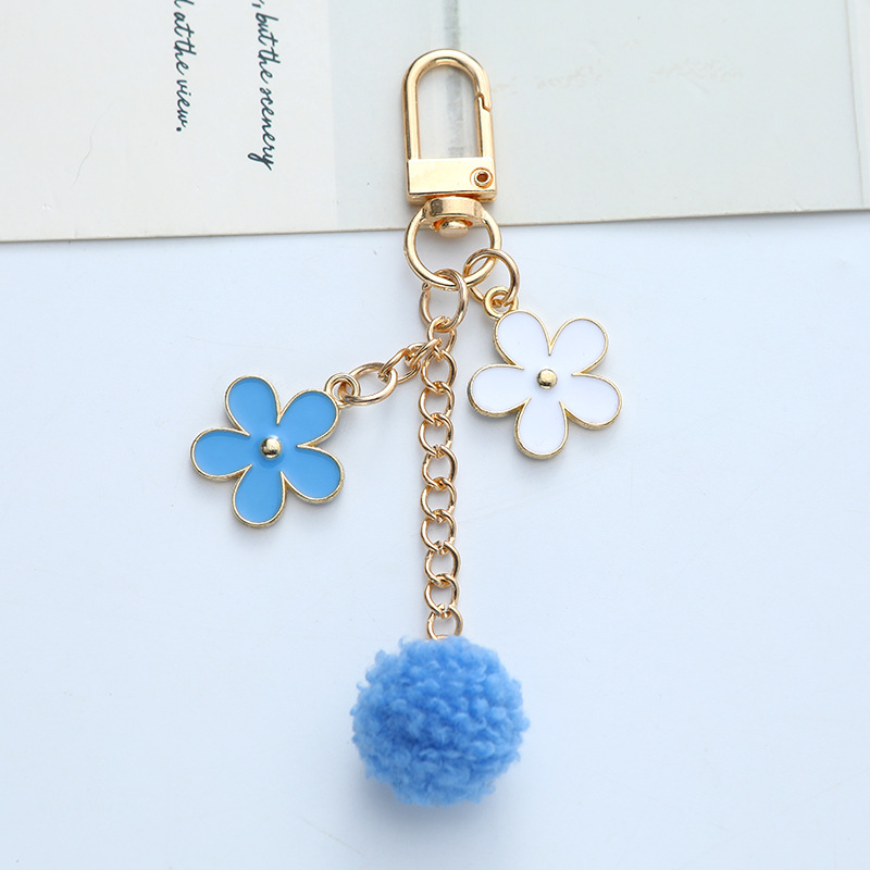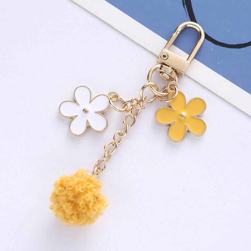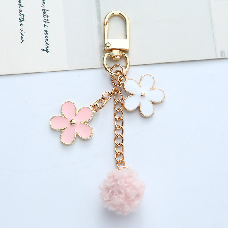 毛球花朵钥匙扣挂件日系个性滴油合金汽车钥匙挂饰耳机套包包装饰