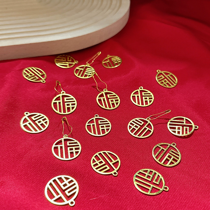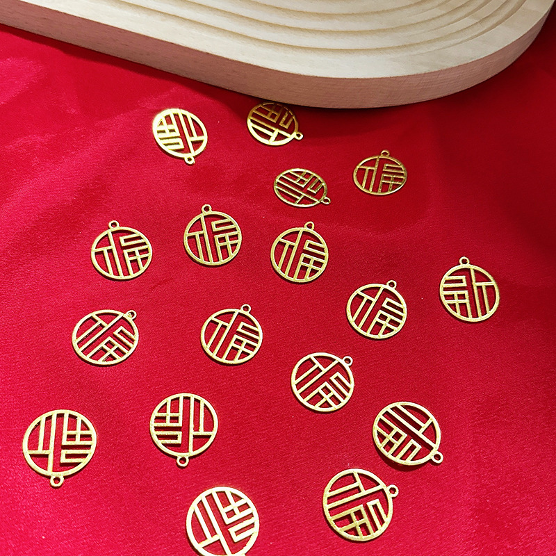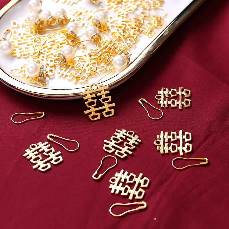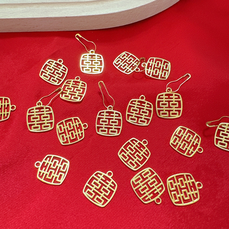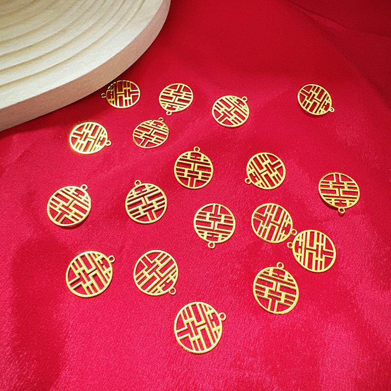 喜字挂件小金属配件挂牌礼盒吊坠迷你饰品装饰中式金色圆喜字小号