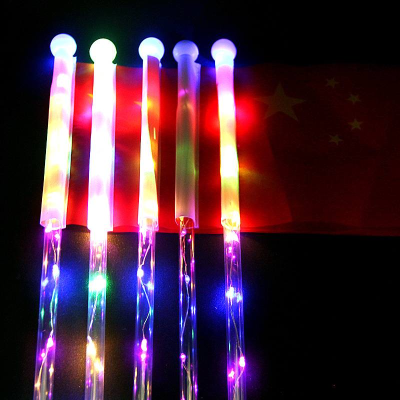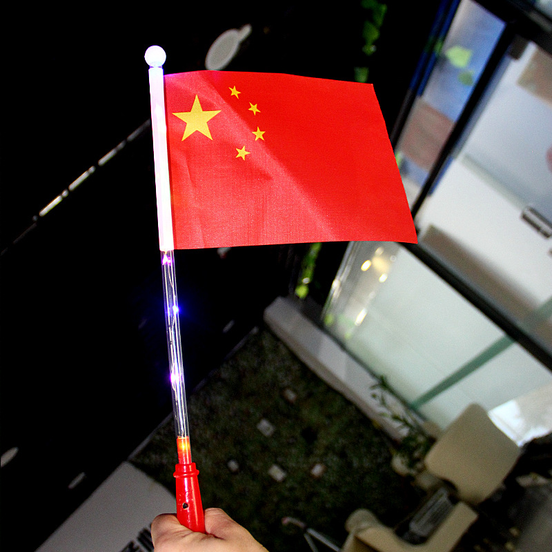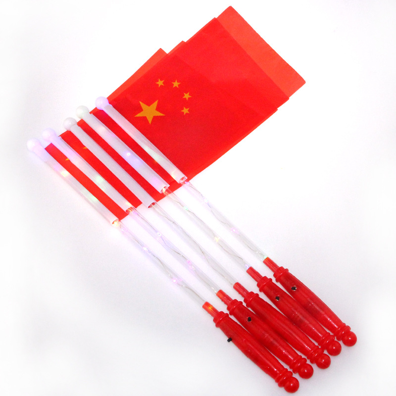 国庆节小红旗手摇旗五星红旗手持发光国旗棒荧光棒幼儿园礼品批发