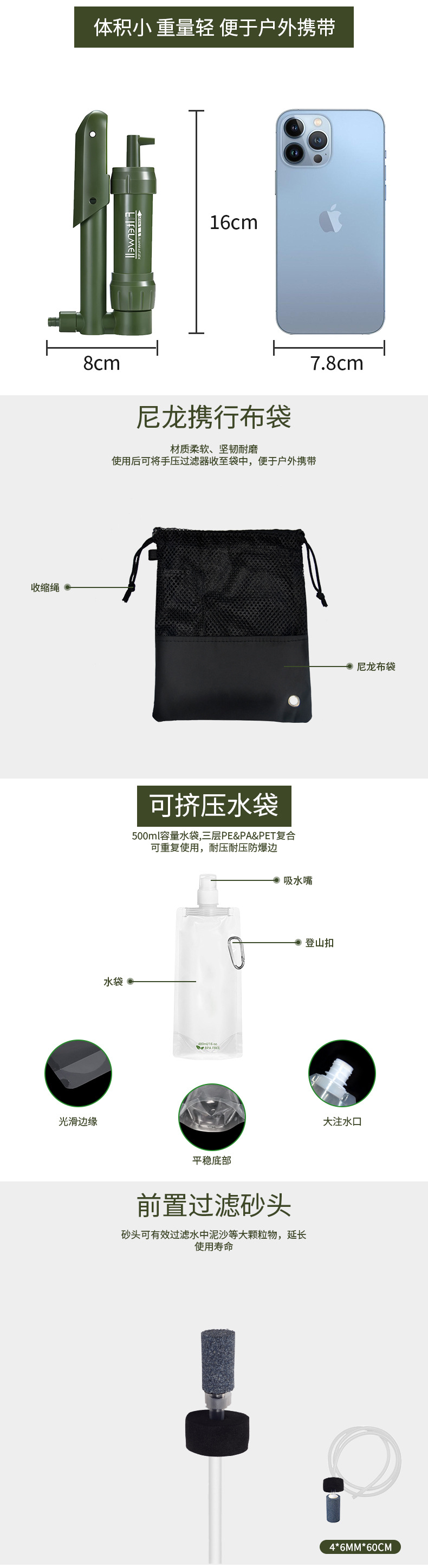 净益 单兵净水器mini手压过滤器户外应急求生装备野外生存净水器
