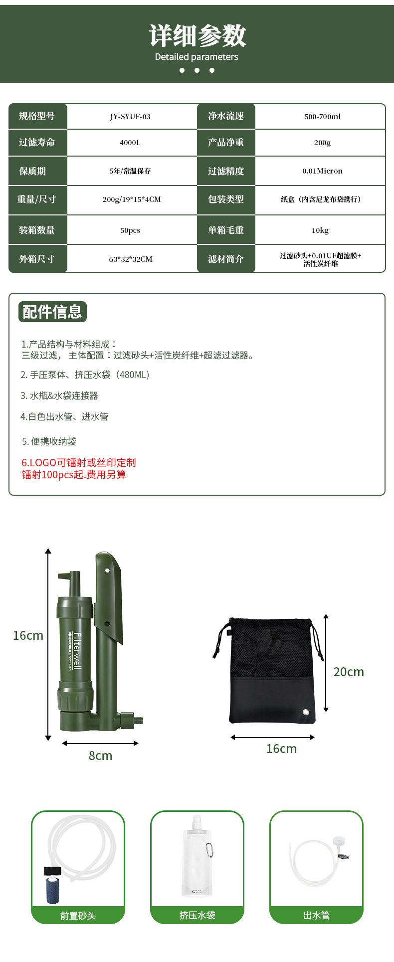 jingyi single soldier water purifier mini hand pressure filter outdoor emergency survival equipment field survival water purifier