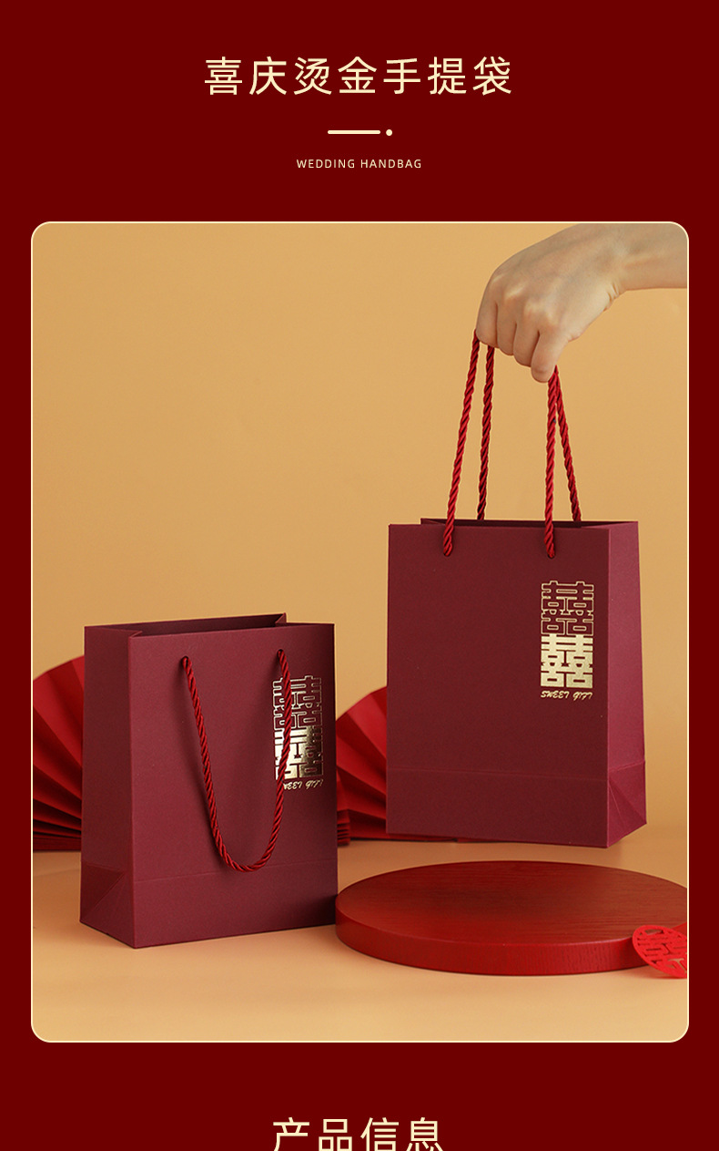 结婚礼袋礼品袋伴手礼手提袋婚礼回礼专用喜糖袋子礼盒喜袋免折叠