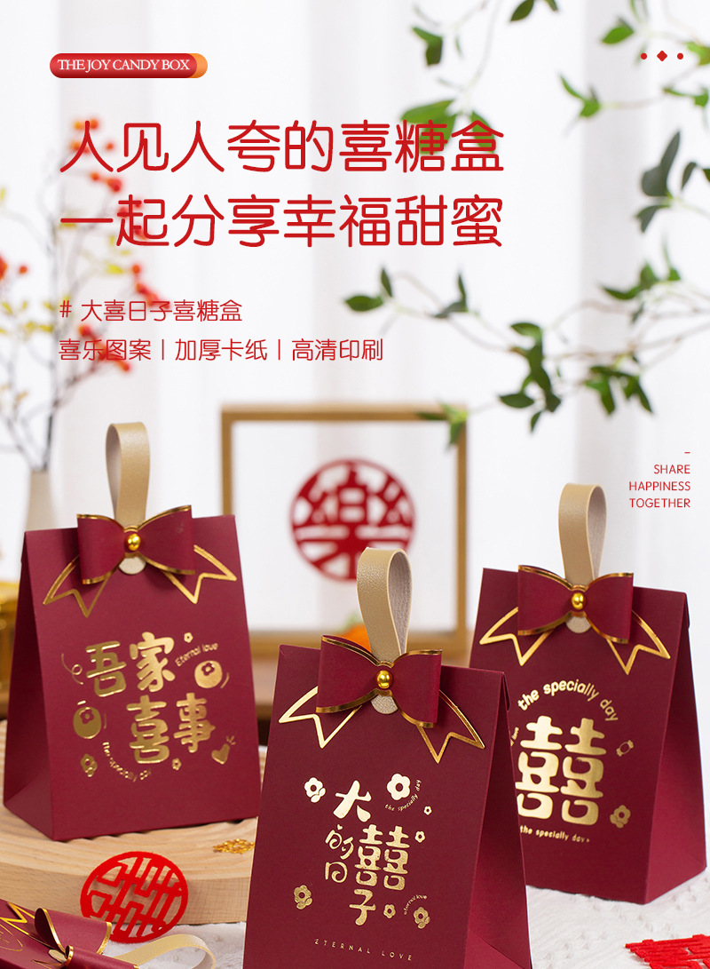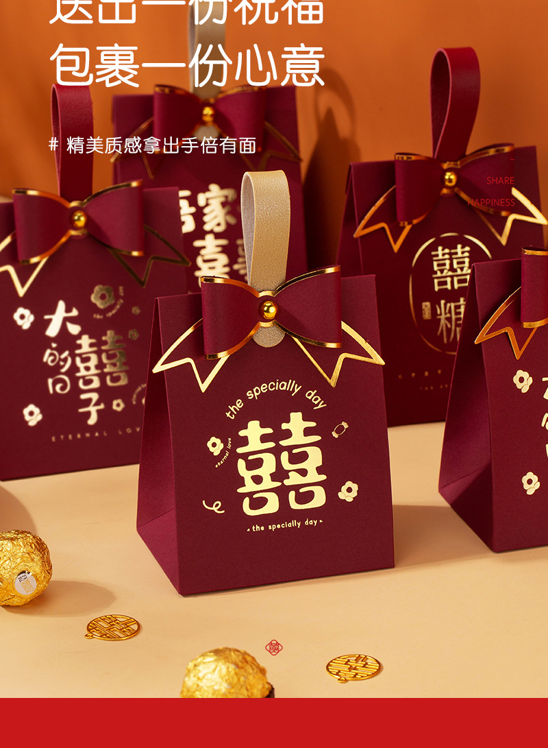 喜糖盒批发2023结婚手提袋婚礼喜糖盒子创意中国风糖果包装空盒