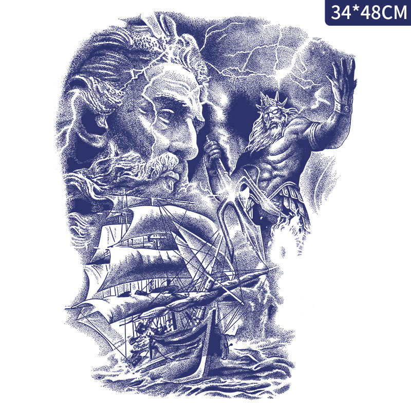 满背半背草本果汁纹身贴防水男仿真胸前贴纸大图花臂文身刺青