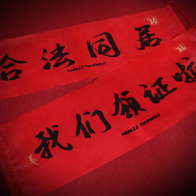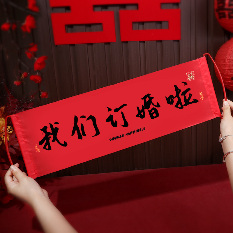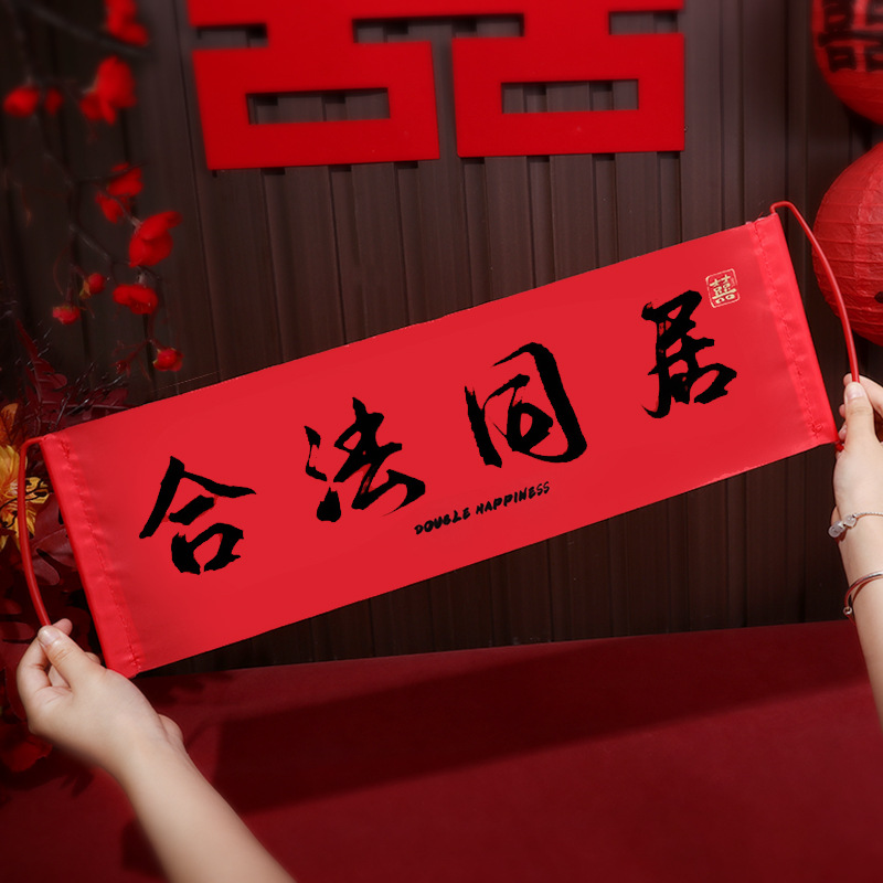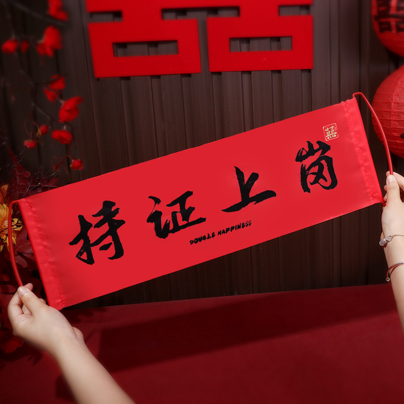 结婚用品大全新人拍照手拉横幅道具持证上岗婚礼接亲堵门游戏条幅