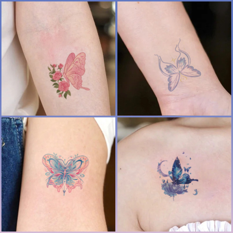 彩色纹身贴防水持久小清新手臂女锁骨个性 可爱贴纸线条感2024新