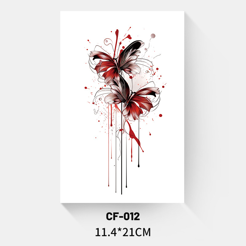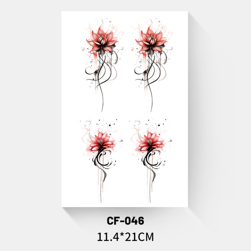 红色彼岸花纹身贴女防水男彩色文艺花臂手臂大腿高级感半永久贴纸