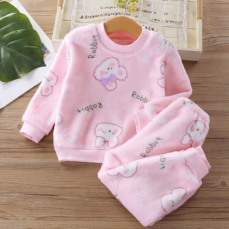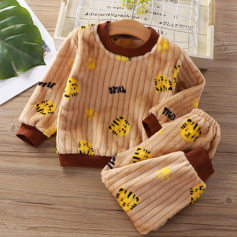 儿童秋冬法兰绒睡衣套装韩版男童加绒加厚家居服女童保暖内衣套装