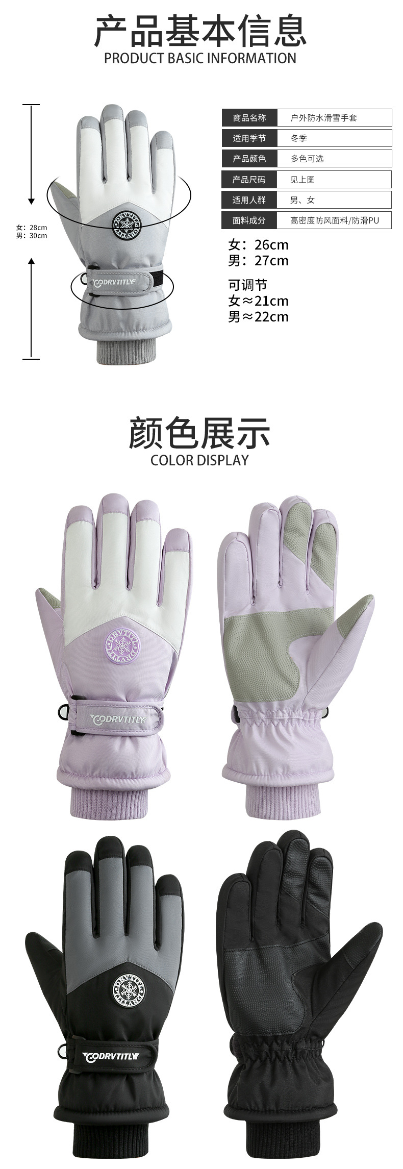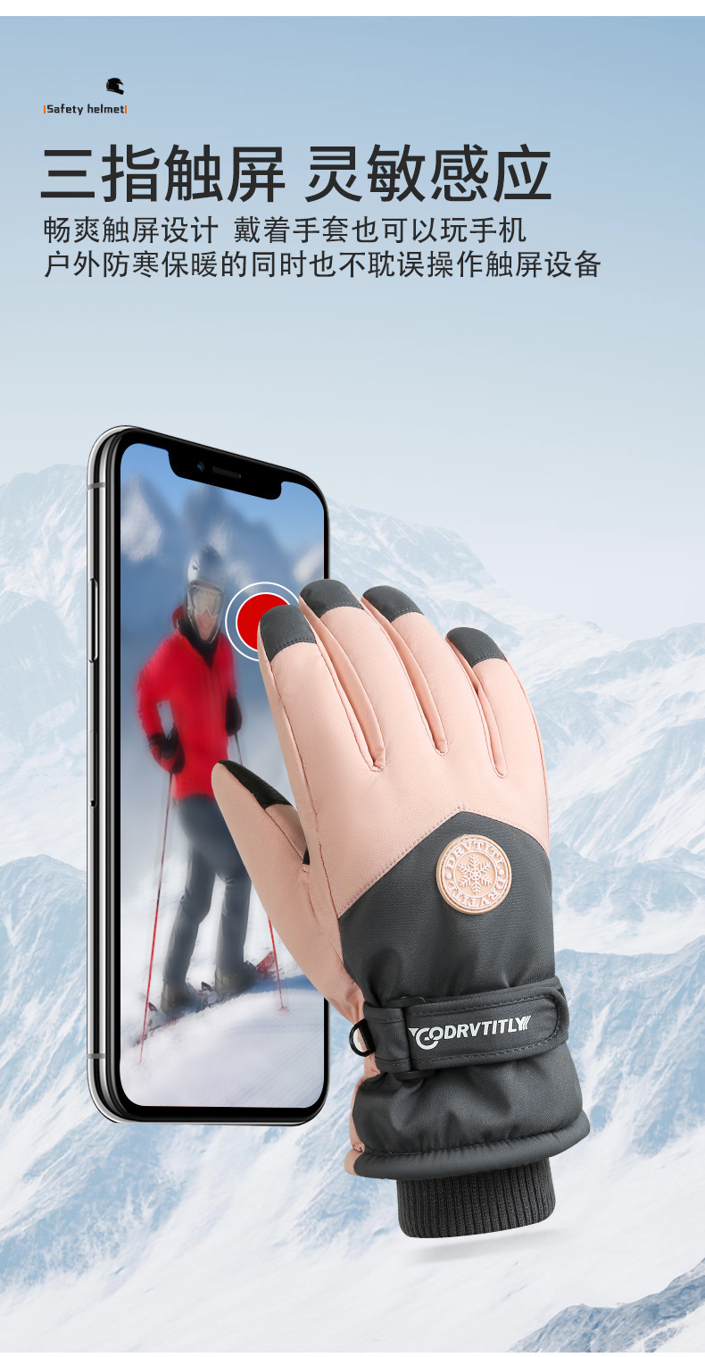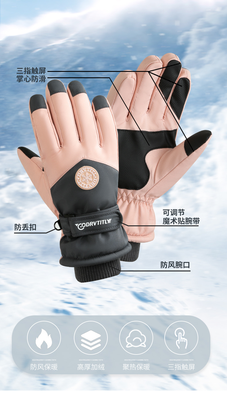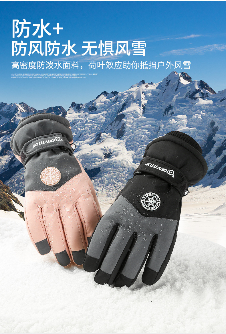 跨境冬季滑雪保暖手套男女情侣户外骑行触屏加绒防寒防风车手套