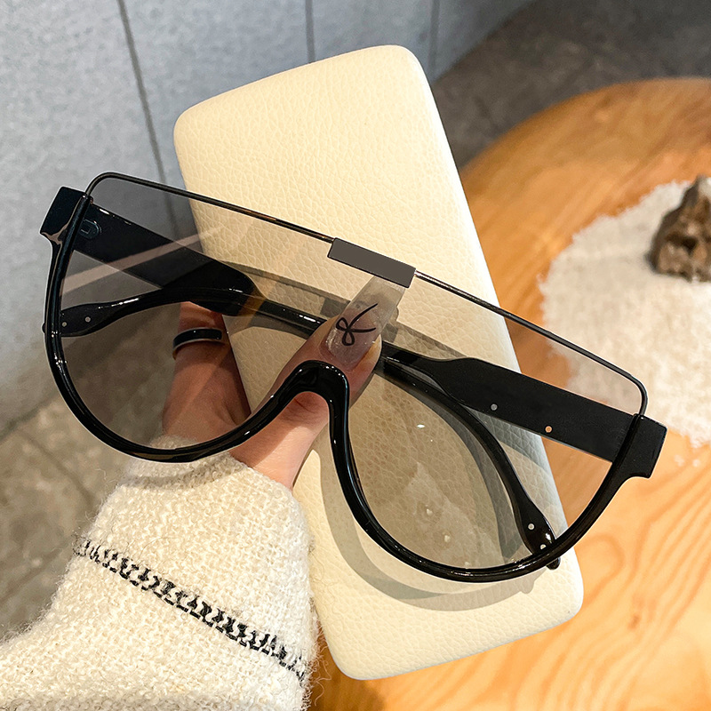 时尚大框连体镜片墨镜男大脸显瘦茶色街拍面罩太阳镜女士潮流网红