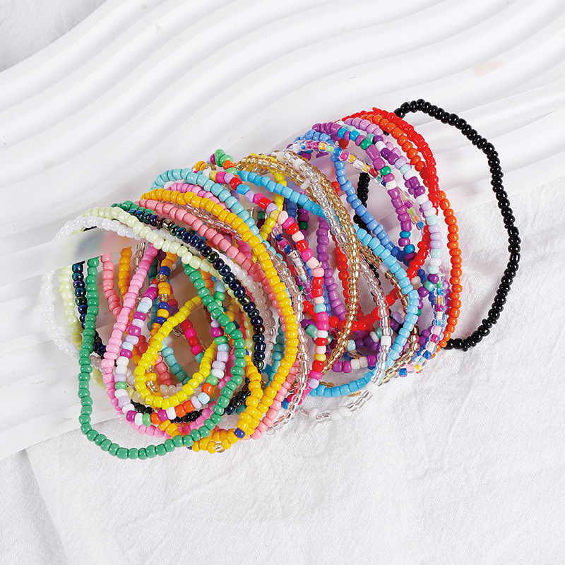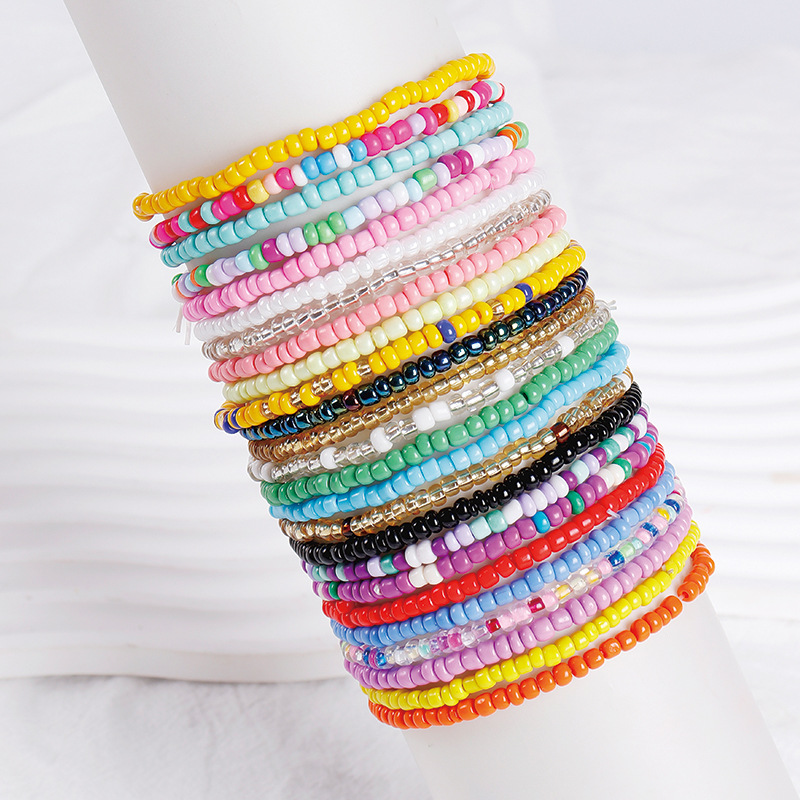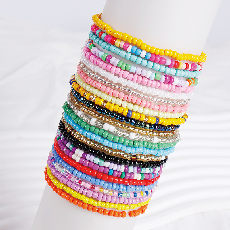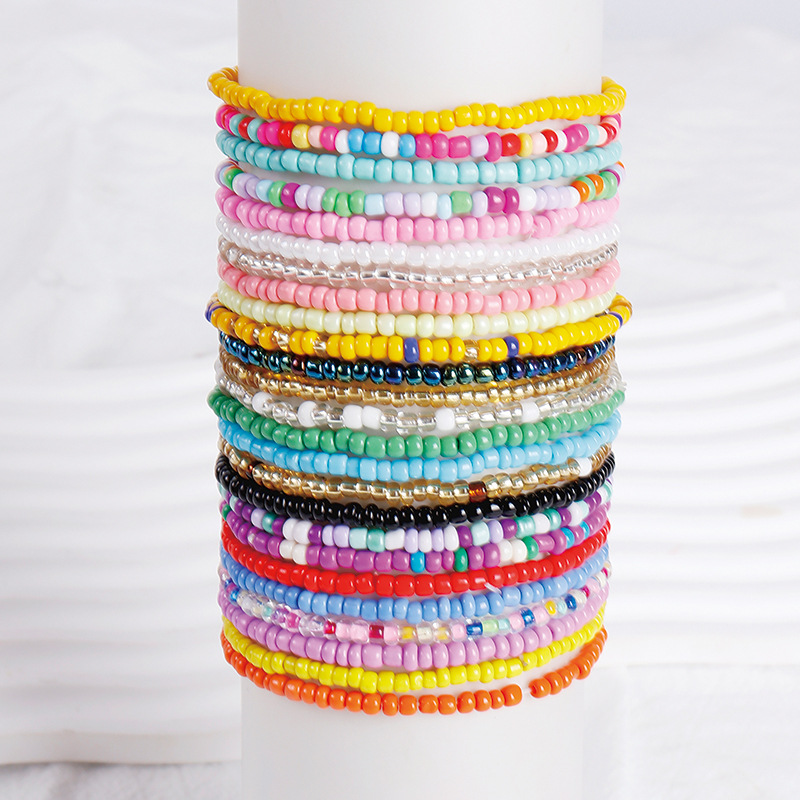 亚马逊混色波西米亚叠戴米珠手链圆珠串珠组合手链手饰套装女