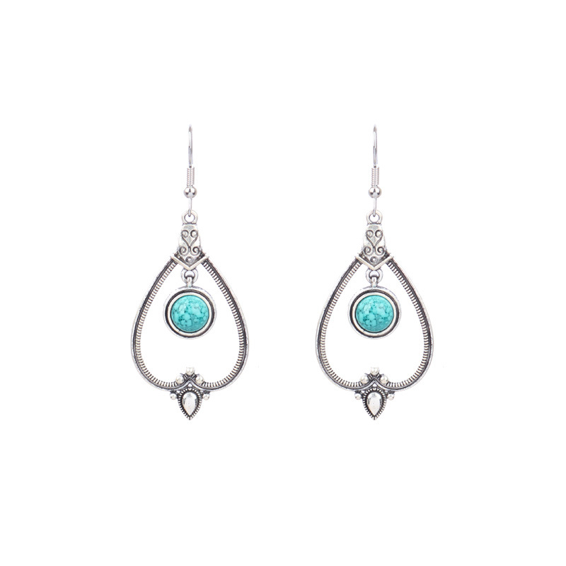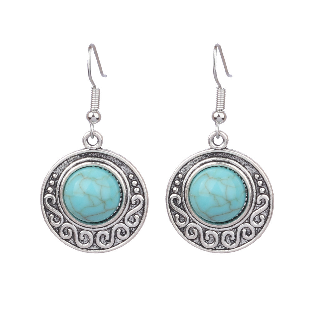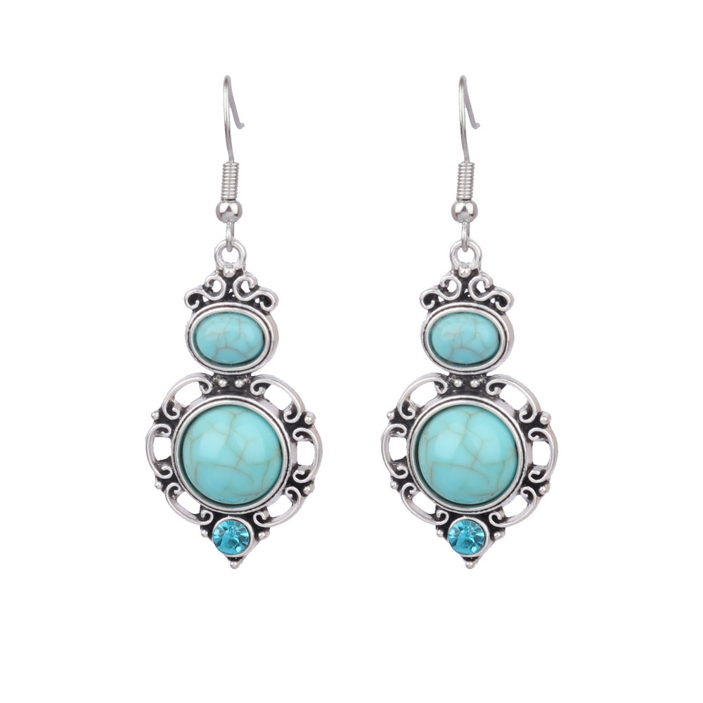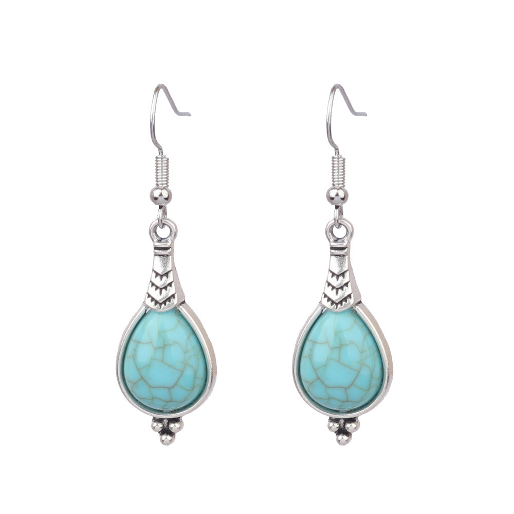 海滩度假风流行合金几何耳环女 亚克力绿松石时尚质感耳饰 批发