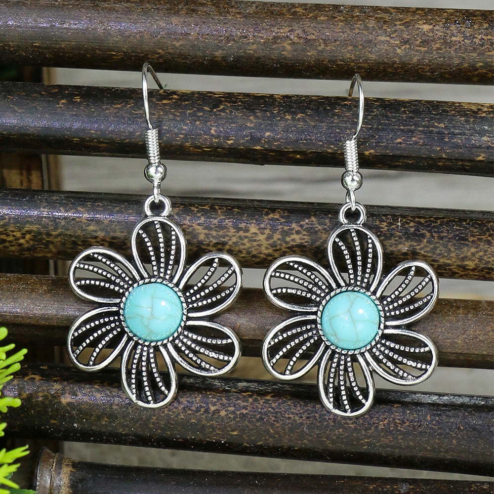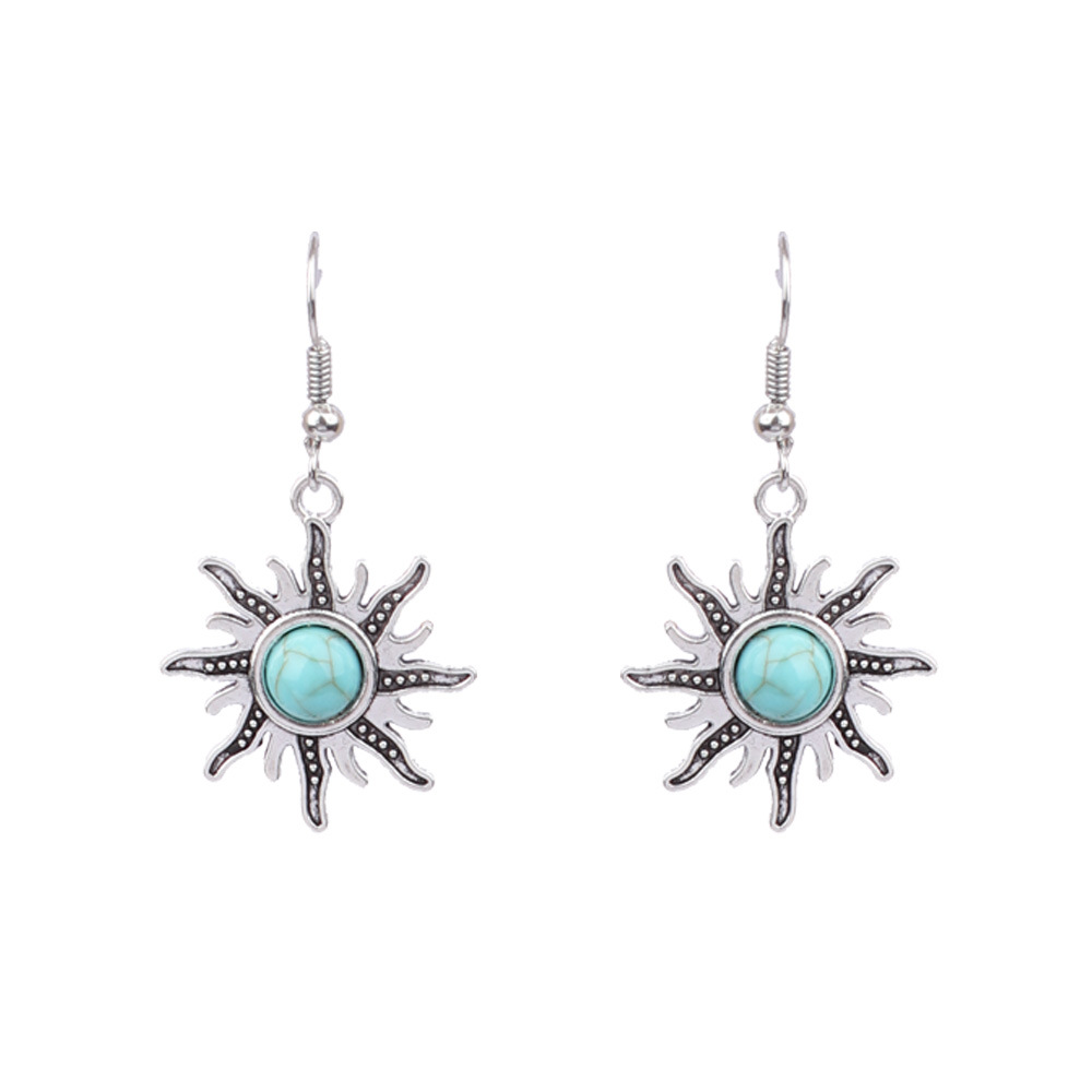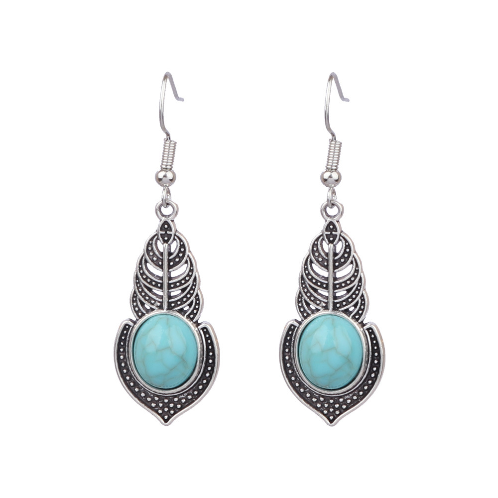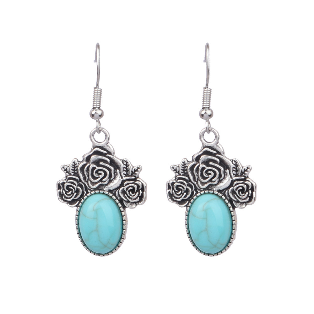 海滩度假风流行合金几何耳环女 亚克力绿松石时尚质感耳饰 批发
