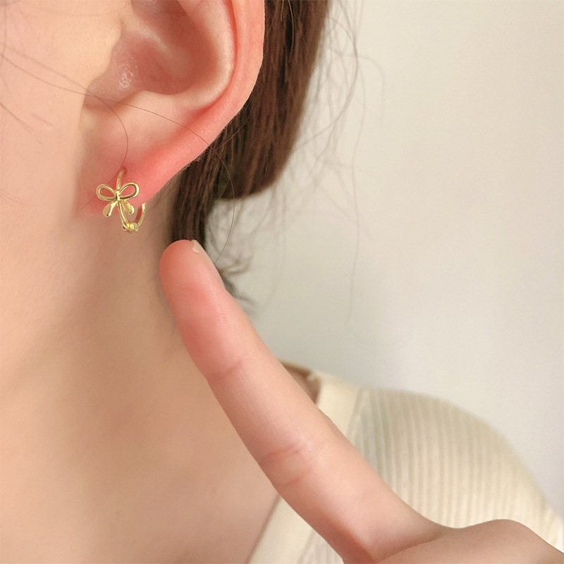 蝴蝶结耳扣女日韩简约设计小众轻奢感日常通勤耳环睡觉不用摘耳饰