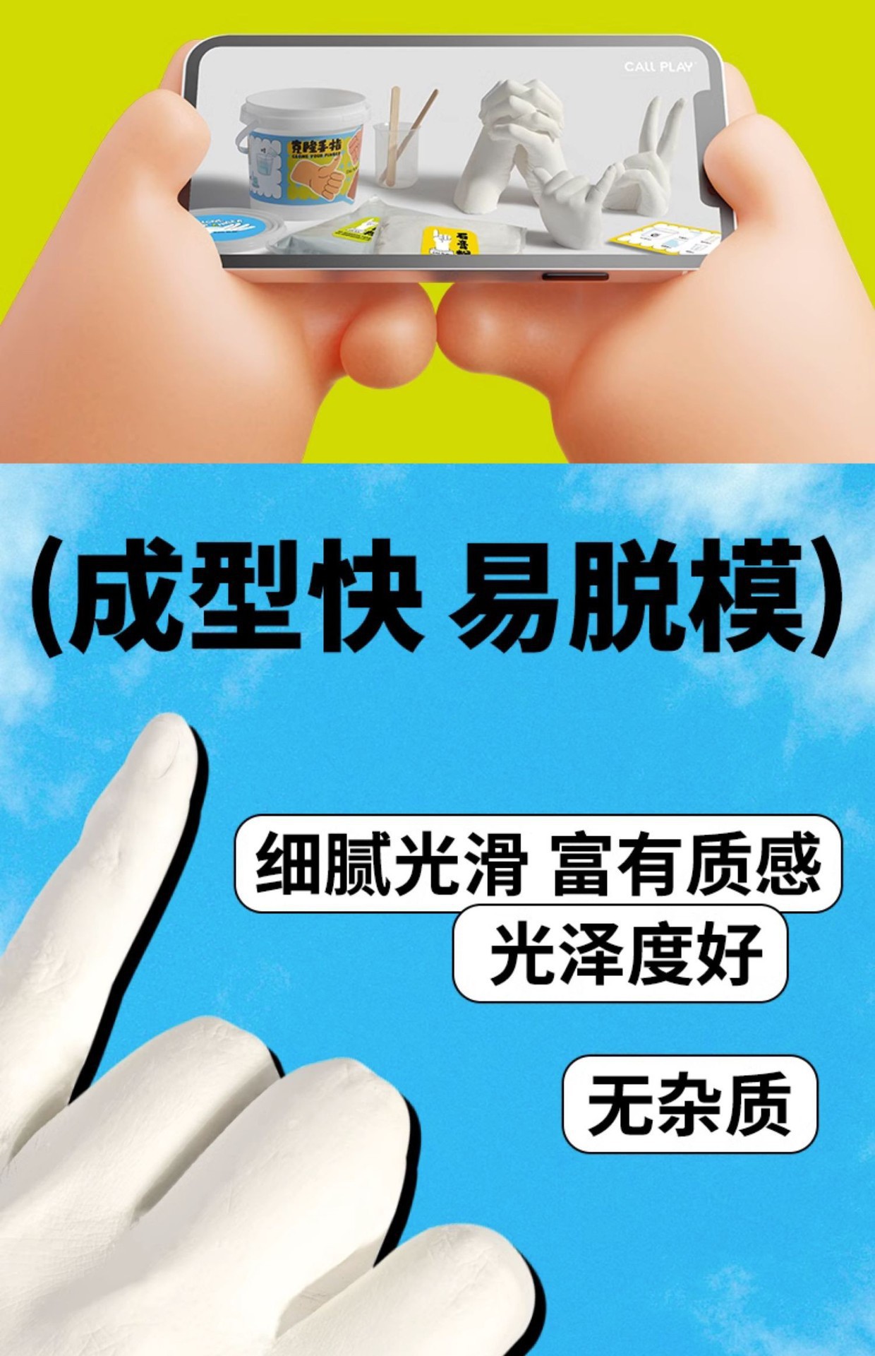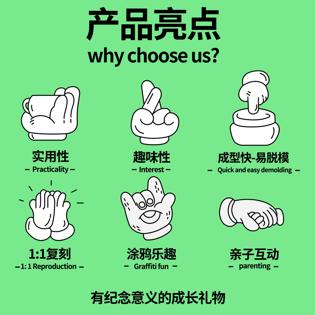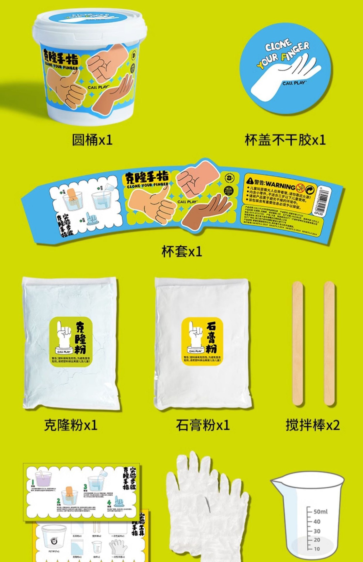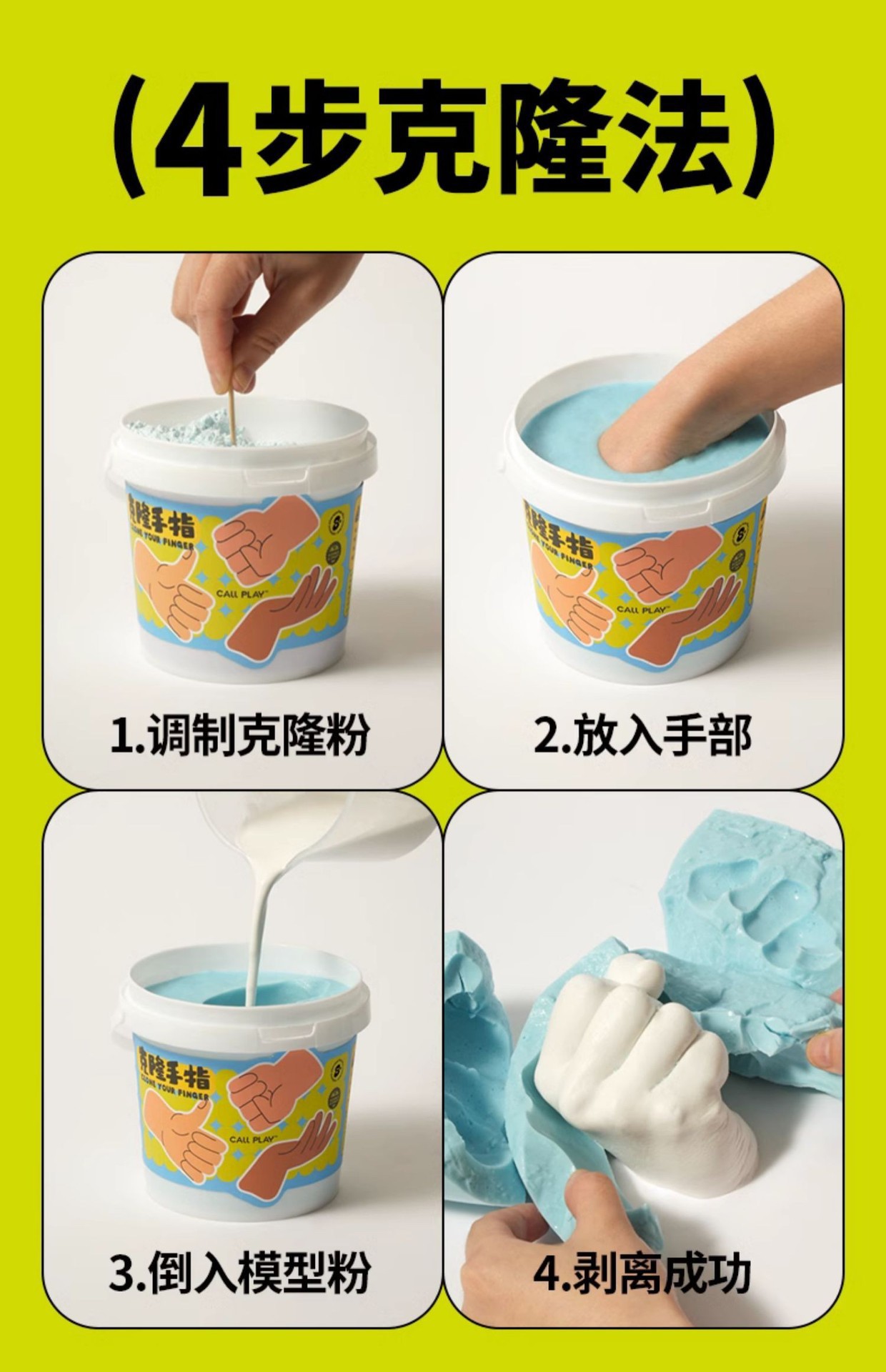 克隆粉儿童手指粉模型石膏DIY自制手模套装科学实验纪念玩具批发