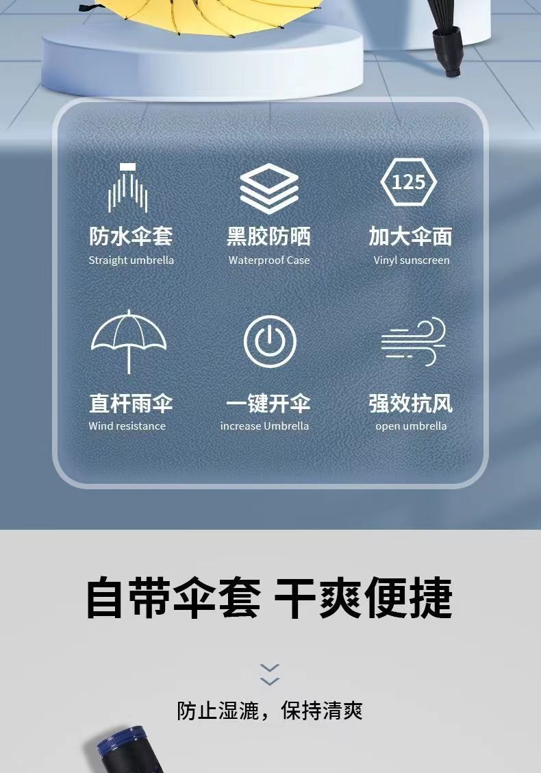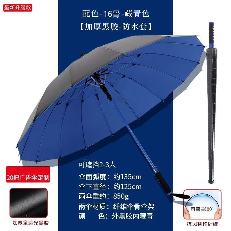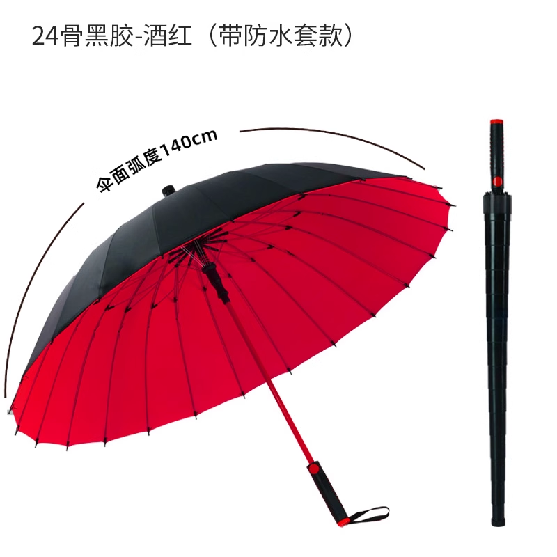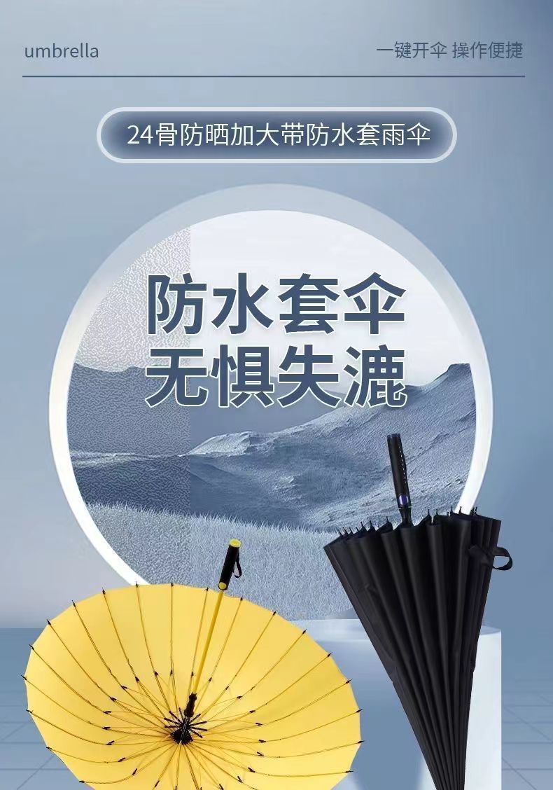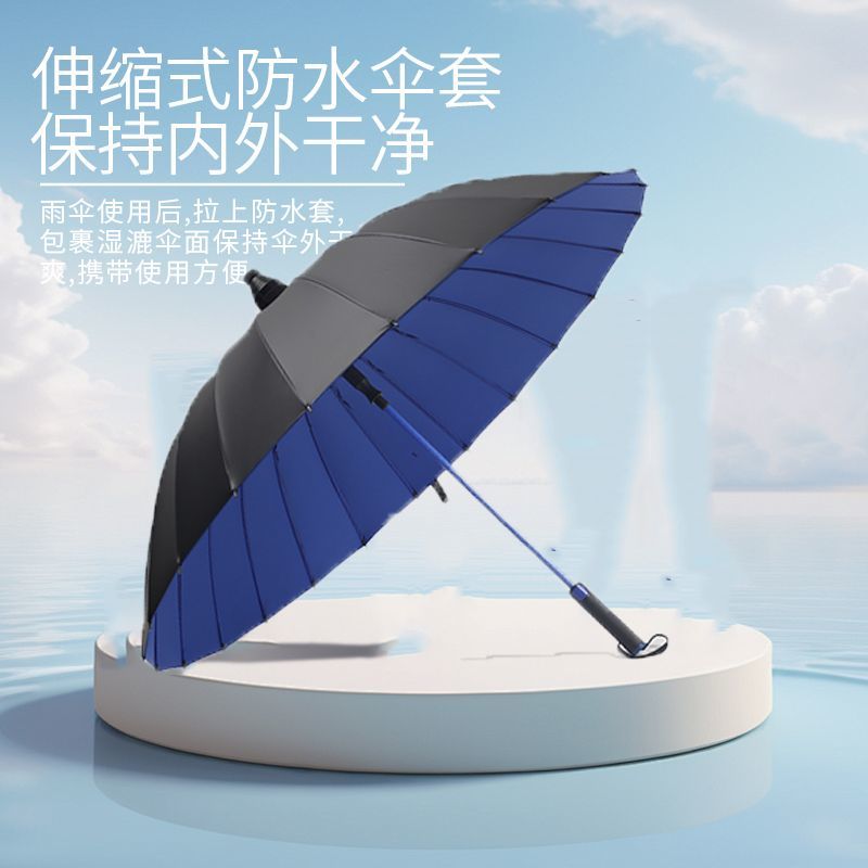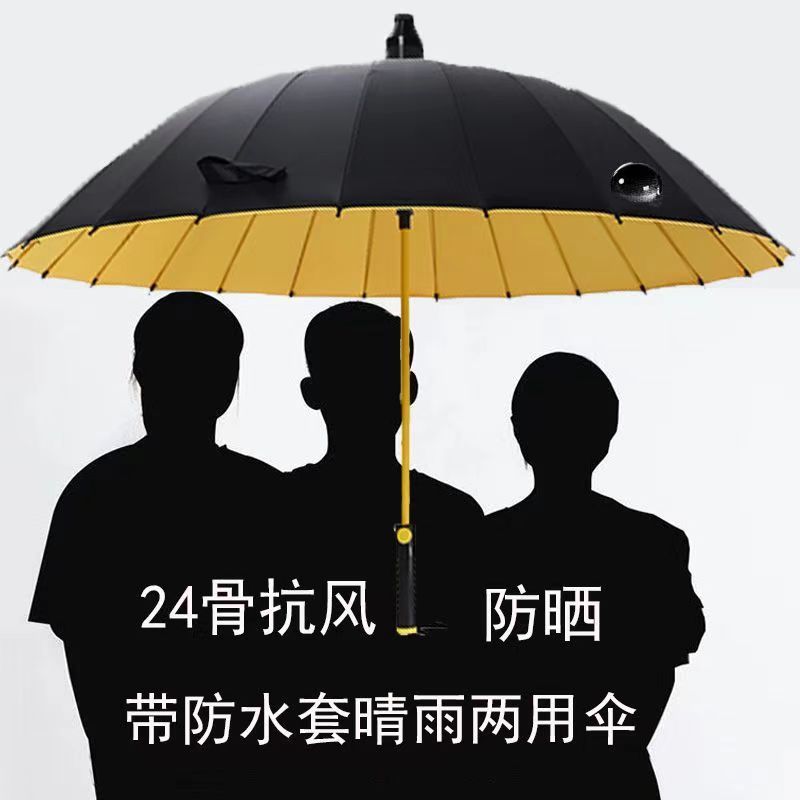 24骨带防水套弯柄长柄高尔夫雨伞加大加厚黑胶防雨防晒晴雨两用伞